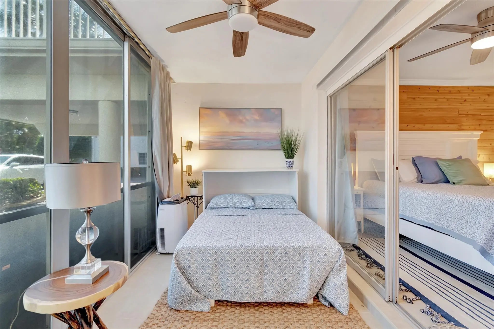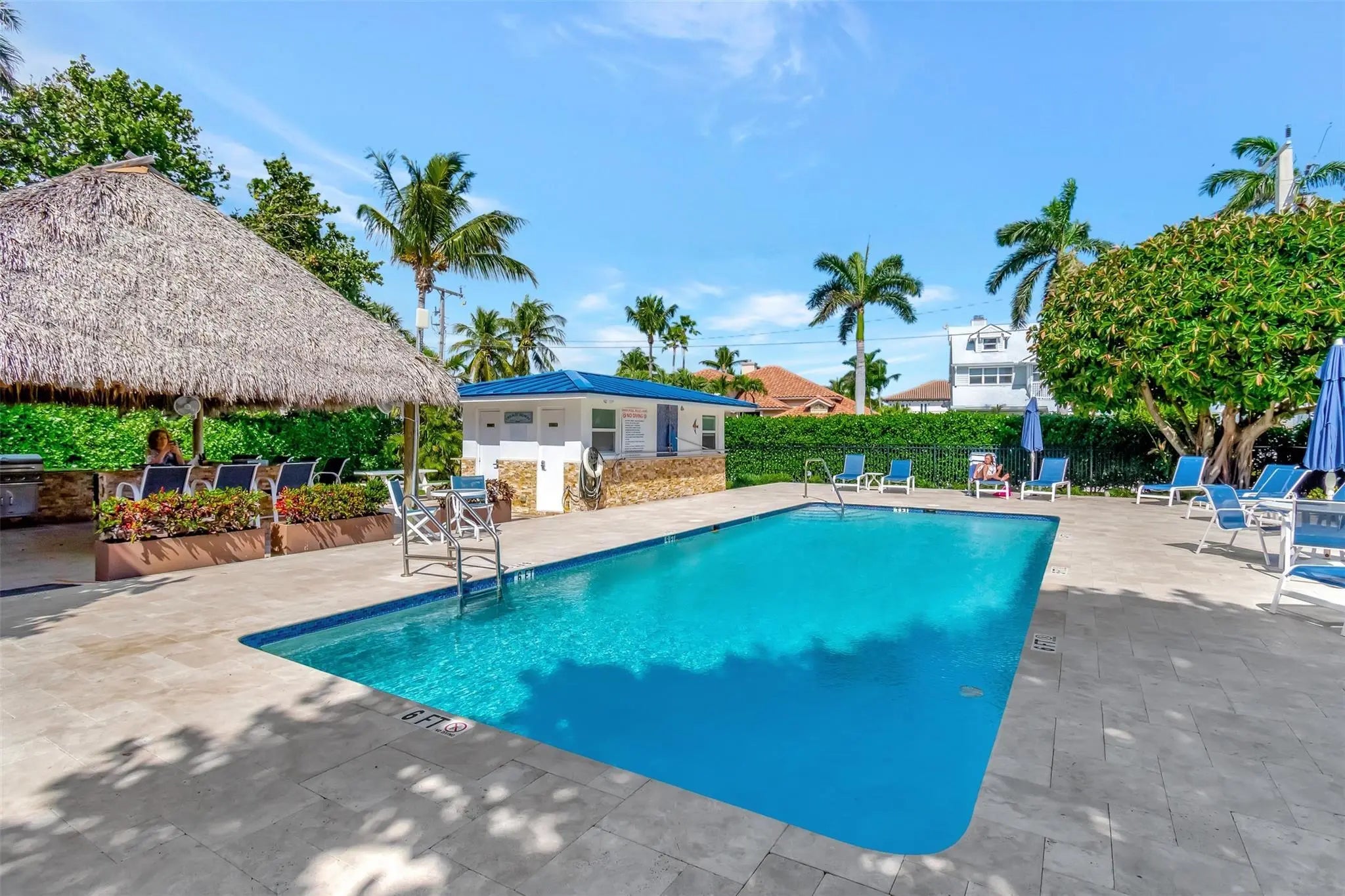Welcome to the beach. This charming coastal-chic 1-bedroom, 1-bath totally renovated residence is the perfect seaside retreat, located just across the street from the sand. Tastefully furnished to capture the relaxed beach lifestyle, it's available as an annual furnished rental for effortless living. The versatile lanai offers triple functionality — a peaceful spot for morning coffee, a comfortable home office, and a welcoming guest space. An inventive desk cleverly unfolds to reveal a single bed, ideal for overnight visitors. Surrounded by lush tropical landscaping and vibrant color, the community feels like a private oasis. At the heart of Delhaven is a heated saltwater pool and tiki pavilion. The tiki features a full summer kitchen and stunning water views. This space is perfect for relaxing, gathering with neighbors, watching a game, or simply unwinding under a tree with a good book. All of this is just moments from Atlantic Avenue, major highways, airports, and everything that makes South Florida living exceptional. No smoking No animals Dock included to accommodate up to 27' boat Electric basic cable internet and water included First last security and association security due before move-in All dimensions are approximate and should be verified by tenant