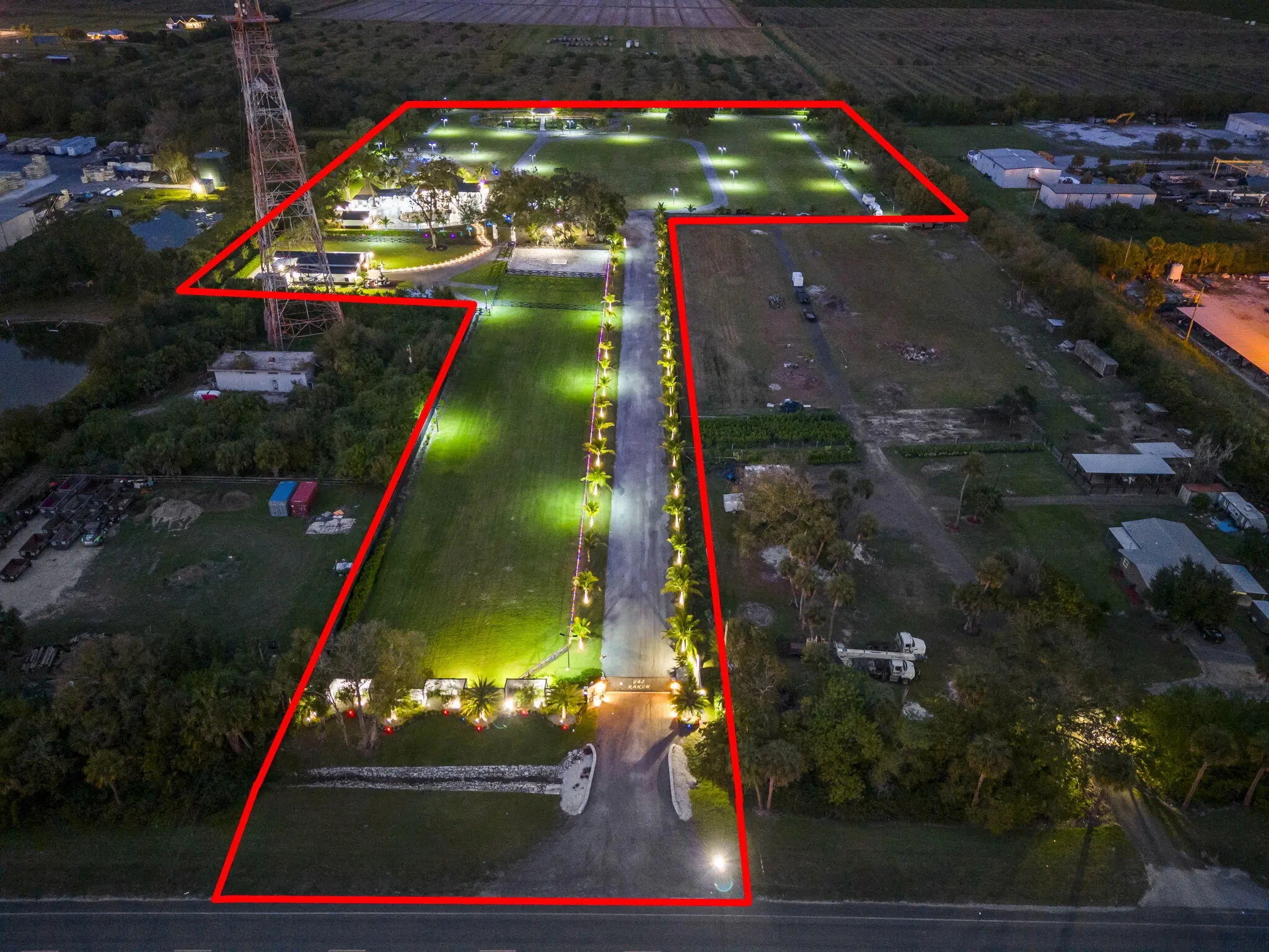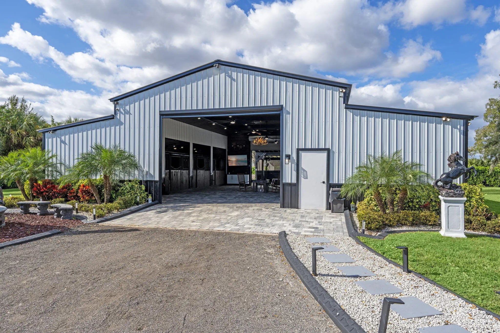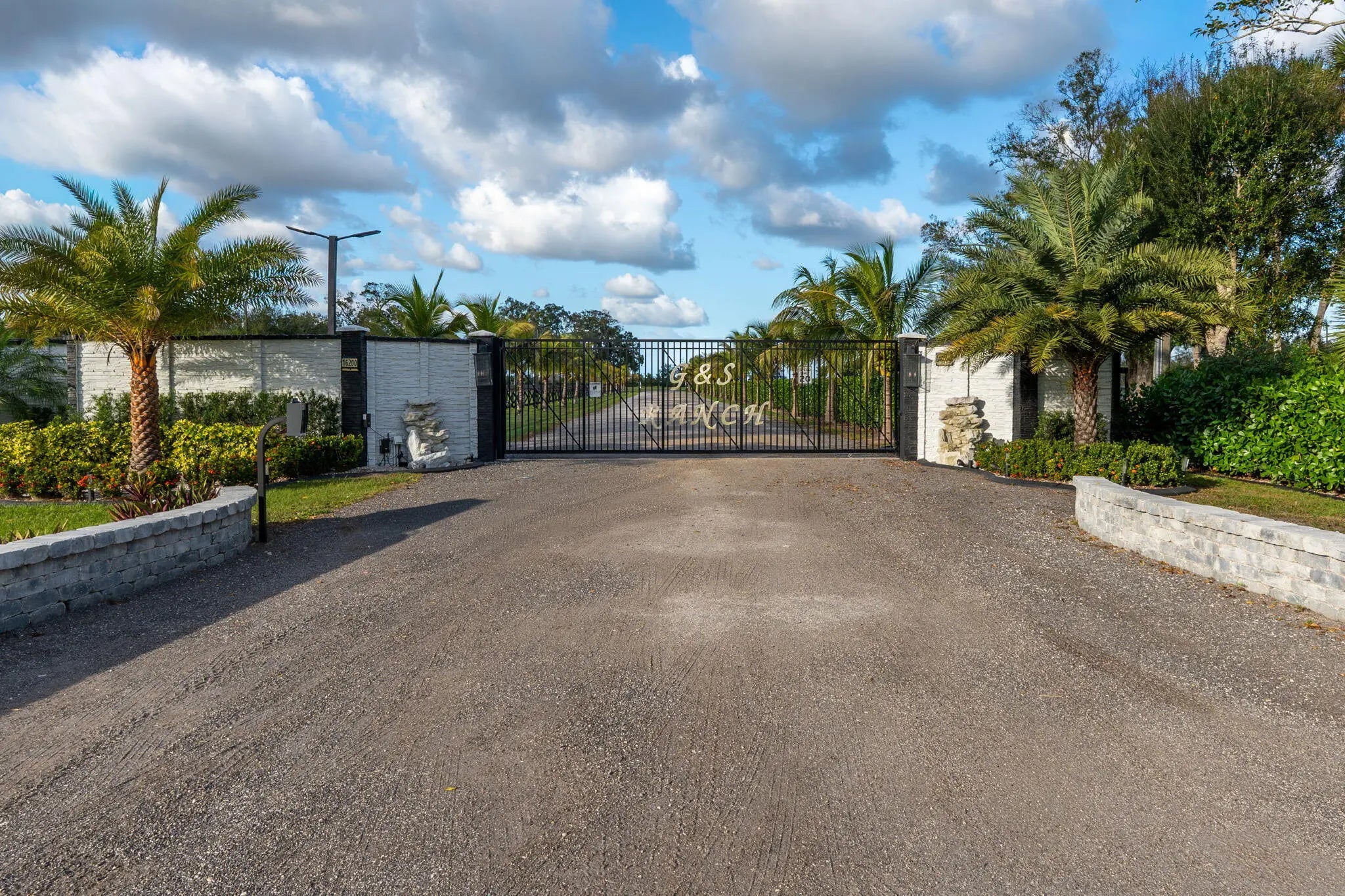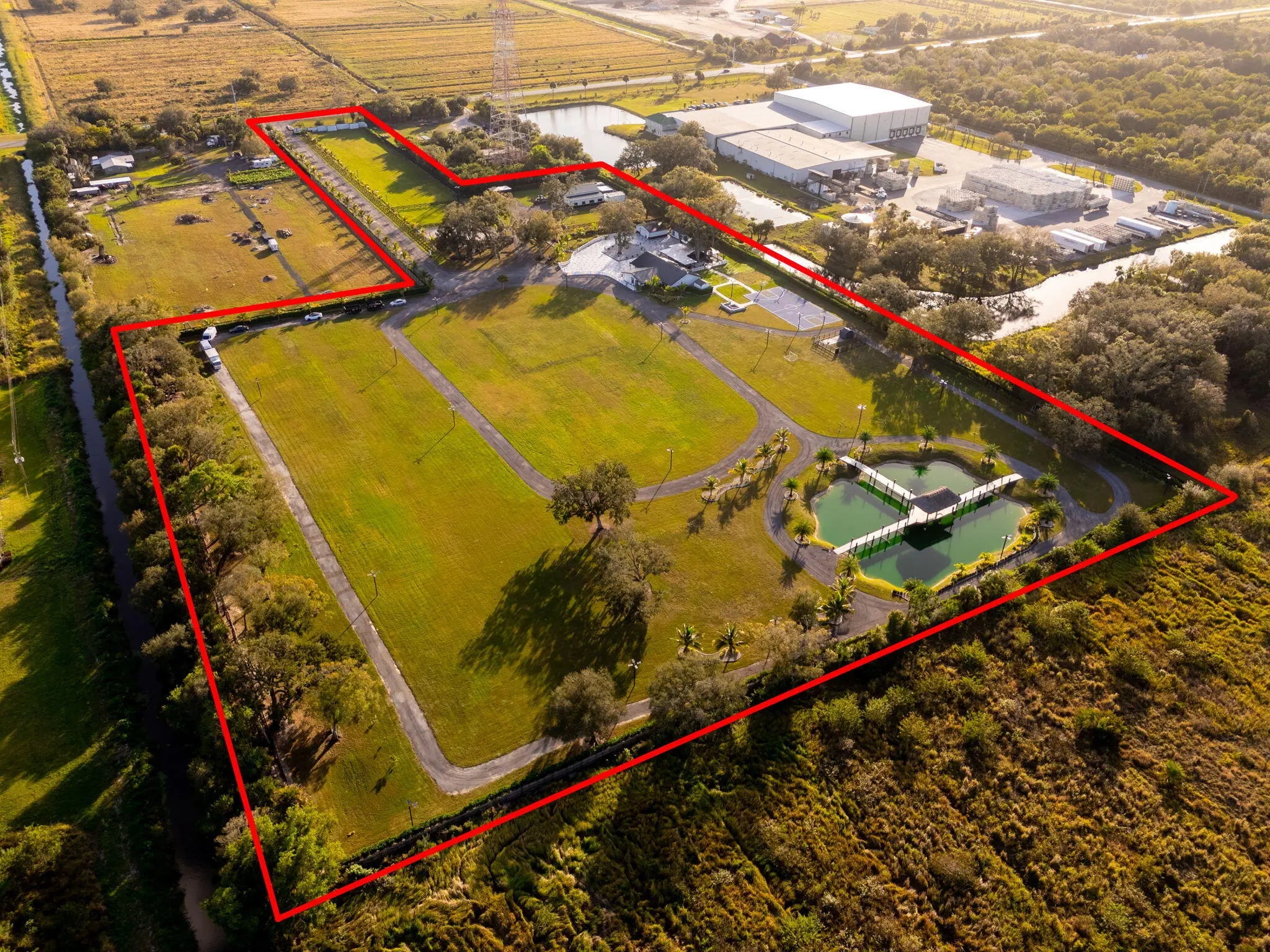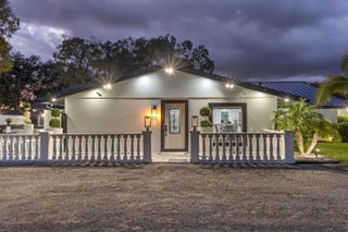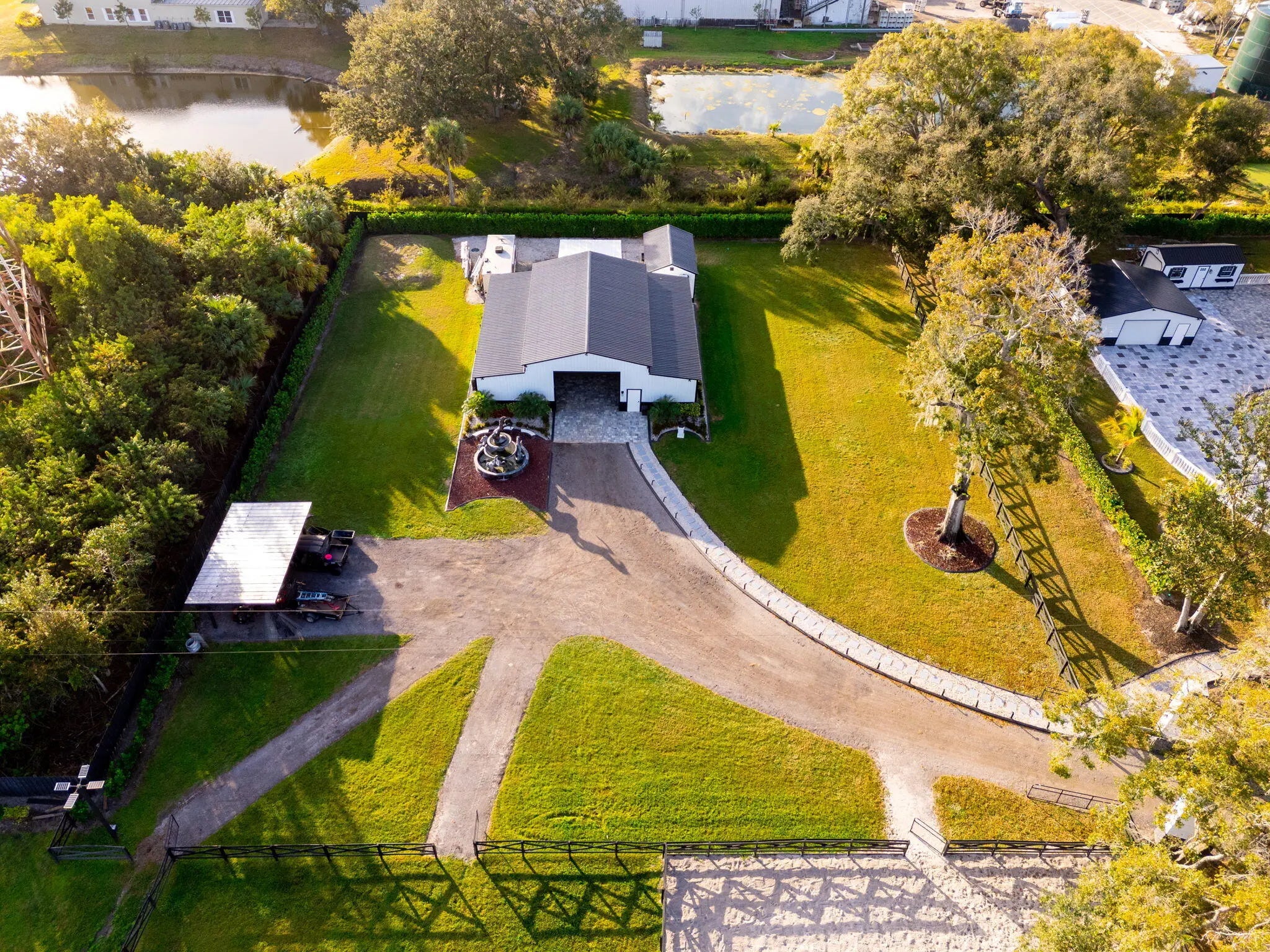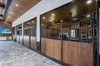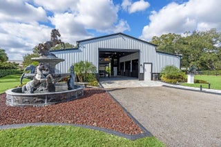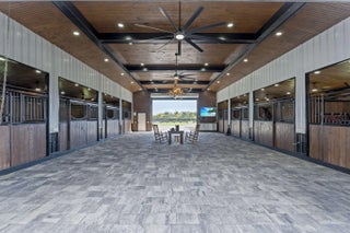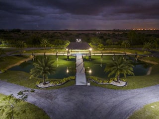 A rare offering of 12.45 fully gated acres, this private estate blends refined living, equestrian excellence, and resort-style amenities. Beyond a dramatic entrance with dual waterfalls and a custom sliding aluminum gate, the meticulously upgraded 3,345 sq ft residence offers expansive living with a private side wing ideal for guests, executive quarters, or multigenerational use. Interiors feature large-format tile and quartz surfaces, while impact-rated windows and doors provide security and efficiency. Outdoor entertaining reaches new heights with a chef's kitchen under pergolas, dedicated exterior bath facilities, and a full basketball court. A scenic half-acre pond with dock, bridge, and tiki pavilion creates a serene waterfront focal point. Fully fenced, irrigated, and supported by a reverse osmosis system, the grounds are both functional and elegant. Equestrian facilities reflect extraordinary craftsmanship: a 2,560 sq ft barn with eight stalls, saddle room with bath, central wash area, and decorative stone-accented concrete columns -- a $400,000 investment demonstrating both luxury and practicality. Security is comprehensive, with full-camera coverage, solar lighting, and illuminated grounds. This turnkey estate offers rare potential for private retreat living, equestrian pursuits, luxury events, or curated income opportunities. A distinguished acreage estate offering privacy, prestige, and unparalleled lifestyle.