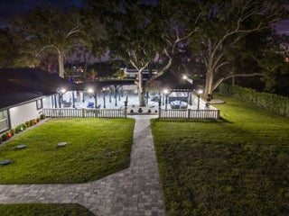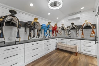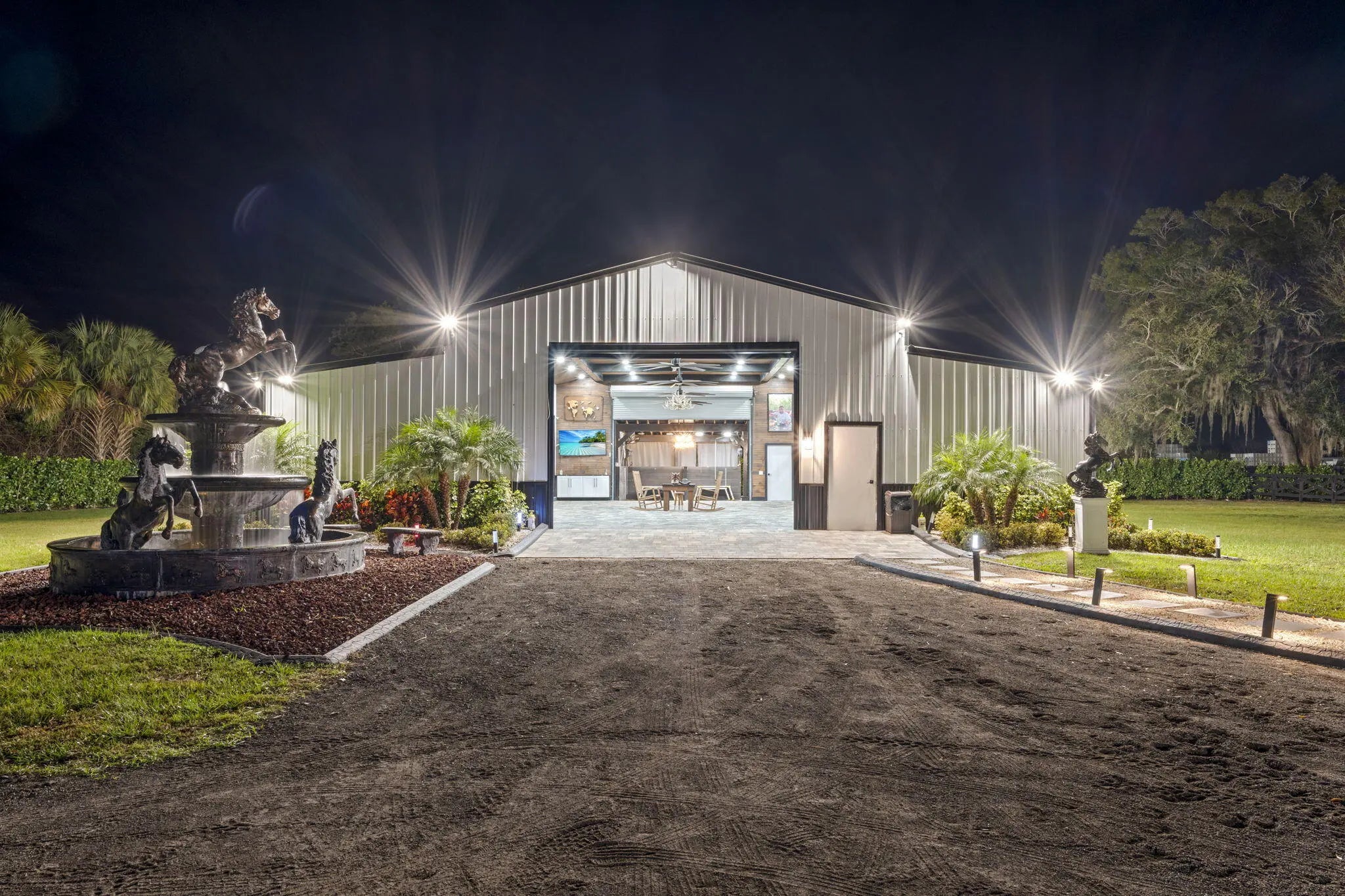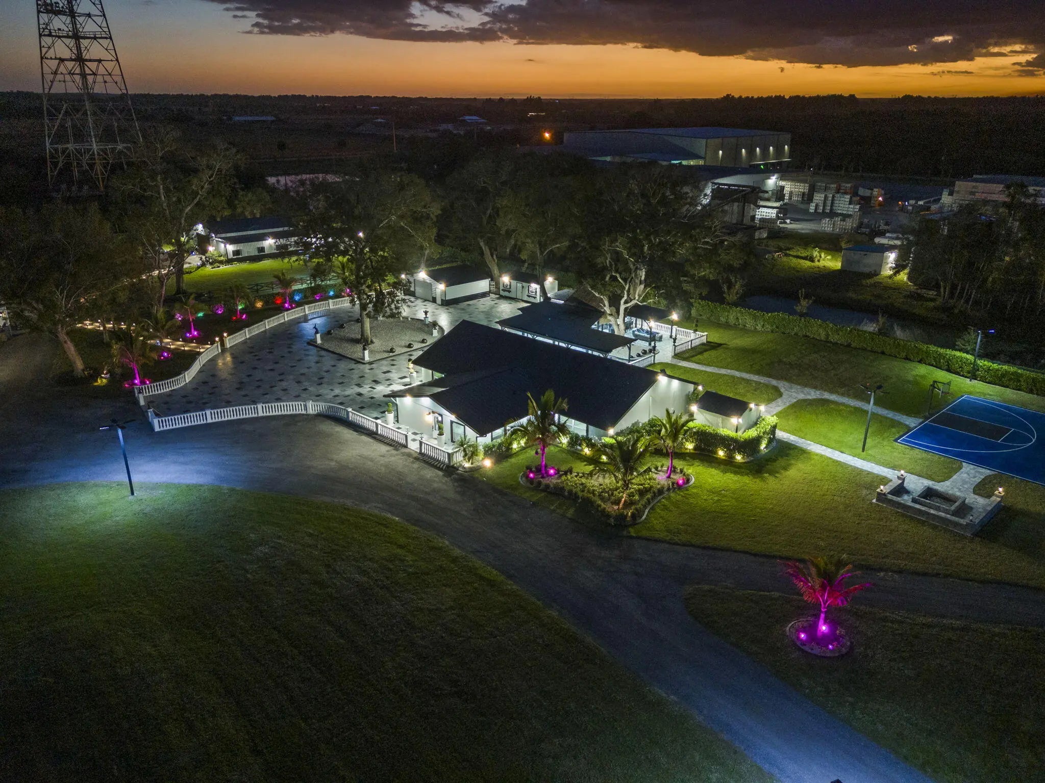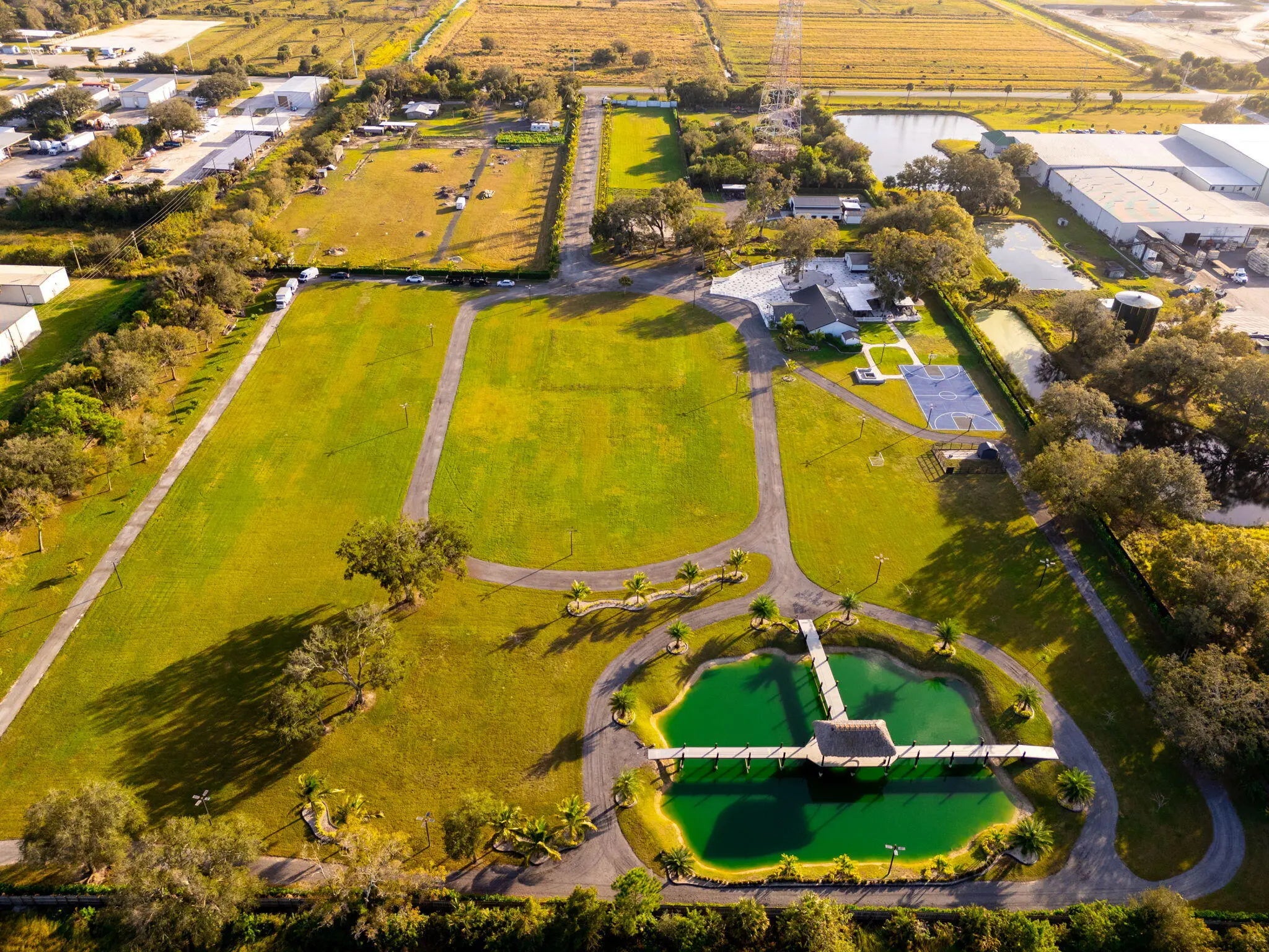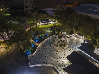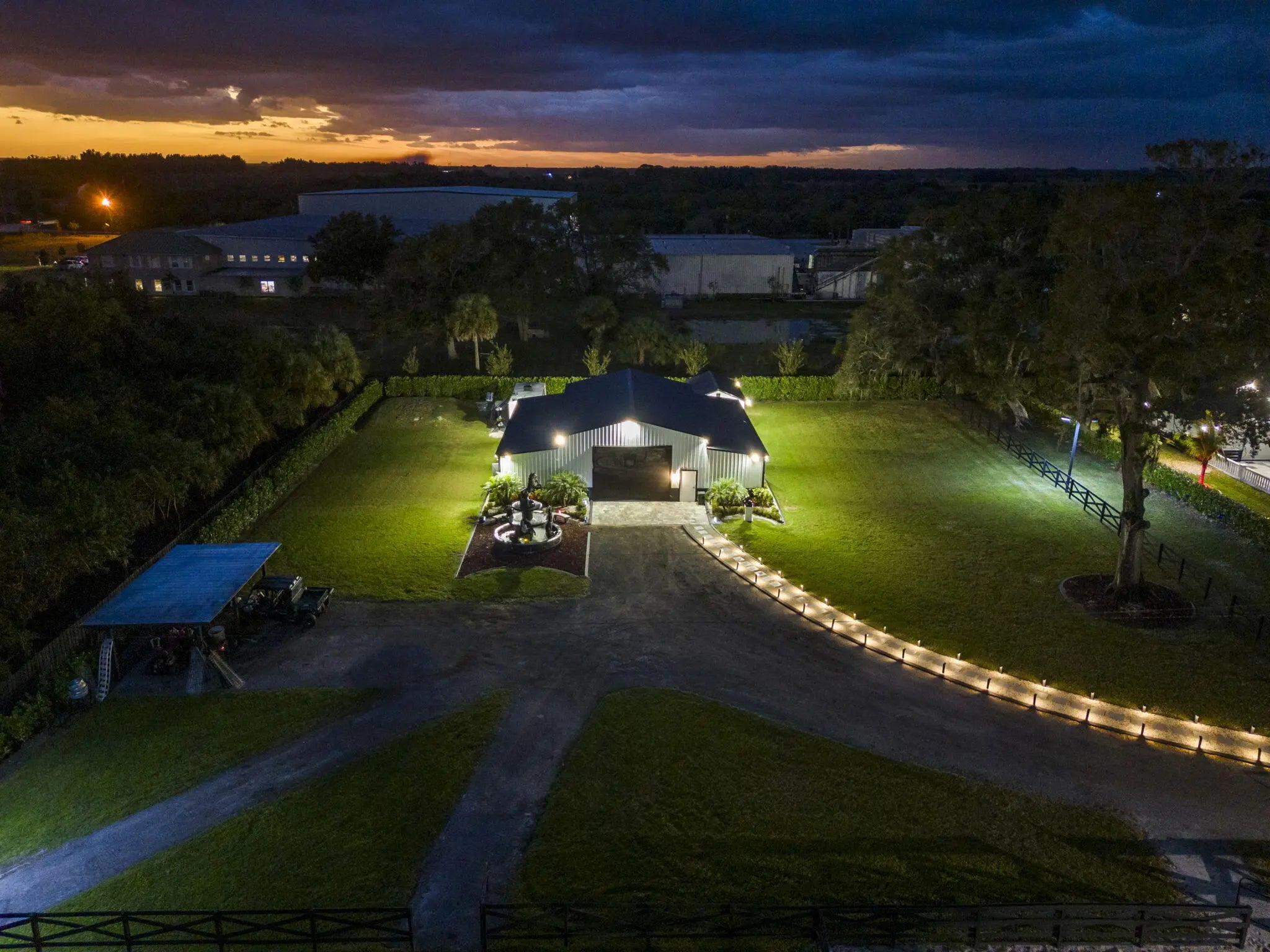 A rare offering of 12.45 fully gated acres, this private estate blends refined living, equestrian excellence, and resort-style amenities. Beyond a dramatic entrance with dual waterfalls and a custom sliding aluminum gate, the meticulously upgraded 3,345 sq ft residence offers expansive living with a private side wing ideal for guests, executive quarters, or multigenerational use. Interiors feature large-format tile and quartz surfaces, while impact-rated windows and doors provide security and efficiency. Outdoor entertaining reaches new heights with a chef's kitchen under pergolas, dedicated exterior bath facilities, and a full basketball court. A scenic half-acre pond with dock, bridge, and tiki pavilion creates a serene waterfront focal point. Fully fenced, irrigated, and supported by a reverse osmosis system, the grounds are both functional and elegant. Equestrian facilities reflect extraordinary craftsmanship: a 2,560 sq ft barn with eight stalls, saddle room with bath, central wash area, and decorative stone-accented concrete columns -- a $400,000 investment demonstrating both luxury and practicality. Security is comprehensive, with full-camera coverage, solar lighting, and illuminated grounds. This turnkey estate offers rare potential for private retreat living, equestrian pursuits, luxury events, or curated income opportunities. A distinguished acreage estate offering privacy, prestige, and unparalleled lifestyle.