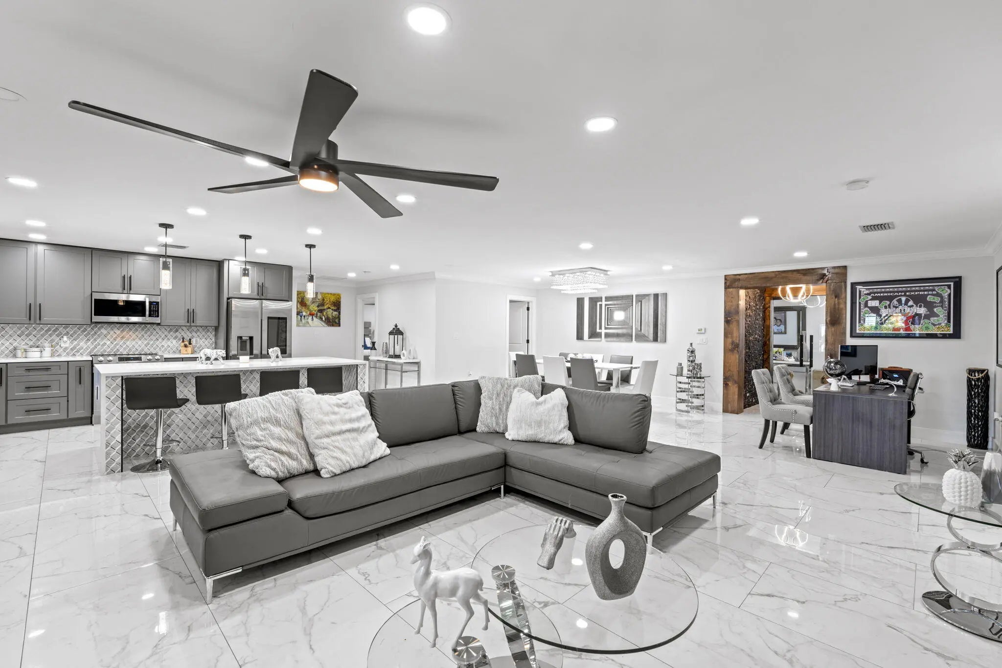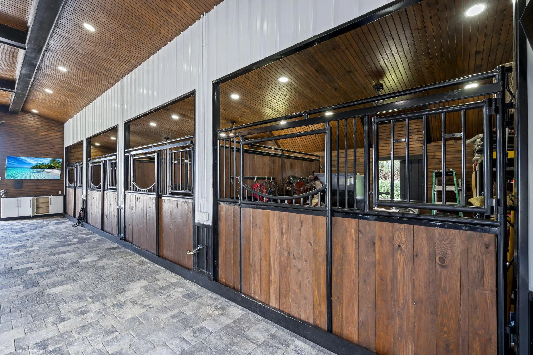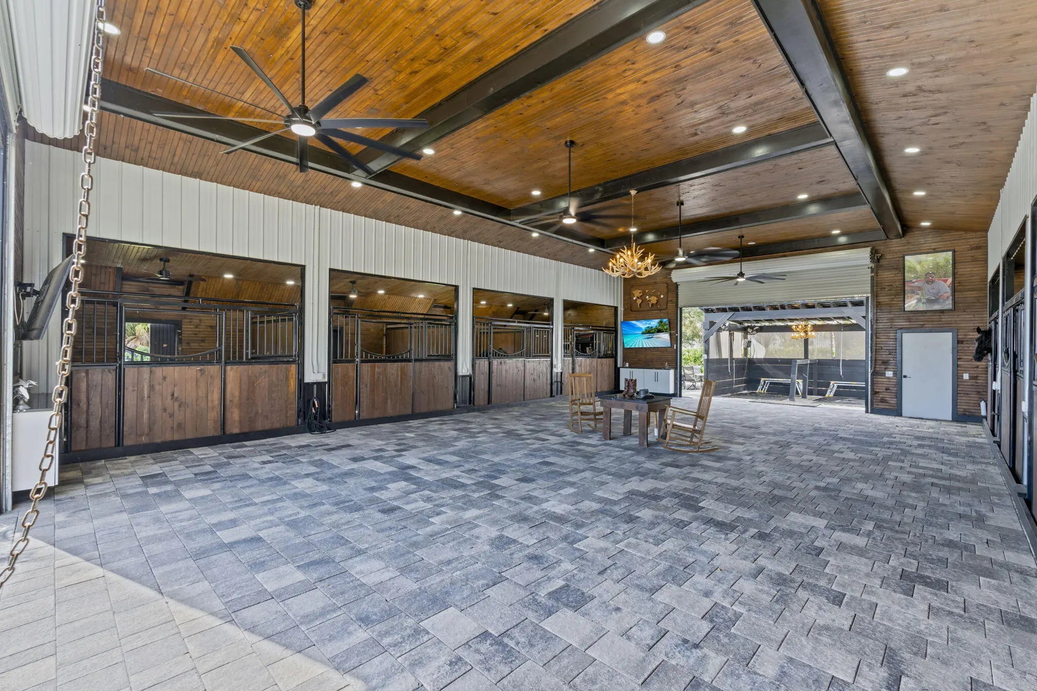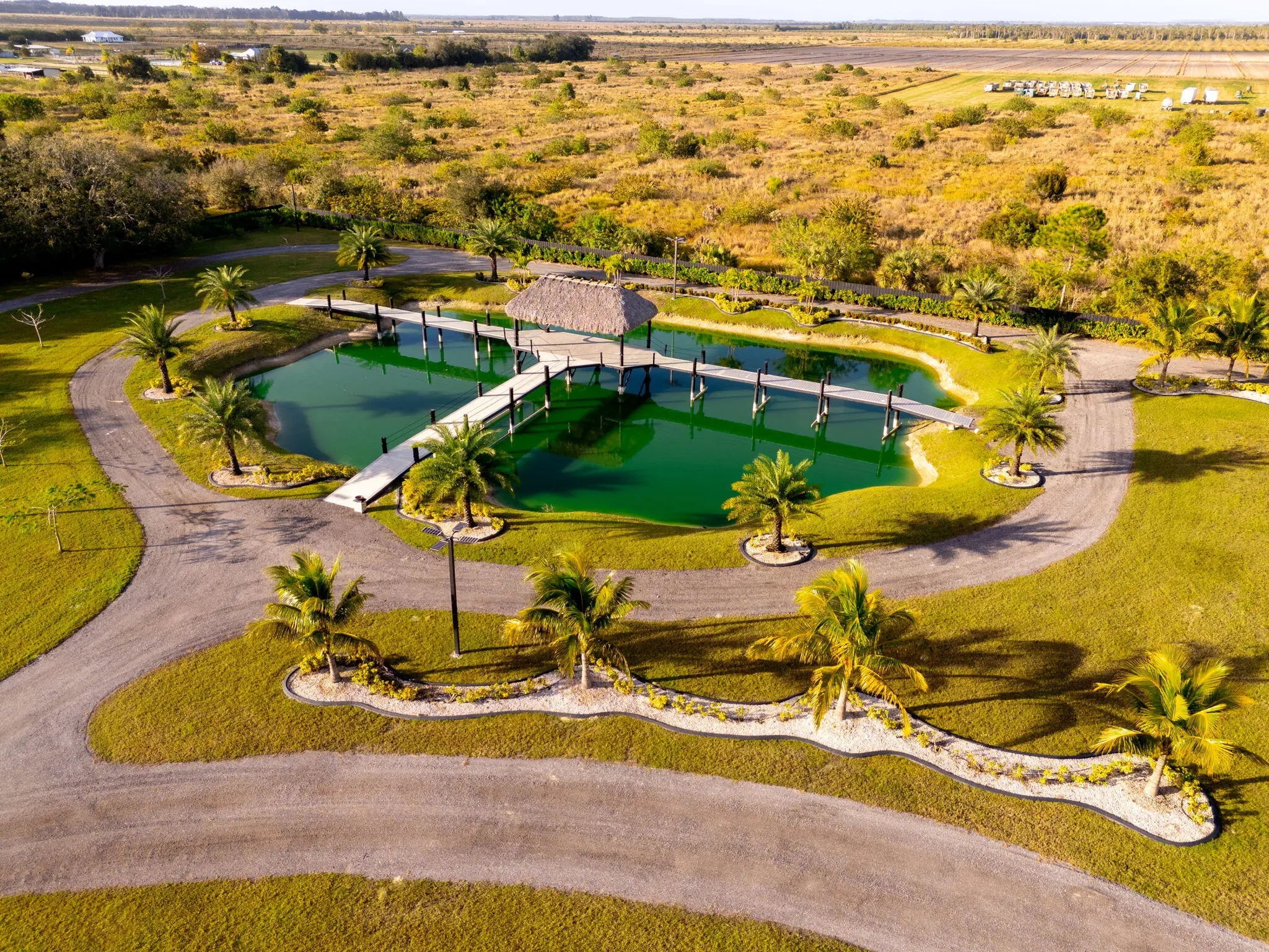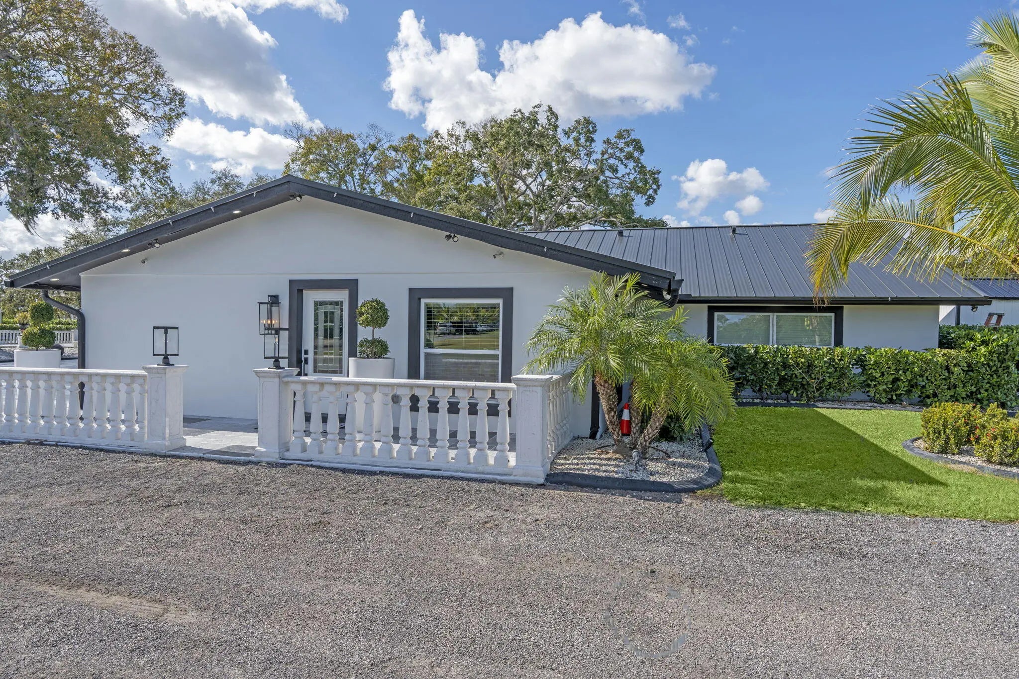 A rare offering of 12.45 fully gated acres, this private estate blends refined living, equestrian excellence, and resort-style amenities. Beyond a dramatic entrance with dual waterfalls and a custom sliding aluminum gate, the meticulously upgraded 3,345 sq ft residence offers expansive living with a private side wing ideal for guests, executive quarters, or multigenerational use. Interiors feature large-format tile and quartz surfaces, while impact-rated windows and doors provide security and efficiency. Outdoor entertaining reaches new heights with a chef's kitchen under pergolas, dedicated exterior bath facilities, and a full basketball court. A scenic half-acre pond with dock, bridge, and tiki pavilion creates a serene waterfront focal point. Fully fenced, irrigated, and supported by a reverse osmosis system, the grounds are both functional and elegant. Equestrian facilities reflect extraordinary craftsmanship: a 2,560 sq ft barn with eight stalls, saddle room with bath, central wash area, and decorative stone-accented concrete columns -- a $400,000 investment demonstrating both luxury and practicality. Security is comprehensive, with full-camera coverage, solar lighting, and illuminated grounds. This turnkey estate offers rare potential for private retreat living, equestrian pursuits, luxury events, or curated income opportunities. A distinguished acreage estate offering privacy, prestige, and unparalleled lifestyle.