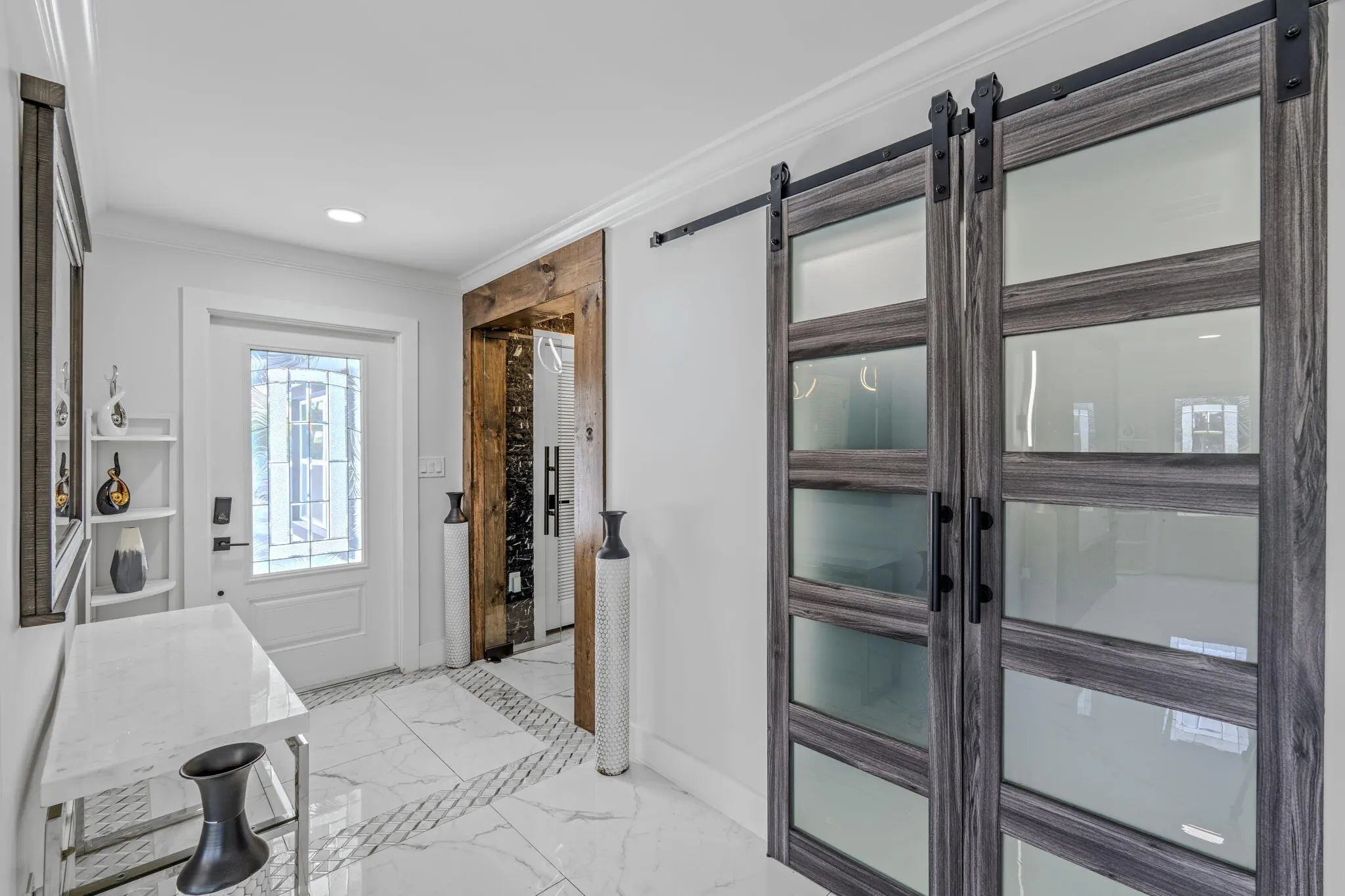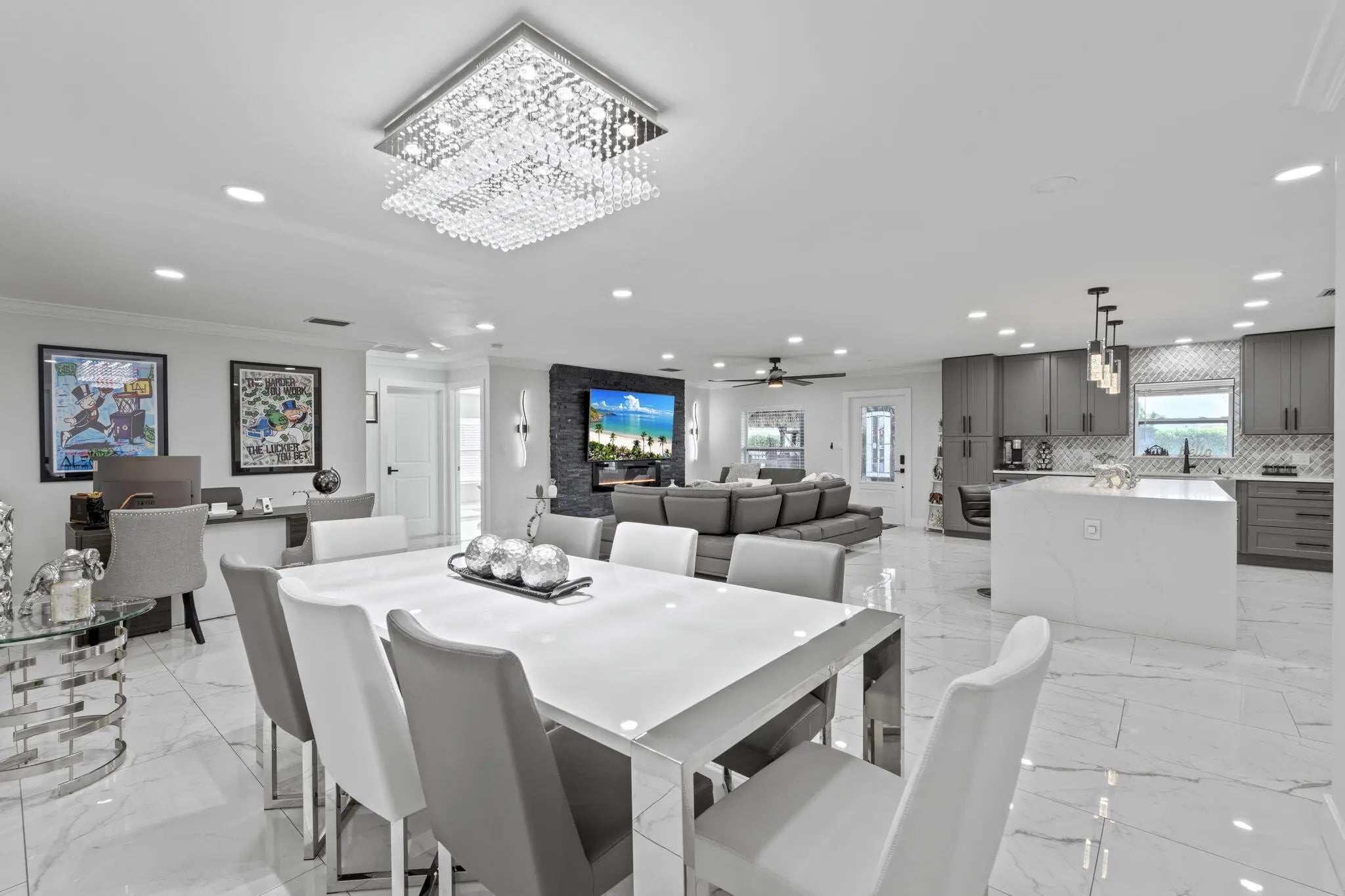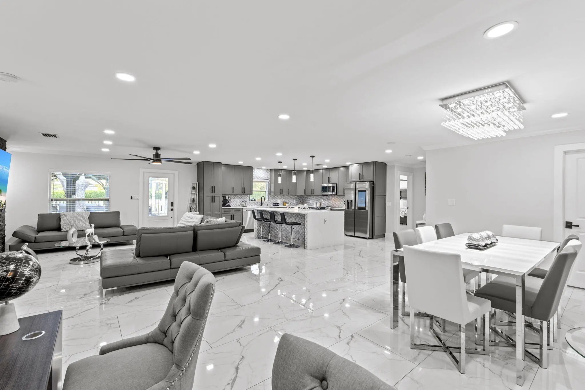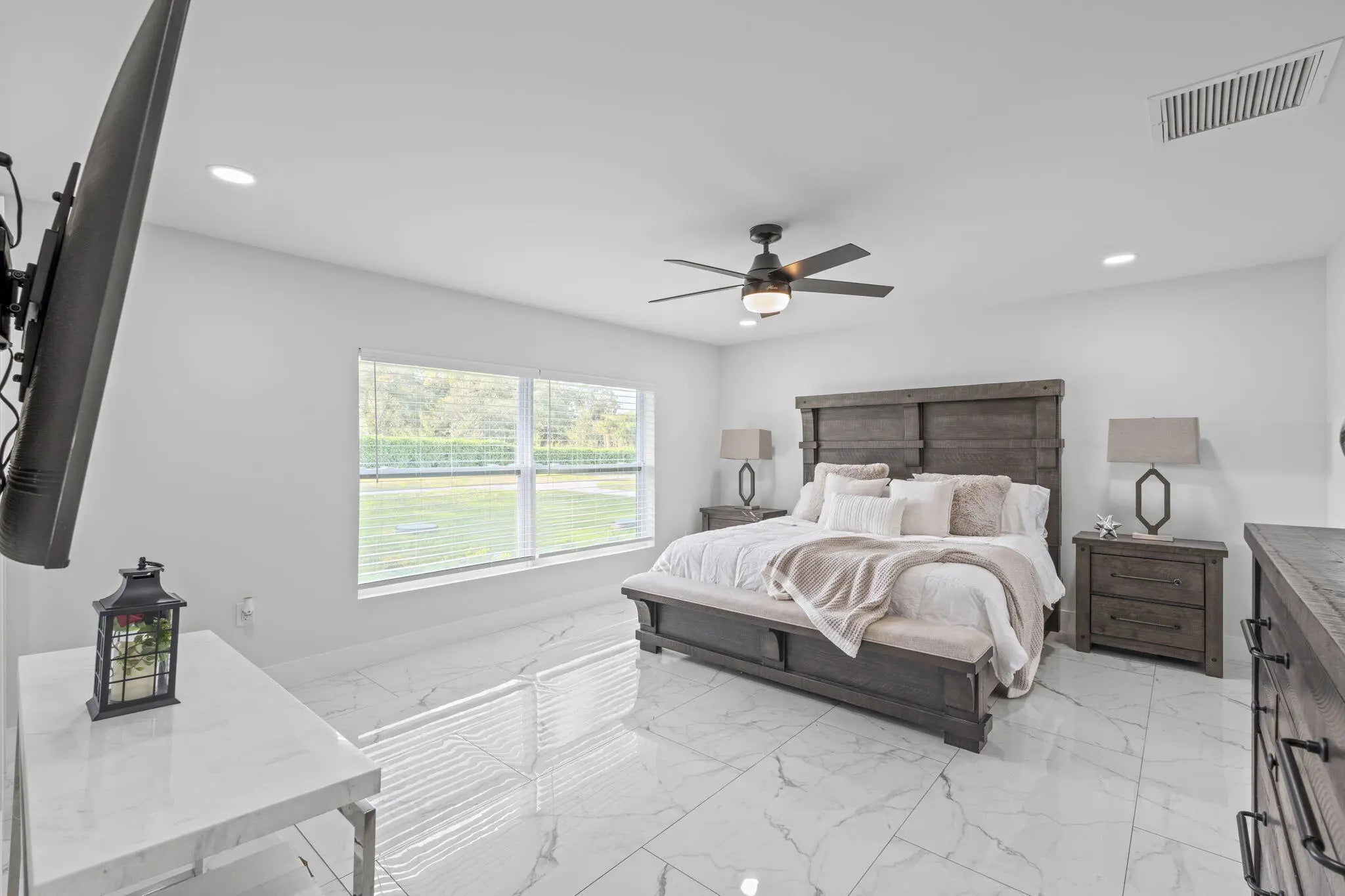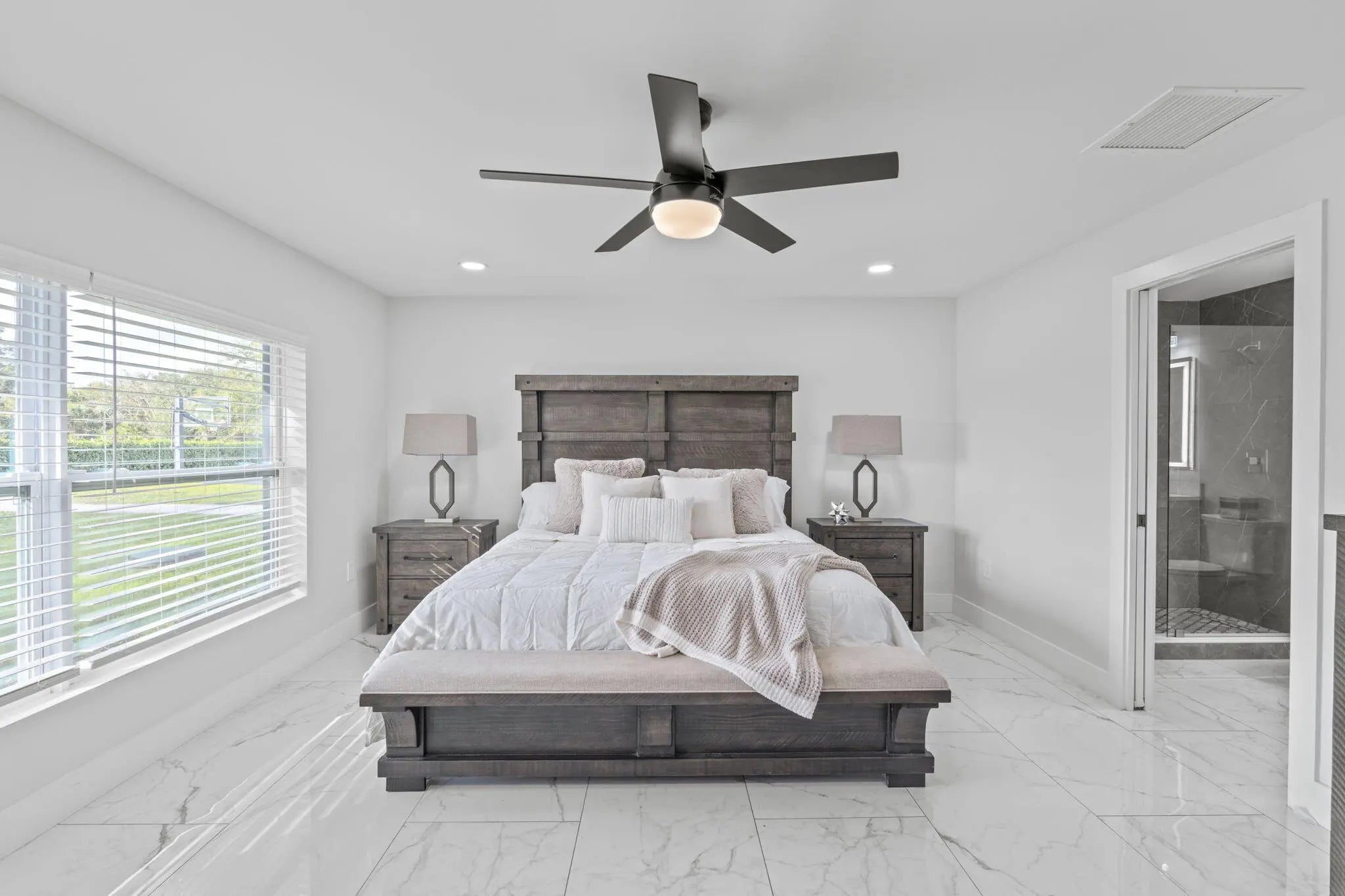 A rare offering of 12.45 fully gated acres, this private estate blends refined living, equestrian excellence, and resort-style amenities. Beyond a dramatic entrance with dual waterfalls and a custom sliding aluminum gate, the meticulously upgraded 3,345 sq ft residence offers expansive living with a private side wing ideal for guests, executive quarters, or multigenerational use. Interiors feature large-format tile and quartz surfaces, while impact-rated windows and doors provide security and efficiency. Outdoor entertaining reaches new heights with a chef's kitchen under pergolas, dedicated exterior bath facilities, and a full basketball court. A scenic half-acre pond with dock, bridge, and tiki pavilion creates a serene waterfront focal point. Fully fenced, irrigated, and supported by a reverse osmosis system, the grounds are both functional and elegant. Equestrian facilities reflect extraordinary craftsmanship: a 2,560 sq ft barn with eight stalls, saddle room with bath, central wash area, and decorative stone-accented concrete columns -- a $400,000 investment demonstrating both luxury and practicality. Security is comprehensive, with full-camera coverage, solar lighting, and illuminated grounds. This turnkey estate offers rare potential for private retreat living, equestrian pursuits, luxury events, or curated income opportunities. A distinguished acreage estate offering privacy, prestige, and unparalleled lifestyle.