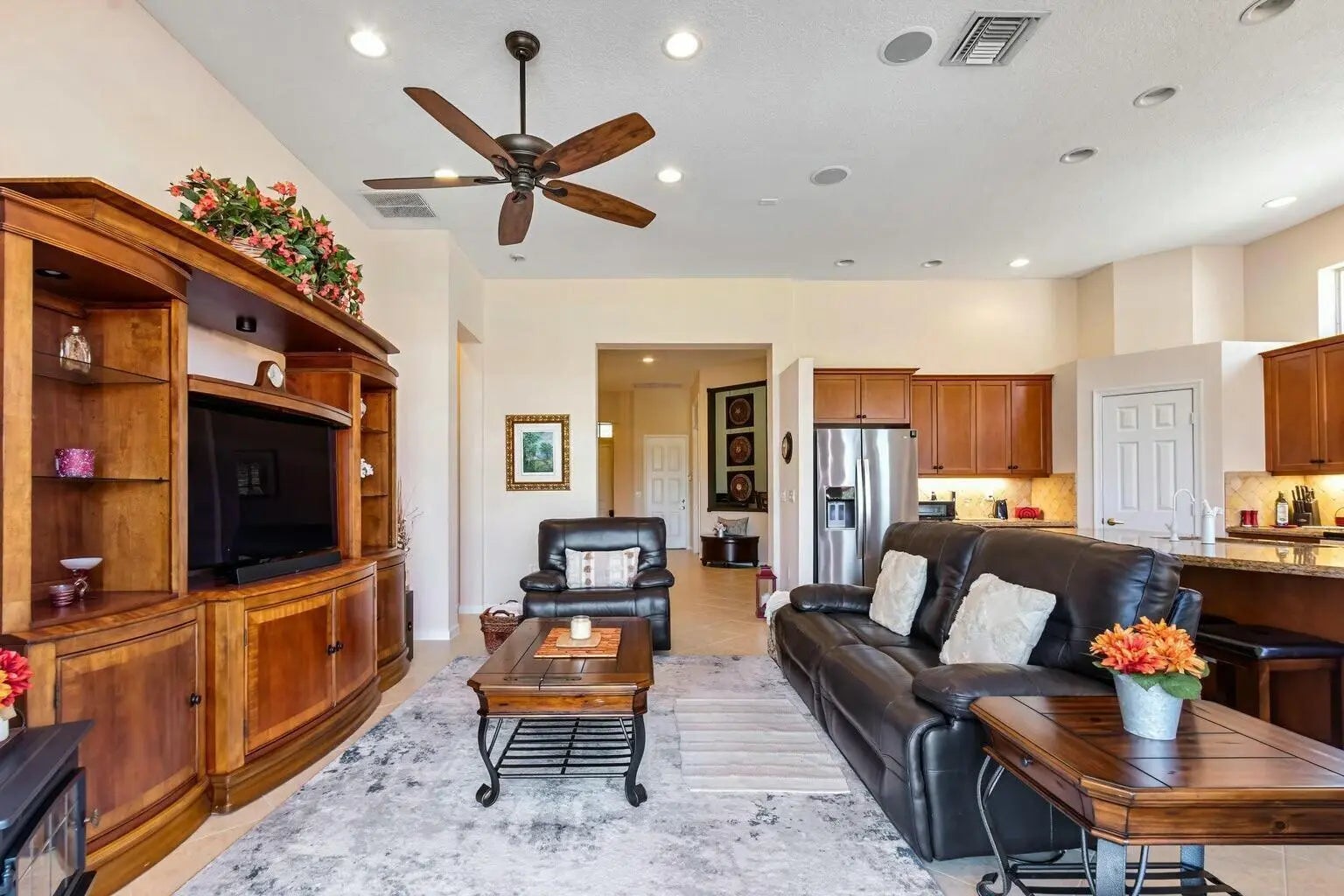 This meticulously maintained home boasts 2 spacious bedrooms and 2.5 baths, reflecting a commitment to care and quality that stands out in every detail. Step into the epitome of luxury in this exquisite residence located in the heart of Buena Vida, Wellington's premier 55+ community renowned for its vibrant and active lifestyle. This stunning home features a host of high-end upgrades, tailored for comfort and security. Enjoy the upgraded lakefront patio with an infinity screen that offers expansive and seamless views of the tranquil waters—perfect for relaxation or entertaining guests. The home is equipped with top-of-the-line hurricane protection, ensuring peace of mind during Florida's dynamic weather seasons. High ceilings throughout enhance the open, airy feel, maximizing natural light and creating an inviting atmosphere. Ideally situated with very close access and just 12 minutes from Palm Beach International Airport, this home offers exceptional convenience for both seasonal residents and frequent travelers. Buena Vida's unmatched amenities cater exclusively to adults over 55, including a luxurious clubhouse, state-of-the-art fitness center, lavish swimming pools, and tennis courts among other features. Embrace a lifestyle of elegance and convenience in this sought-after 55+ community. This residence isn't just a place to live; it's a gateway to a fulfilling and vibrant lifestyle.