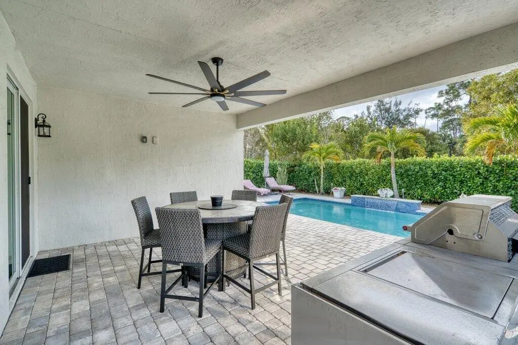 Stunning 4-bedroom, 2.5-bath saltwater pool home with a spacious loft, built in 2021 and loaded with upscale upgrades. Featuring quartz countertops throughout, soft-close cabinetry, custom built-in closets, and a luxurious first-floor primary suite with designer his-and-hers closets. Enjoy peace of mind with hurricane-impact windows and doors, plus added value with structural warranties. Step outside to a private backyard retreat complete with a saltwater pool and fully equipped outdoor kitchen, perfect for entertaining. Ideally located just minutes from PBI Airport and major highways. Modern luxury, exceptional quality, and prime convenience all in one.