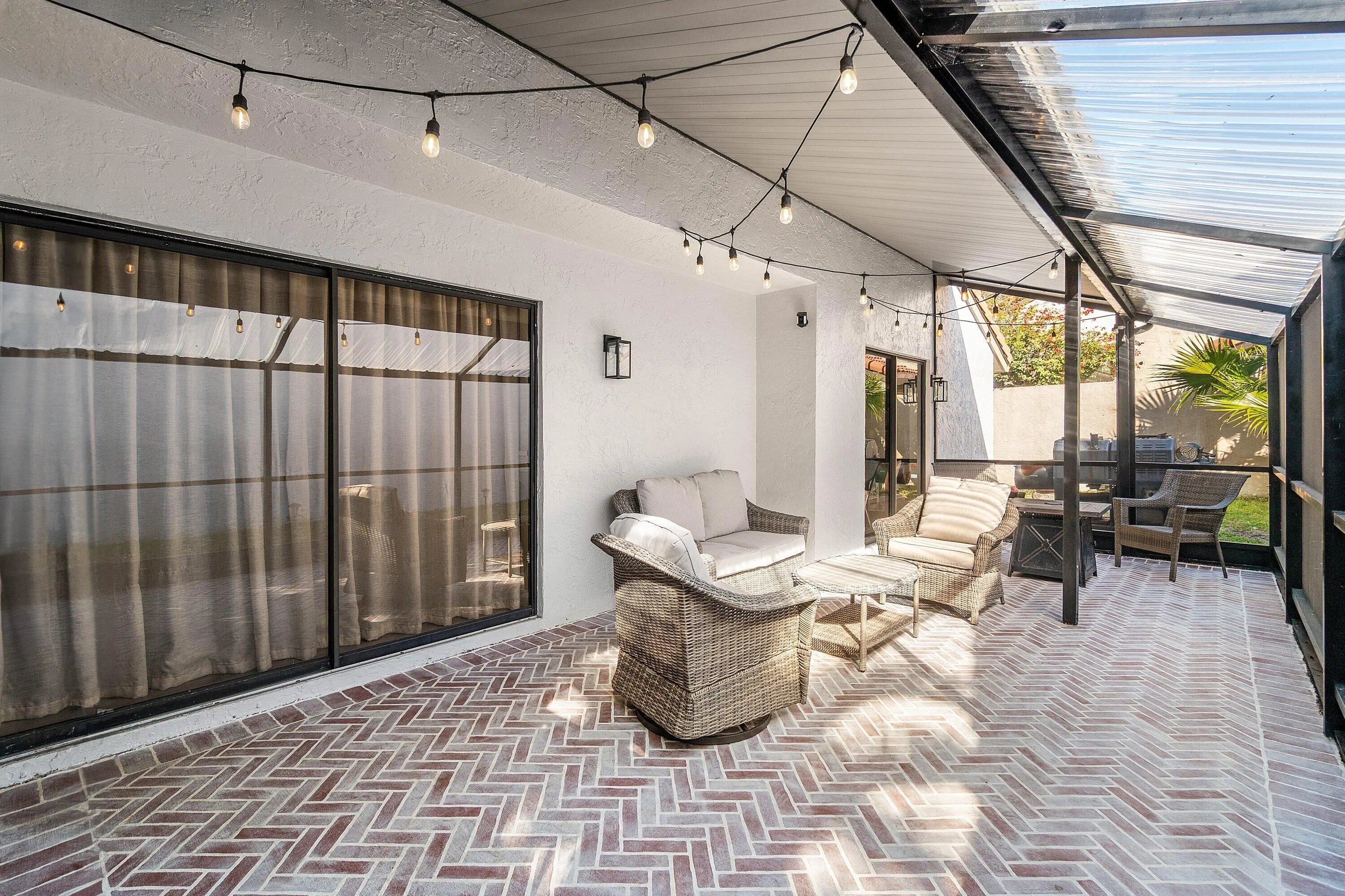 Custom Finishes & Thoughtfully Reimagined Spaces! This charming 3 bed, 2 bath home has been beautifully upgraded with intentional design and high quality craftsmanship. New accent walls add warmth and character, while the remodeled bathrooms and custom designed entry and mudroom with built in storage create the perfect blend of style and everyday function. The primary bedroom features a custom walk-in closet and a stunning updated vanity. The living room complete with a built in desk with decorative wall detailing, offering a polished work from home or flex space. New interior doors and paint give the home a crisp, cohesive feel from top to bottom. Step outside to the screened back patio featuring a painted whitewashed herringbone brick floor, creating a designer outdoor feel, perfect for relaxing or entertaining. The painted starburst front walkway adds standout curb appeal, while the garage is outfitted with a custom workbench and added storage solutions. A lot of love has been poured into this home. Make it your own today!