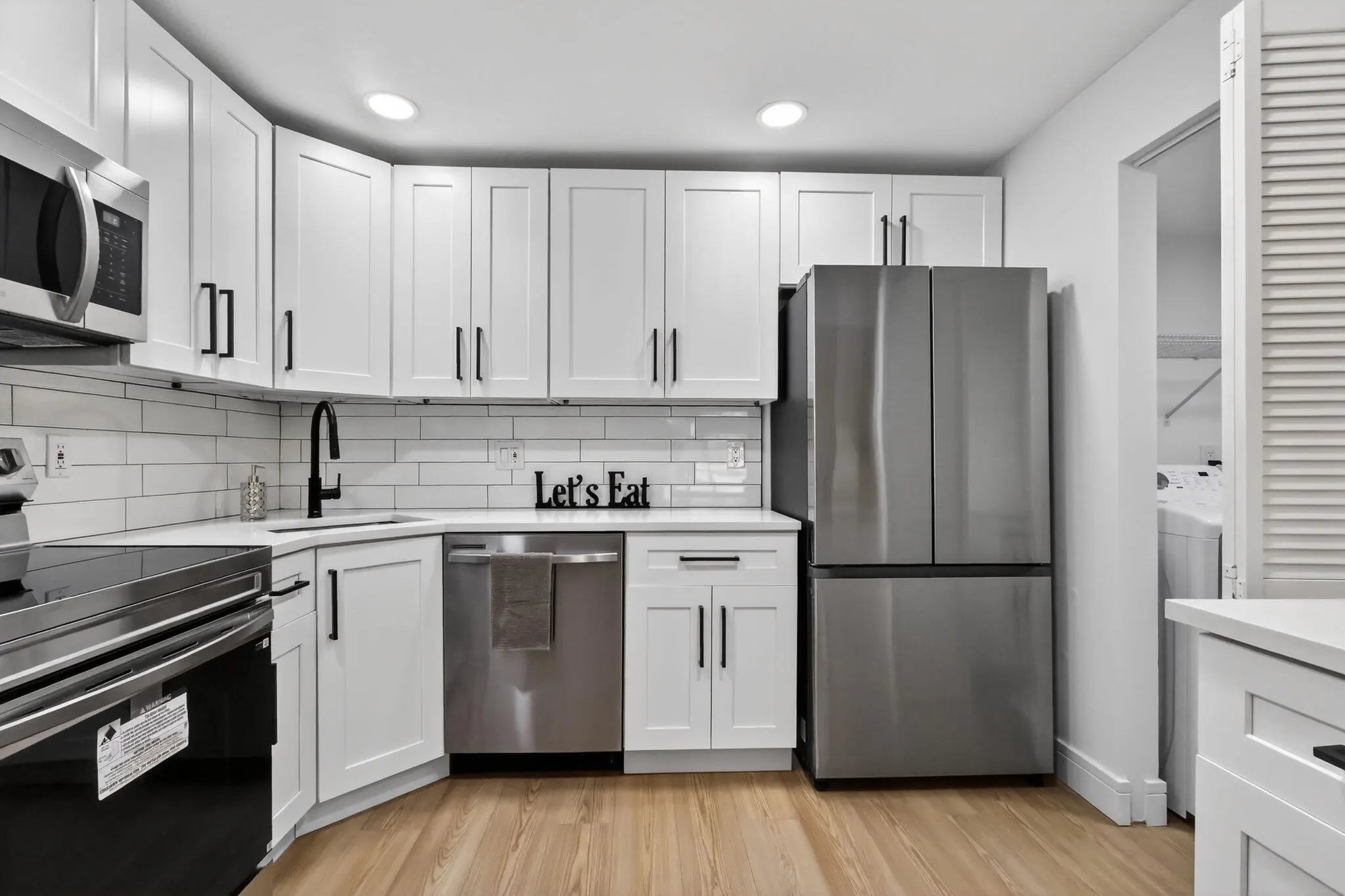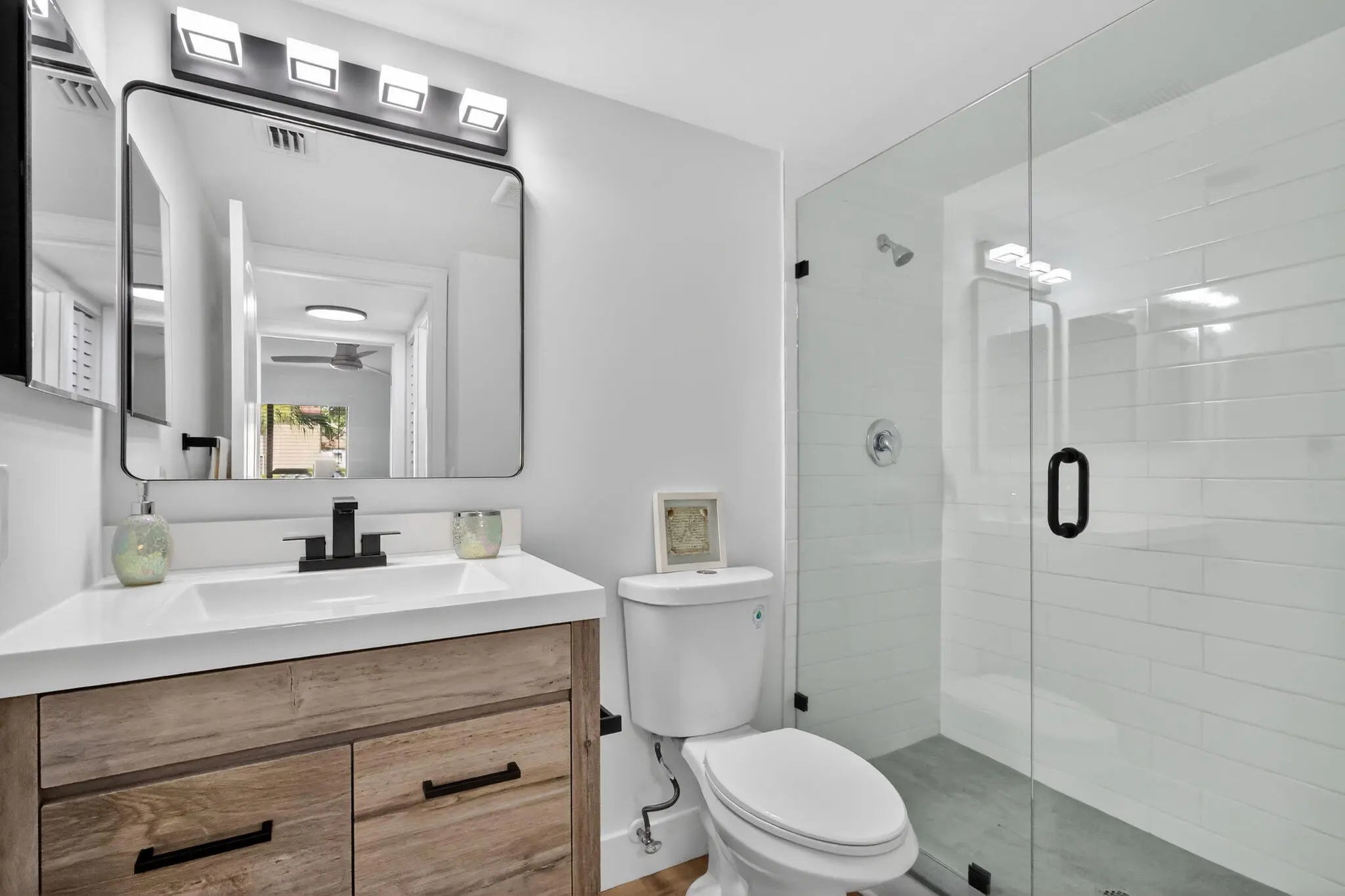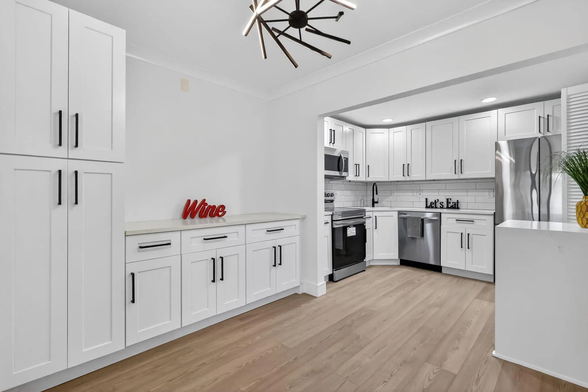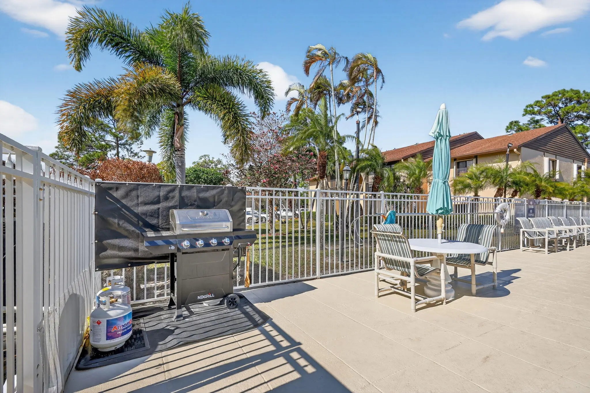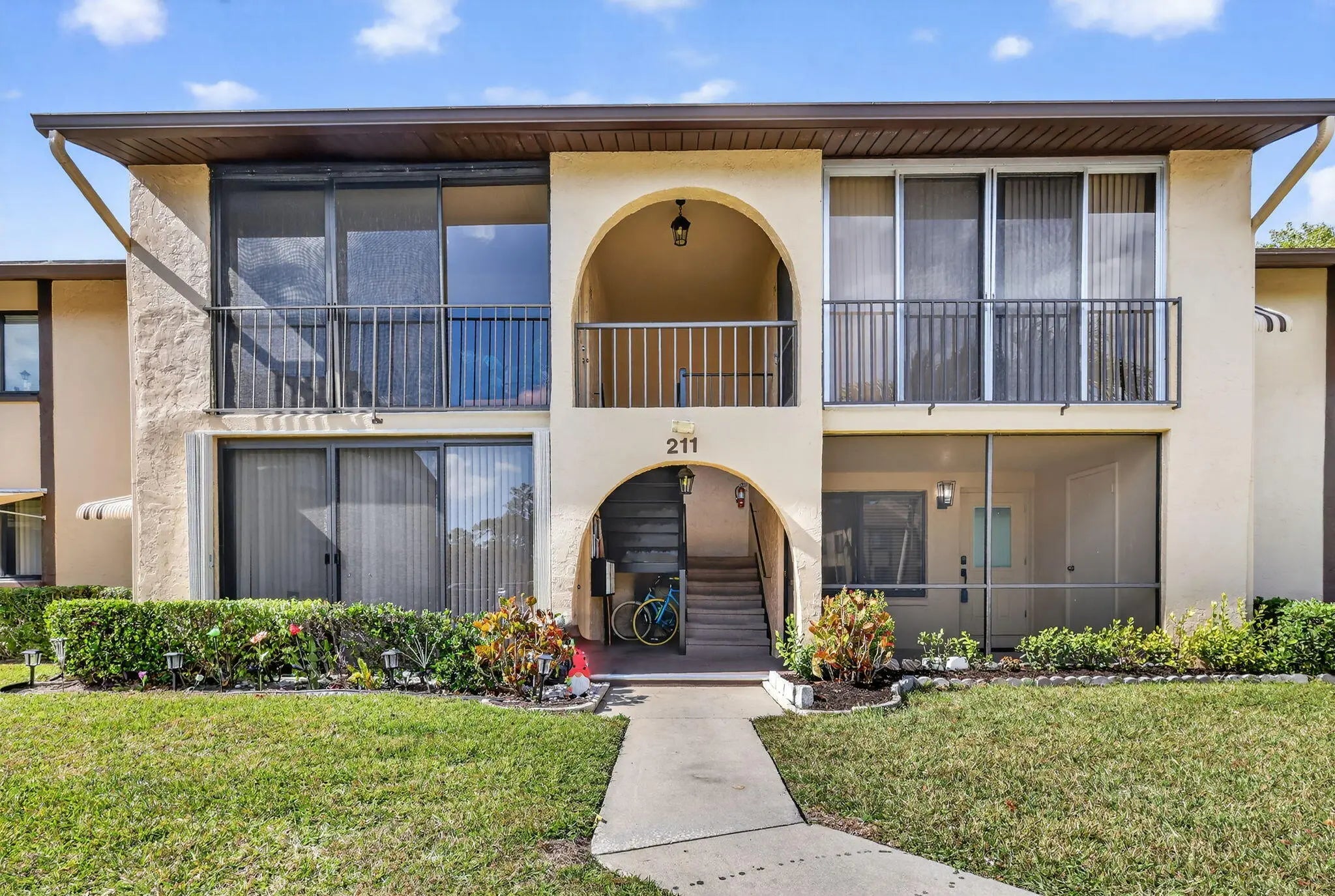 STUNNING REMODEL! This gorgeous 2BR/1.5BA, Features: NEW impact windows & impact door (2025), NEW stainless steel appliances (2026), NEW luxury vinyl flooring thru-out (2026), Freshly Painted with NEW interior doors & new frames (2026), NEW hot water tank (2025), NEWER AC, Electrical panel, Washer & Dryer all (2023). The open-concept layout showcases a remodeled extended kitchen w/shaker cabinets, pantry, quartz countertops, w/backsplash, recessed lighting, stylish fixtures & modern finishes thru-out. Primary bedroom includes a walk in closet, Bathroom features a frameless glass shower door & 1/2 bath w/New Vanity, Both bath rooms w/New mirrors & New tiolets (2026). Exterior patio painted & New screened patio, condo in a 55+ community. Living, Dining & Primary Bedroom is virtually staged. Amenities - heated pool & clubhouse. Low Condo dues include cable & lawn care. Condo is located very close to the clubhouse and amenities. There is additional storage on the patio. Prime location - close to Publix, restaurants, shopping, hospital and airport. Make this your new home!