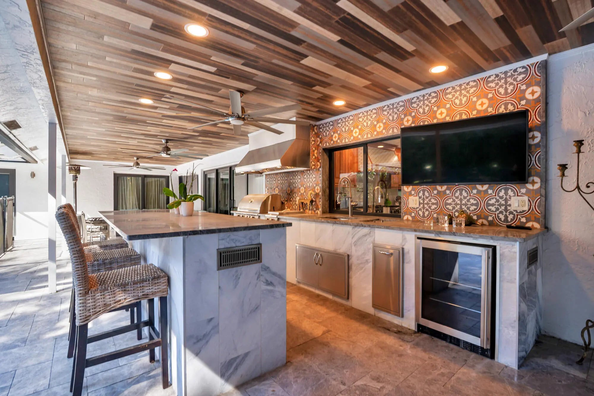 Built-in Barbecue, Custom Lighting, Summer Kitchen, Pool Bathroom