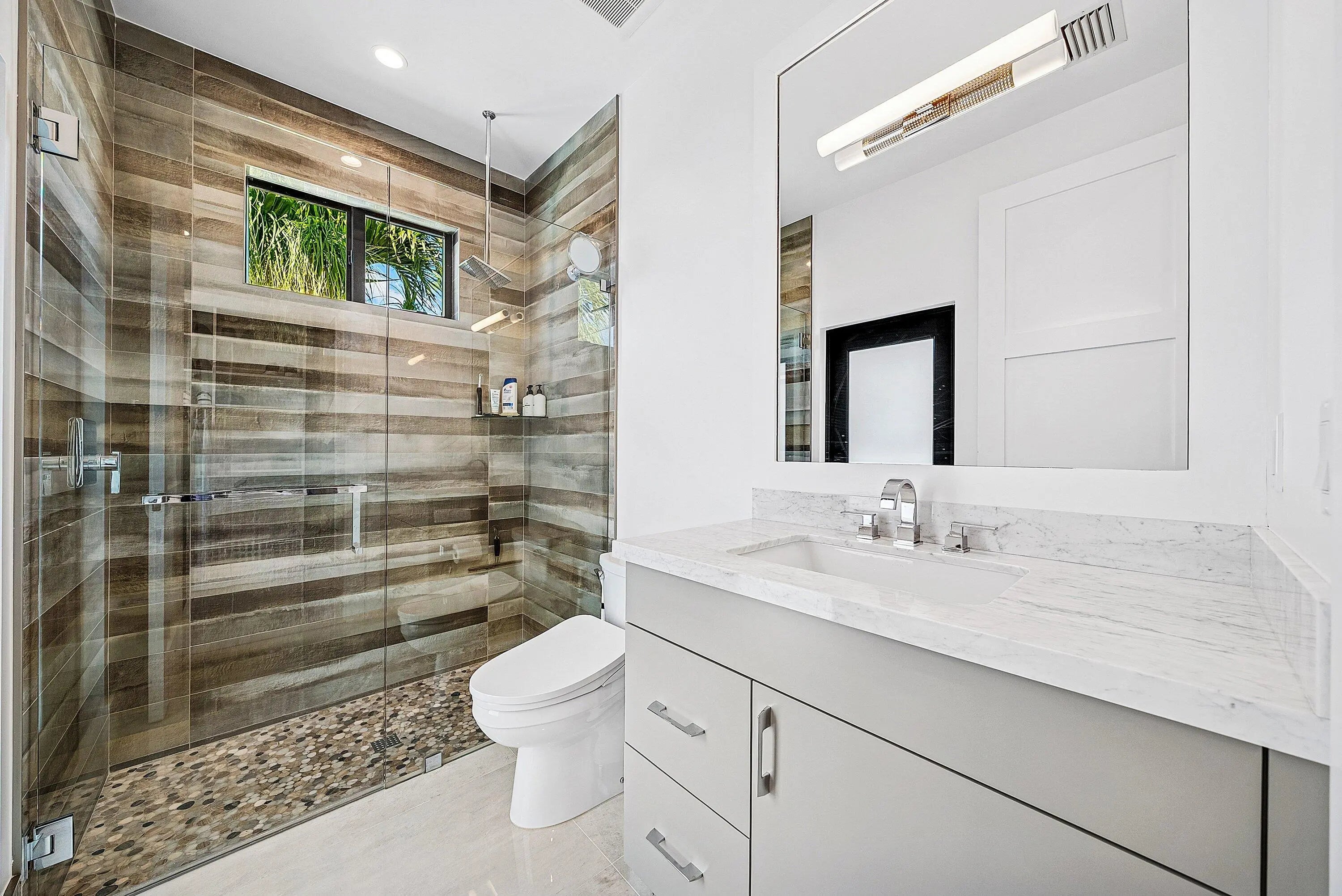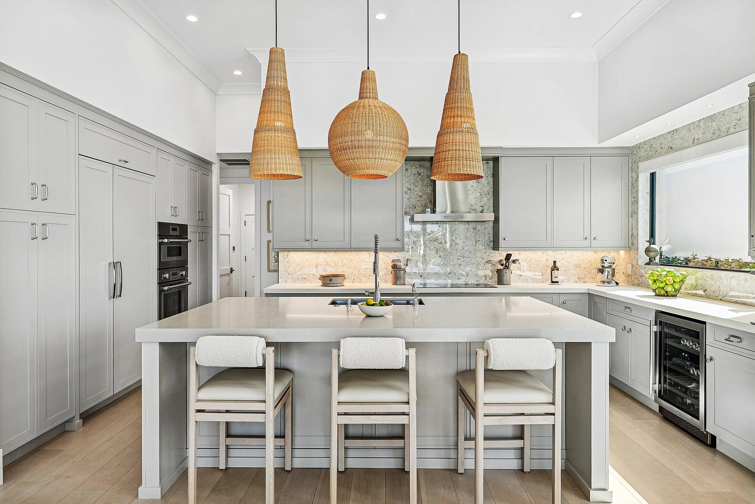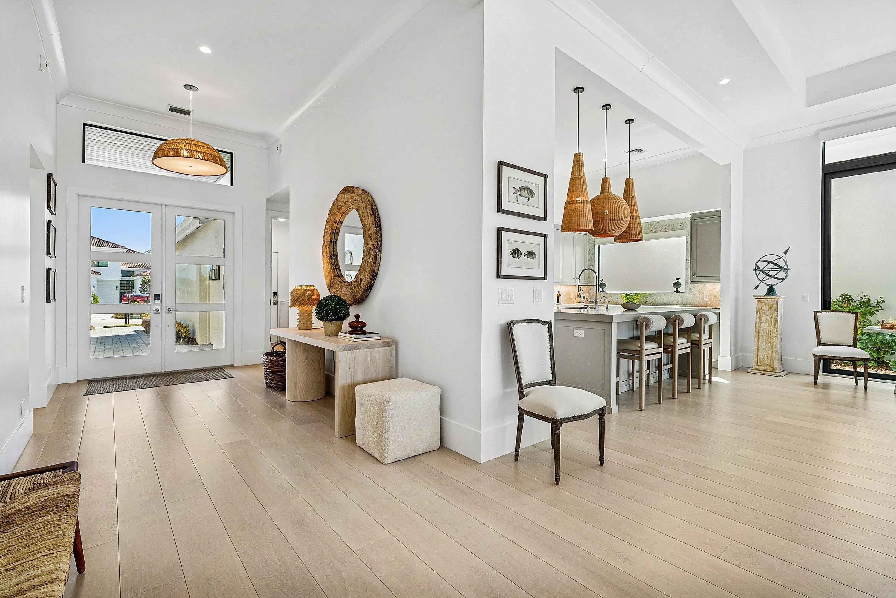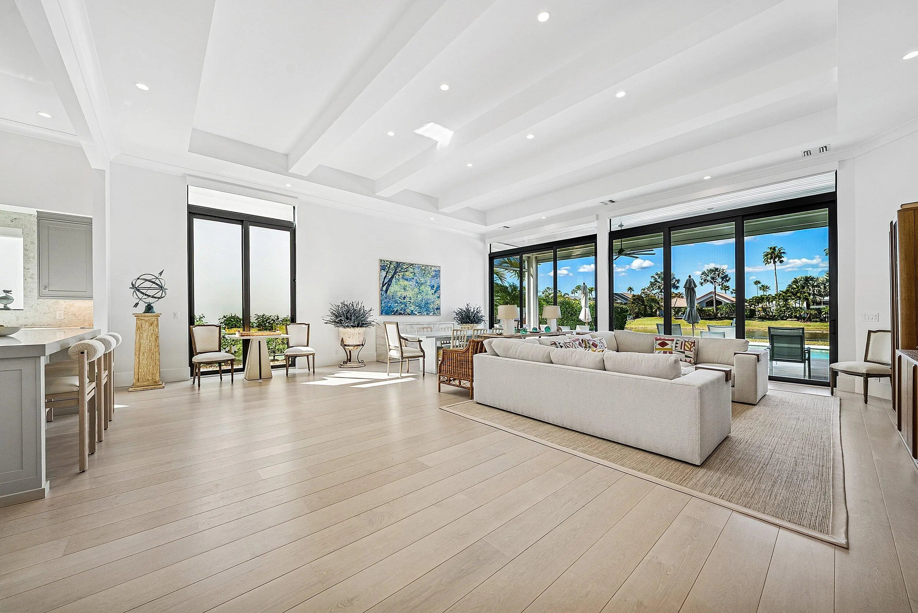 Stunning, fully renovated single story residence available in the prestigious community of Frenchman's Creek, offering breathtaking lake views and nearly 2,700 sf of living space. This beautifully updated home features 3 bedrooms, 4.5 bathrooms and an open, light-filled layout designed for comfort and entertaining. Upon entry, an abundance of natural light pours through a wall of windows along the rear of the home, highlighting the soaring ceilings and seamless flow between the main living and entertaining areas. Tastefully finished in neutral tones, the home showcases engineered white oak hardwood flooring throughout the living areas. The kitchen boasts premium Thermador appliances with custom panel-ready finishes that integrate effortlessly into the cabinetry for a sleek look. The spacious primary suite is complete with two walk-in closets, dual bathrooms - one serving as a convenient cabana bath - and a bonus office space with tranquil pool and lake views. The primary bath features a soaking tub, separate glass-enclosed shower, and generous storage. A full gut renovation completed in 2020 includes new plumbing, electrical, roof, trim details, impact windows and numerous additional upgrades, providing modern style and peace of mind. Don't miss out on this masterpiece, Schedule your showing today! Frenchman's Creek Members enjoy the ultimate concierge lifestyle with resort amenities, state-of-the-art brand new clubhouse, two 18-hole championship golf courses - for only 600 homes. Numerous dining options, navigable waterways, racquet sports, social events and so much more. The exclusive Beach Club, included with membership, located on beautiful Juno Beach allows use of pool, restaurant, beach attendant and water activities.
