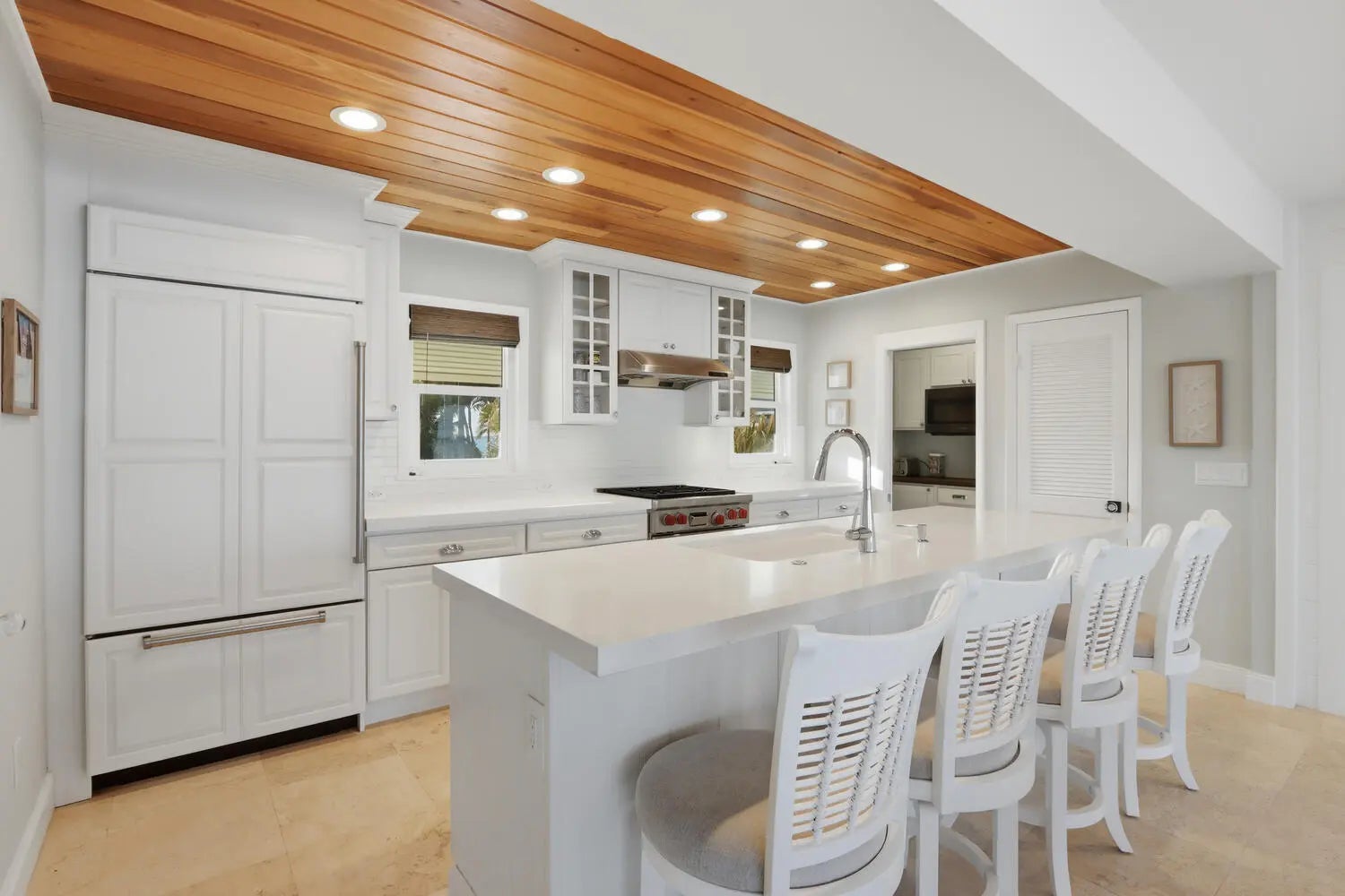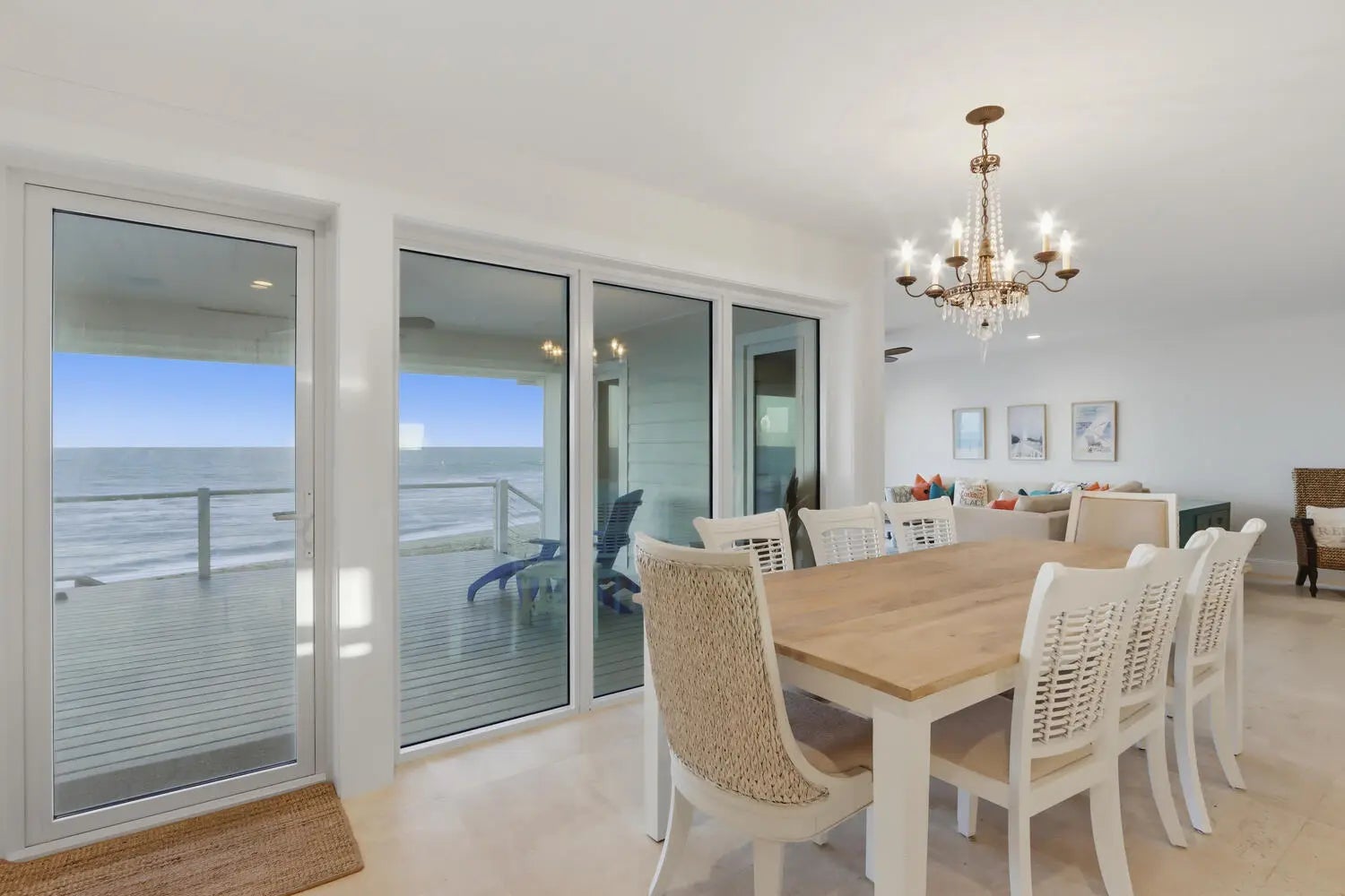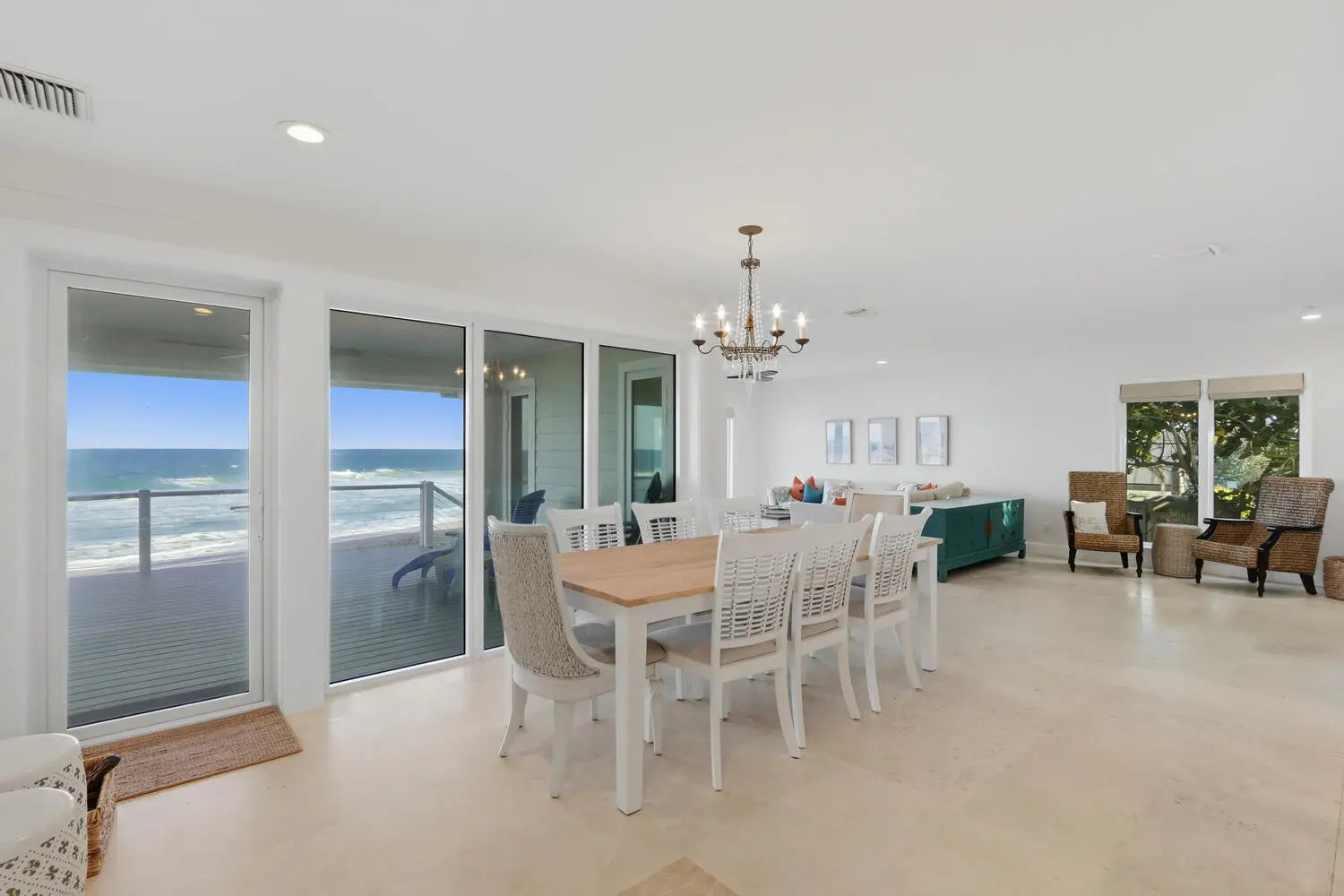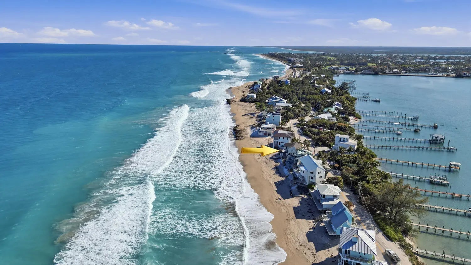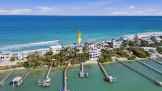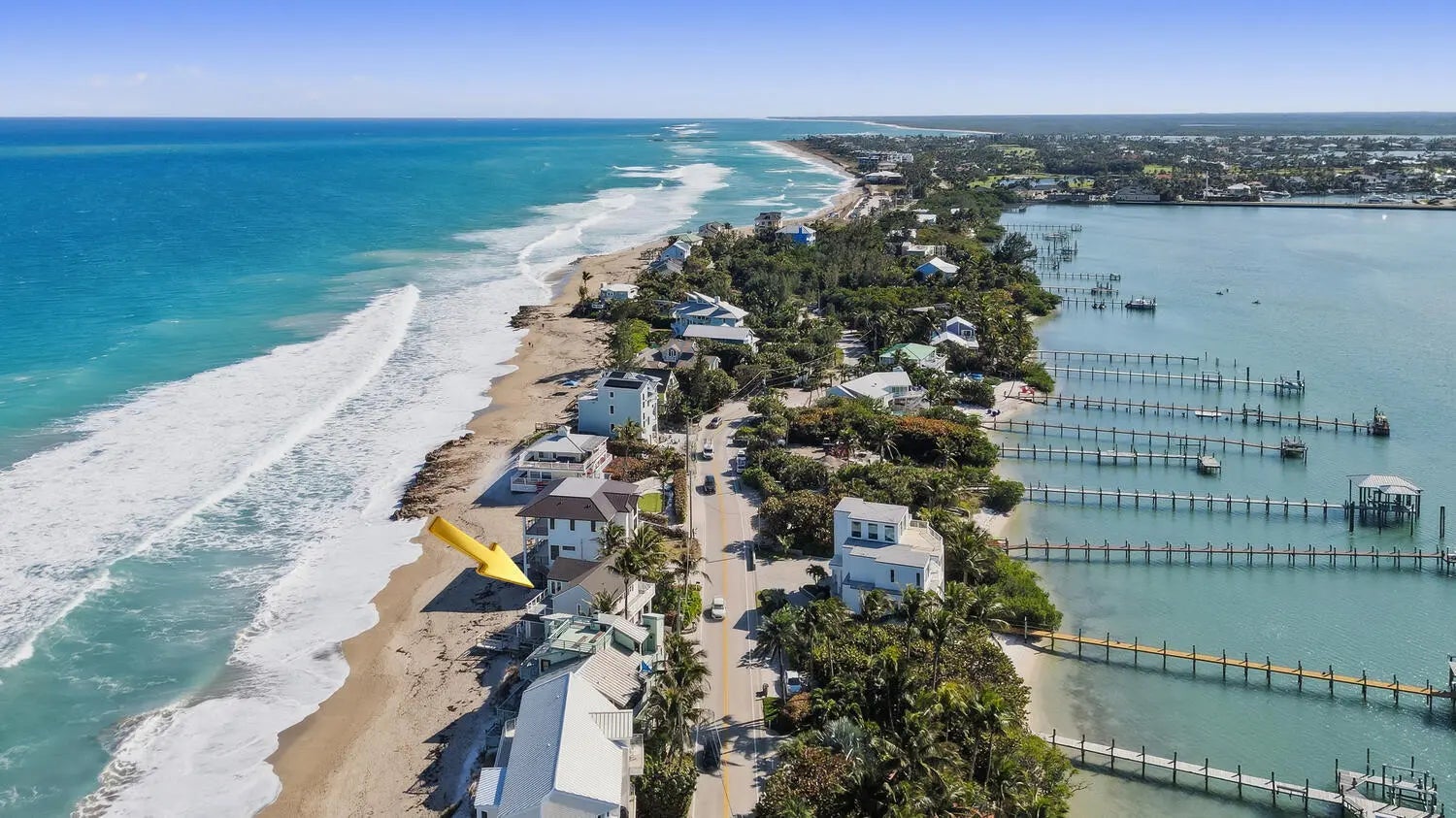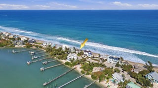 Incredibly rare double-waterfront opportunity! This beautiful home is one of fewer than 60 properties in the USA that borders on both the Atlantic Ocean and the Intracoastal Waterway. Enjoy a sunrise over the ocean, and sunsets over the intracoastal. This breathtaking coastal home offers a large kitchen with Wolf gas range, Sub-Zero refrigerator and two distinct butler's pantries; perfectly poised back deck to listen to the waves; crisp interiors, and absolutely stunning views from every window. Recent updates include gorgeous new deck railings, brand new countertops, and reinforced pilings. Be in the ocean by boat in less than 10 minutes, the 10,000 lb boat lift is ready for your vessel. Walk out your back door to peaceful Bathtub Beach, or dine at popular Sewall's Point restaurants. Impact windows include transferable lifetime warranty. Come see this idyllic waterfront home today. It's the finished beach home you've been waiting for.