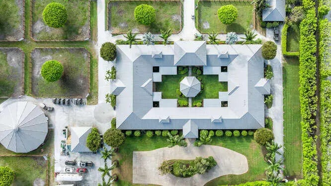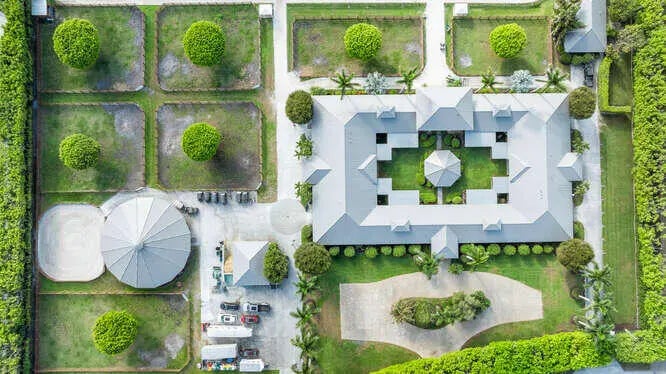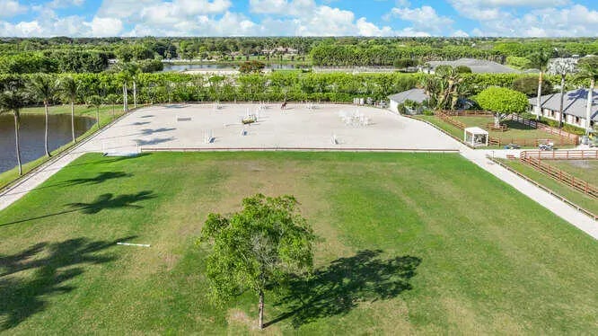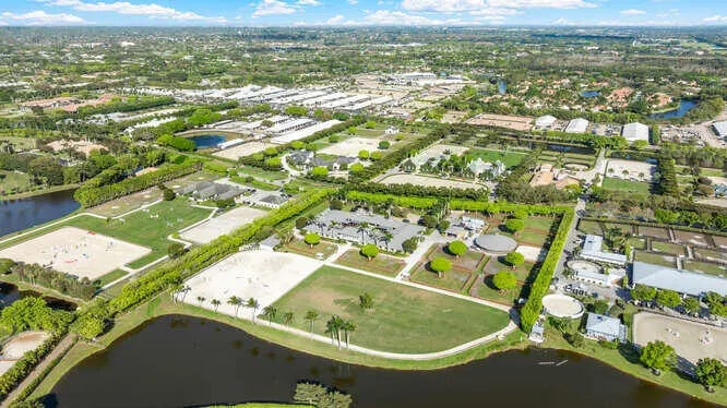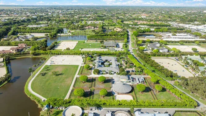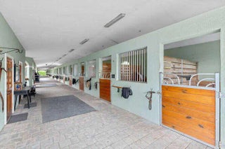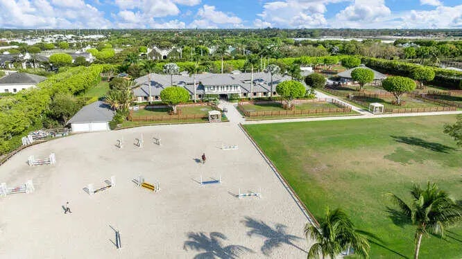 Exceptional equestrian 7.83 acre estate located in the prestigious Grand Prix Village, just steps from the bridle path with direct access to Wellington International, the renowned home of world-class horse shows. Brand new roof installed last year!! This 38-stall farm is a rider's dream, featuring a 6-horse walker, a grass riding ring, a fiber/sand ring complete with a full set of jumps, and a track encircling both arenas. Additional amenities include 9 spacious grass paddocks, multiple feed rooms, tack rooms, wash racks, grooming stations, a ferrier station, and dedicated owner's quarters. The property also offers three residential units, including groom apartments, providing ample accommodation. Perfect for equestrian enthusiasts seeking unparalleled luxury and convenience.