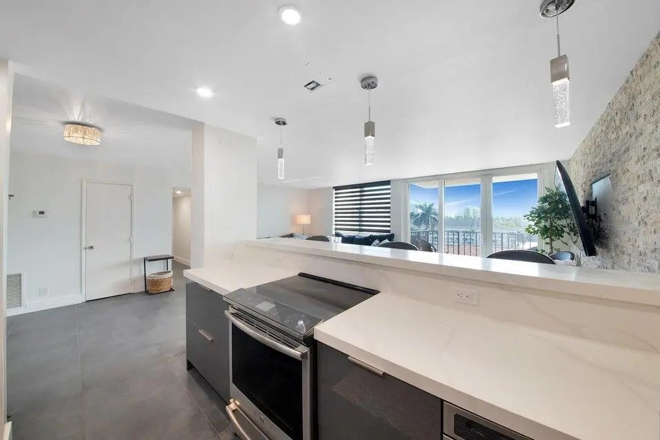 SEASONAL RENTAL 04-01-2026 to 11-01-2026 Nestled on the waterfront with convenient with direct ocean access, this exquisite boutique building invites you to move right in! Revel in the splendor of this fully renovated, furnished 2-bedroom, 1.5-bathroom condo boasting a breathtaking nocturnal panorama of Fort Lauderdale. As you step inside, bask in the flood of natural light accentuating the 24'48 tile flooring and captivating stone accent wall. The contemporary kitchen showcases Quartz countertops, a tiled backsplash, stainless steel appliances, cooktop, recessed lighting, and a convenient snack bar. Unwind in the generously-sized master suite featuring a customized walk-in closet. The updated bathroom boasts a walk-in shower and ample storage space. More..