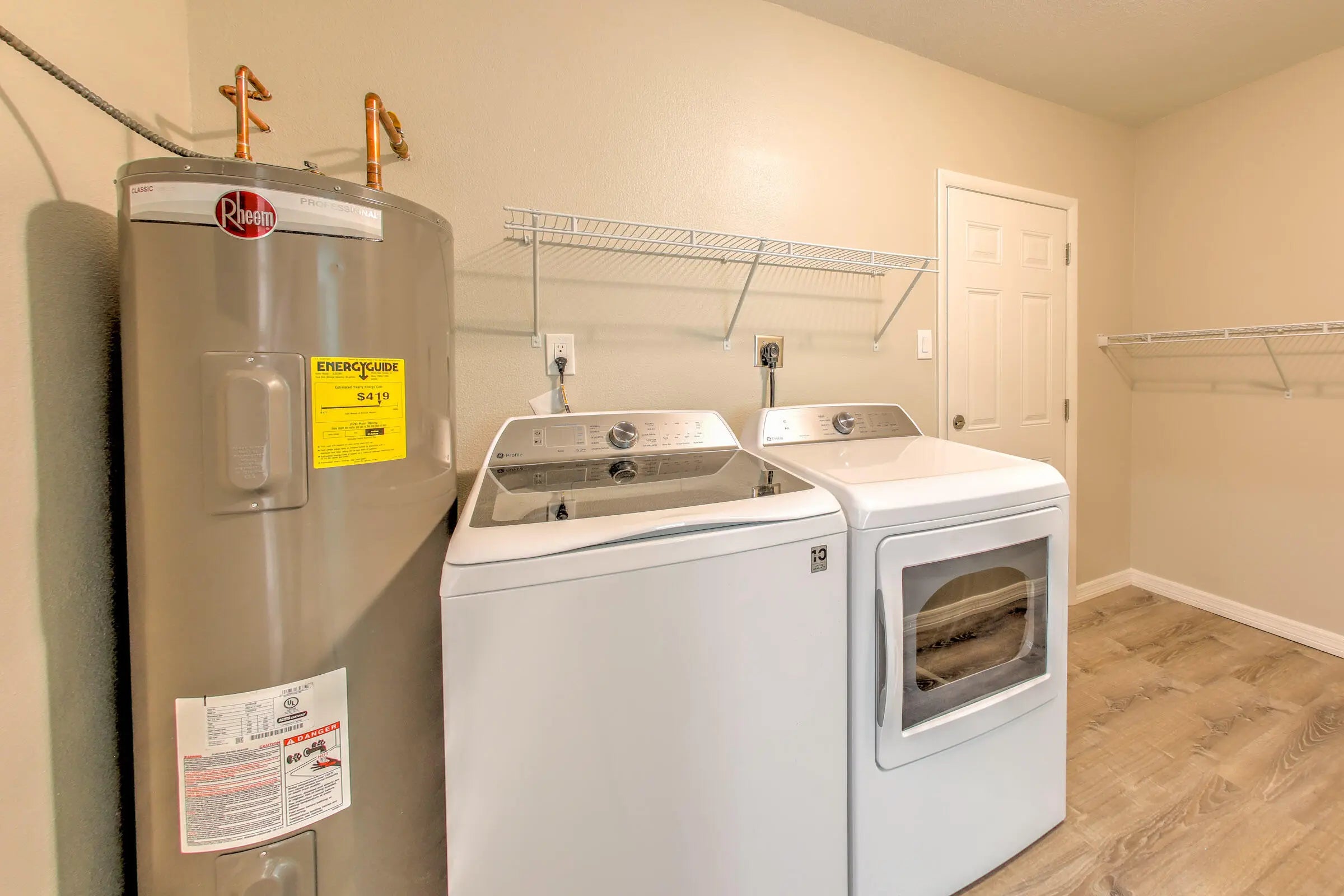 Electric Water Heater, Dishwasher, Electric Range, Microwave, Water Heater, Washer