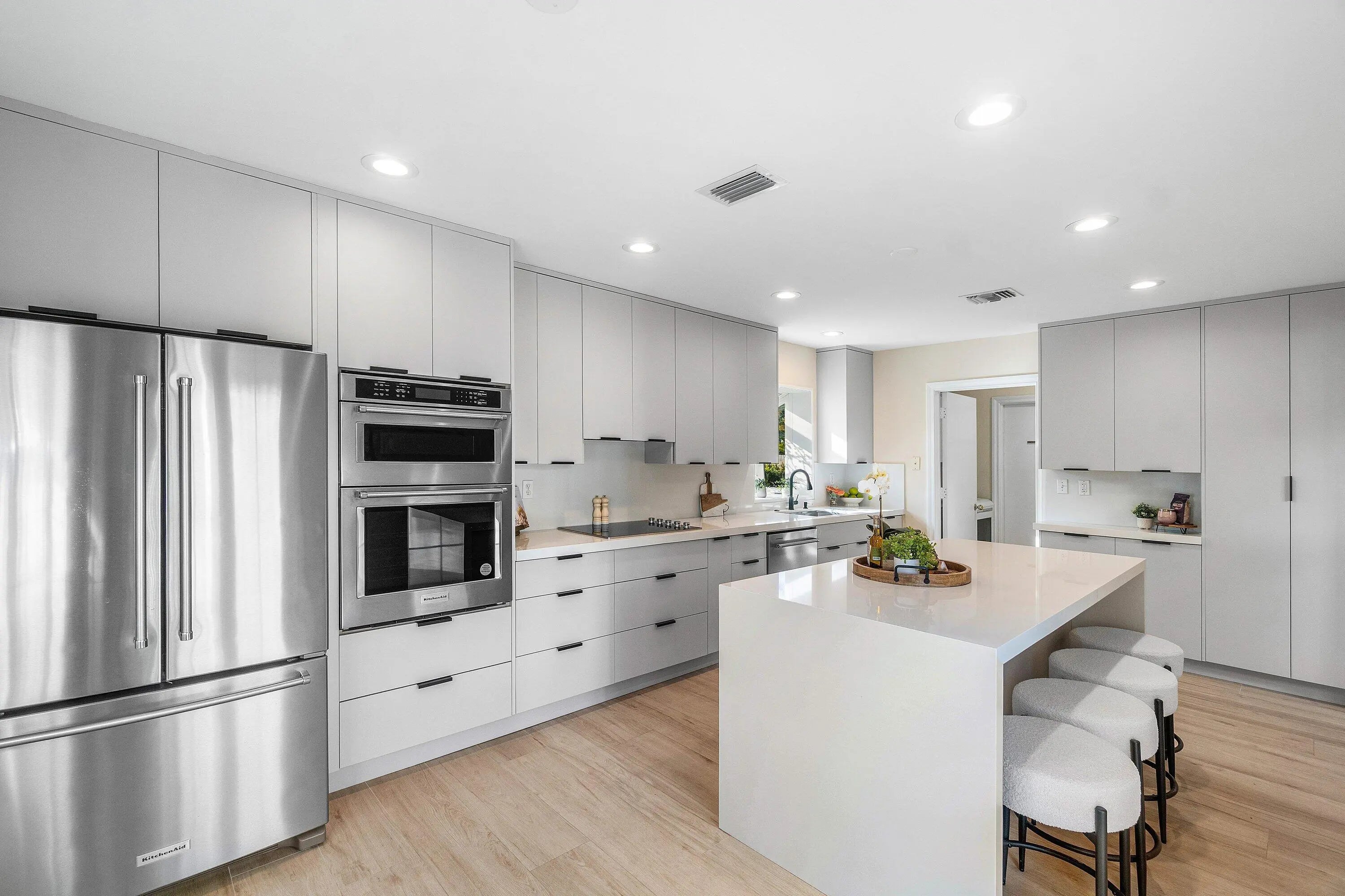 Nestled in the most prestigious and highly sought-after Lake Ida neighborhood in East Delray, this well appointed Grand Estate 5 bedroom, plus huge loft, 4 full bath, pool home with 2.5 car garage offers Delray charm with modern updates! Two extremely spacious primary suites, one downstairs and the other upstairs plus potential to configure to a 6 bedroom layout. New Coastal style Italian porcelain flooring downstairs & real hardwood flooring upstairs. The kitchen has been recently updated with gorgeous contemporary cabinets, quartz countertops & island w/ room for 4 barstools and top of the line Kitchen Aid appliances. Updated cabana bath leads out to the screened lanai & pool. Large fenced backyard great for entertaining or children & pets to play. Close to Atlantic Ave & beaches