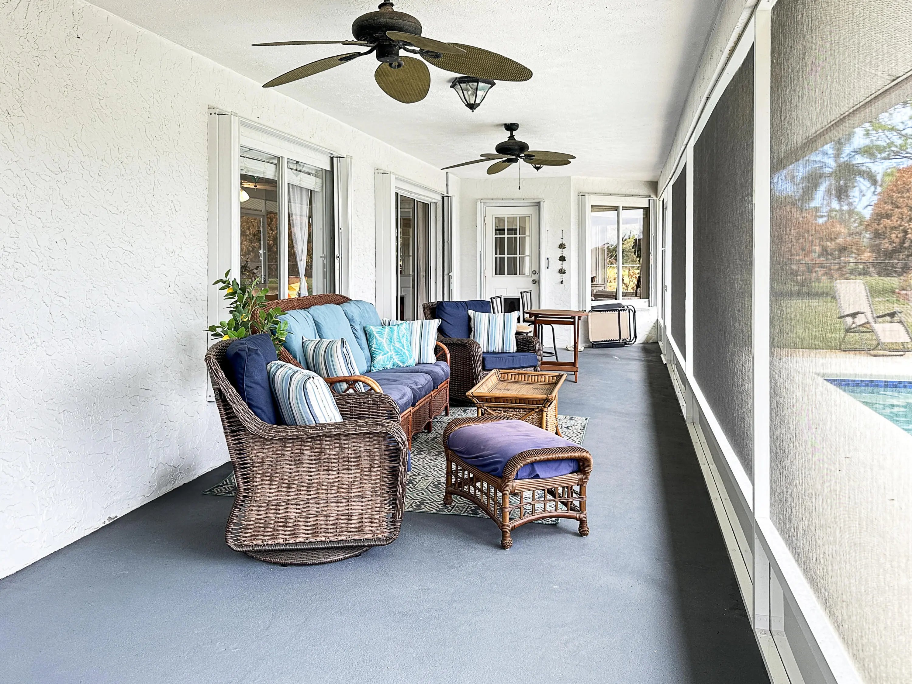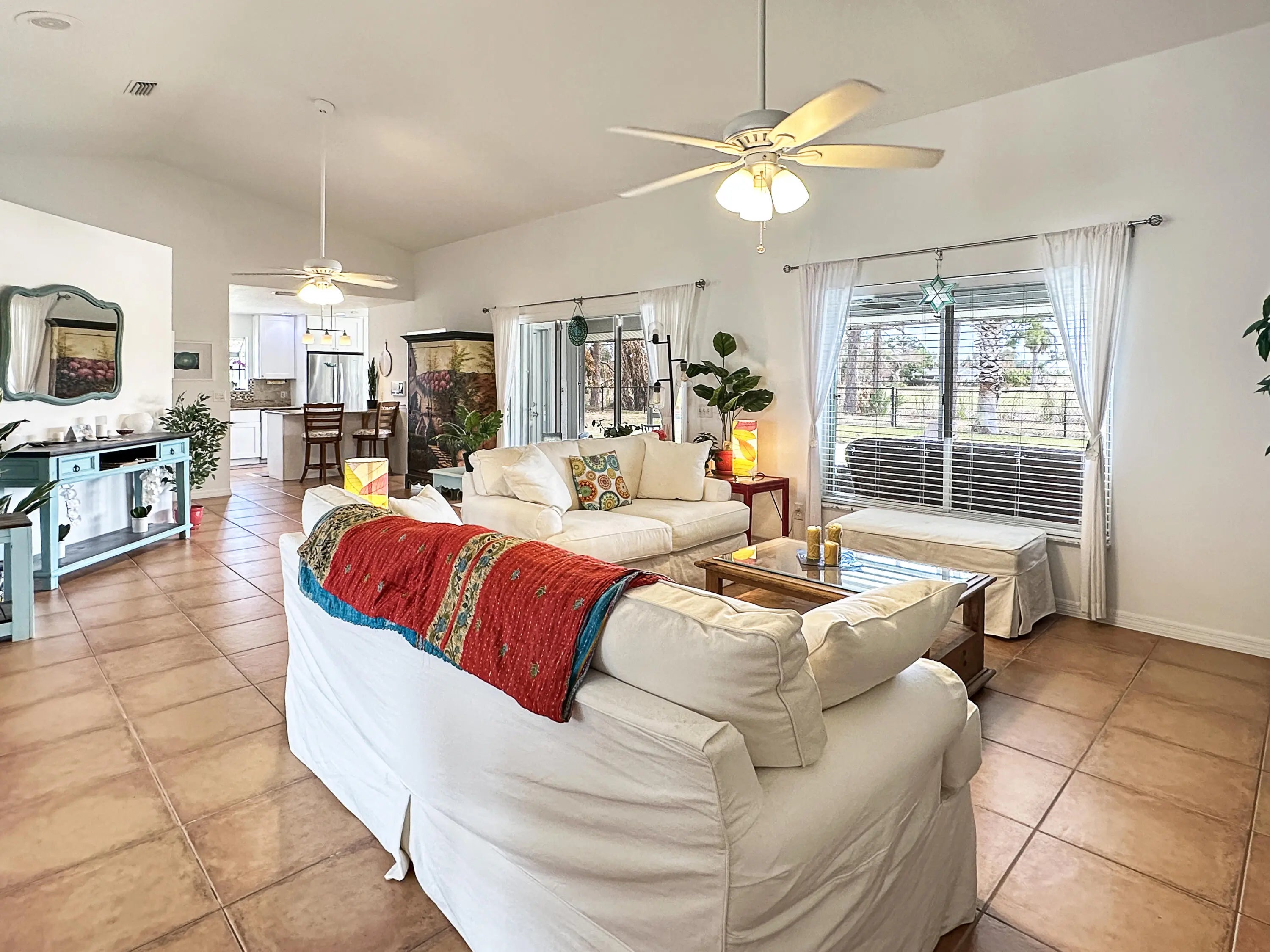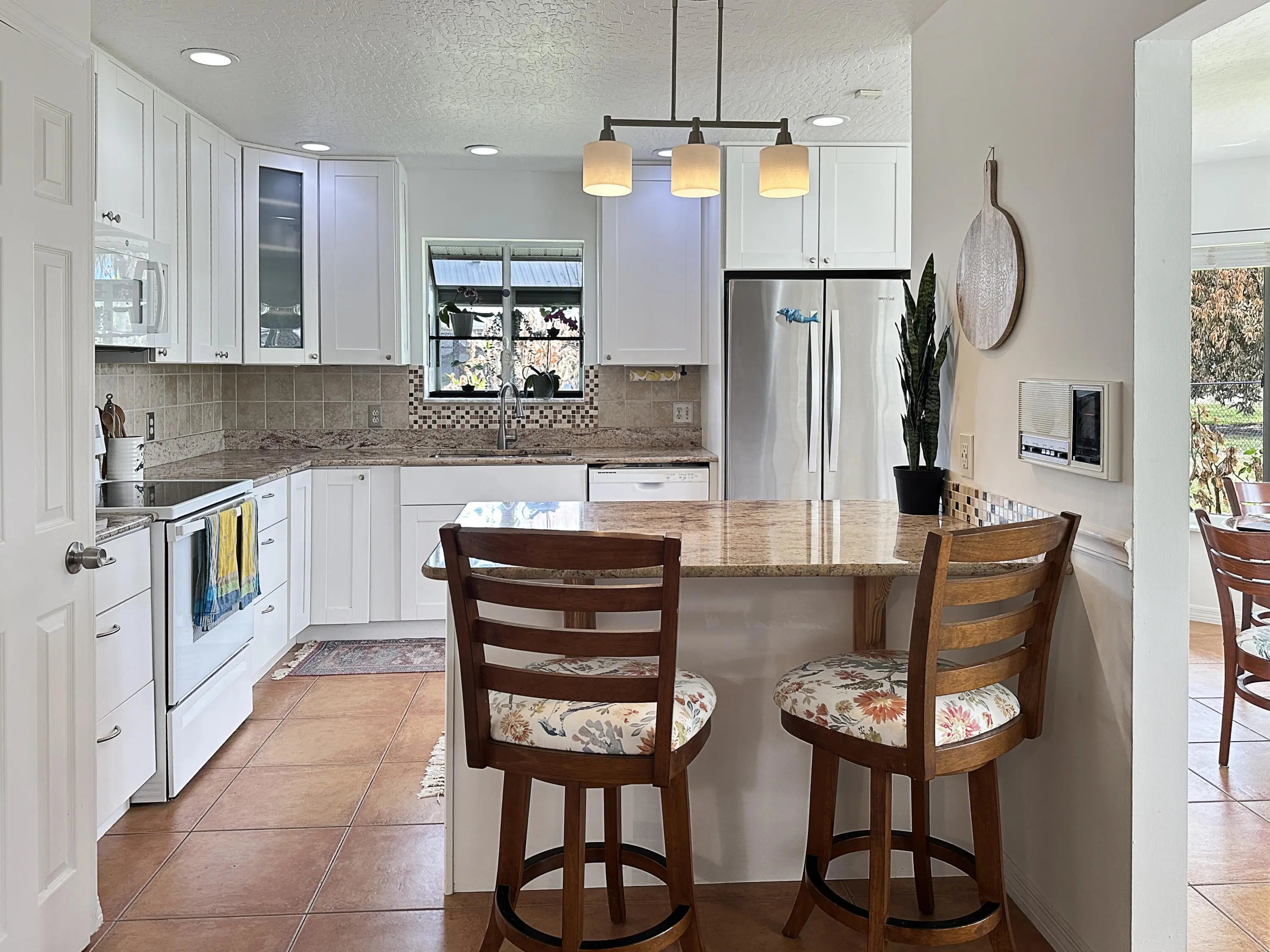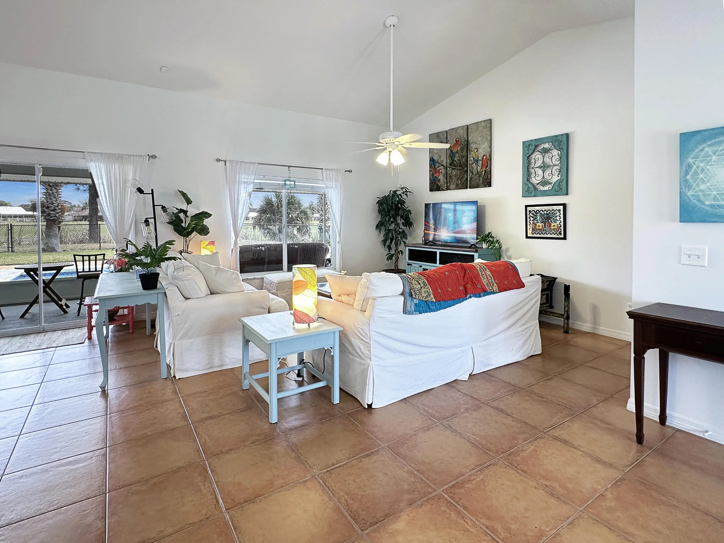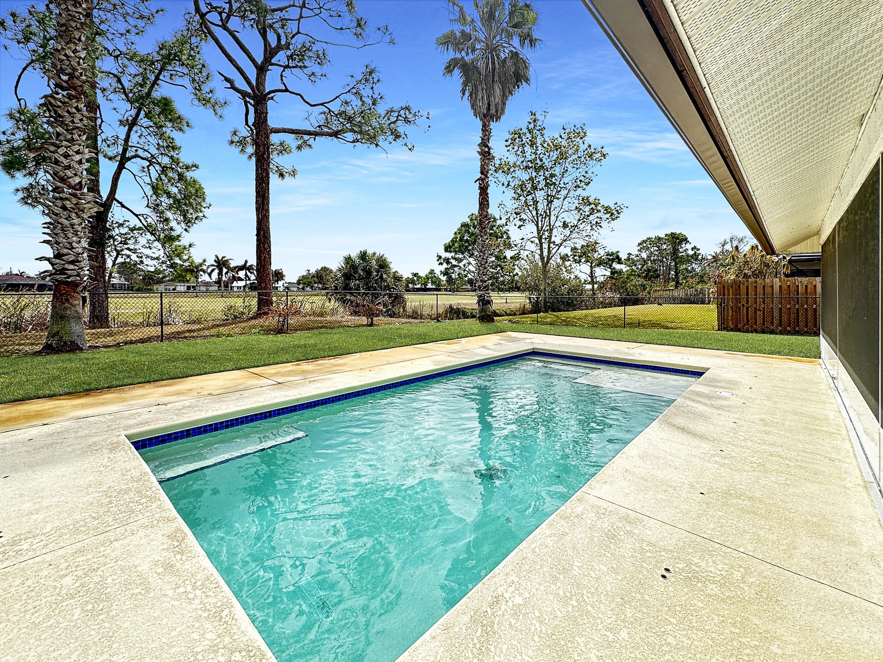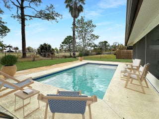 Welcome to a dream residence tailored for families and golf aficionados alike, a stunning single-family oasis that perfectly combines luxury and leisure. Envision a tranquil retreat where your backyard extends onto the vibrant greens of Island Pines Golf Course, offering serene views of the 2nd fairway. Step inside to discover a spacious foyer, a sophisticated kitchen, boasting granite countertops, a tiled backsplash, pantry, and a convenient snack bar. The living room is expansive and open, providing a welcoming atmosphere for family gatherings or a peaceful evening at home. This home features three inviting bedrooms, including a versatile central guest bedroom that can serve as a den, office, or gaming room to suit your lifestyle needs. The master suite is a true sanctuary, offerin elegance and comfort with modern granite vanities, vessel sinks, and a separate garden tub for a spa-like experience. The guest bath echoes this refinement, with its own granite vanity and vessel sink. Outside, the inground pool invites you to cool off under the Florida sun, while the large covered porch is the perfect spot to watch the breathtaking sunsets. With a fully fenced yard, your privacy and security are assured. Additionally, the home is equipped with accordion shutters, a recently installed roof, and 2026 A/C system. Situated just a stone's throw from the golf course clubhouse, well established, desirable community, is also conveniently close to shopping, dining, top-rated schools, parks, beaches, and the expanding local amenities, ensuring you have the best of Fort Pierce at your fingertips. Your slice of paradise awaits!