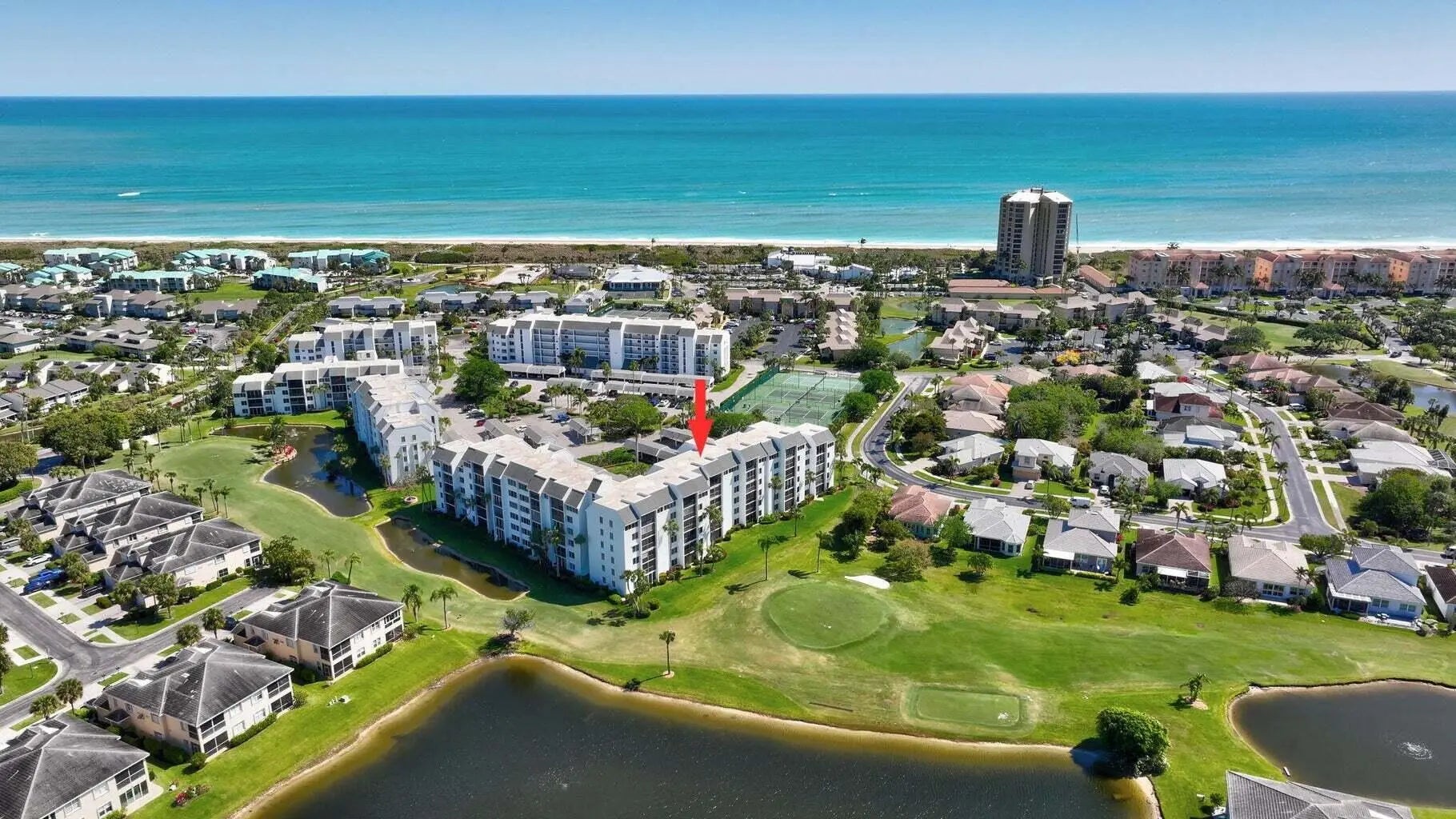 Welcome to Paradise! This 2 bedroom, 2 bath condo has great golf course views with natural abundant light and conveniently located on the ground floor. Ocean Village has tons of amenities including a 9-hole 3 par golf course, beach, tennis, bocce ball, pickleball, shuffleboard, restaurant, tiki bar, pools, new fitness room, new clubhouse and new main pool.