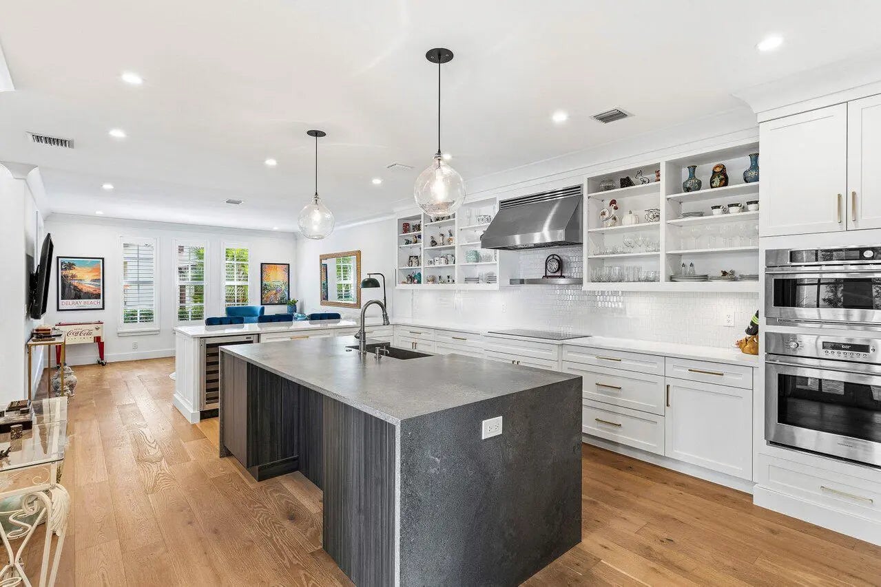 Tucked behind the gates of Old Palm Grove, this newly reimagined residence feels like a private retreat curated with intention and artistry. Step inside and the space unfolds with effortless elegance. White oak floors sweep throughout the main living areas, grounding the interiors in warmth and sophistication. The gourmet kitchen serves as the heart of the home, showcasing generous counter space, custom cabinetry crafted with precision, and a substantial center island designed for gathering, entertaining, and everyday living. Light dances across every surface, creating an atmosphere that is both luminous and inviting. Designer details elevate each room. The primary suite is crowned with a dramatic arched ceiling that adds architectural distinction and quiet grandeur. Thoughtfully designed under-stair built-ins blend beauty and function, while freshly renovated bathrooms and an additional powder room reflect meticulous craftsmanship and a commitment to comfort. Every finish speaks to pride of ownership and uncompromising quality. Practical luxury enhances daily life with full impact windows for security and peace of mind, and a spacious three-car garage offering both convenience and storage. Outdoors, your private sanctuary awaits. The spa-inspired setting features a gorgeous built-in hot tub framed by lush surroundings, creating a tranquil escape for evening relaxation or intimate entertaining under the Florida sky. While vibrant Atlantic Avenue's boutiques, dining, and nightlife are just minutes away and nearby beaches beckon with sun and sea, the sparkling community pool offers yet another tempting oasis close to home. This is more than a renovation. It is a beautifully curated lifestyle in one of Delray's most desirable gated enclaves