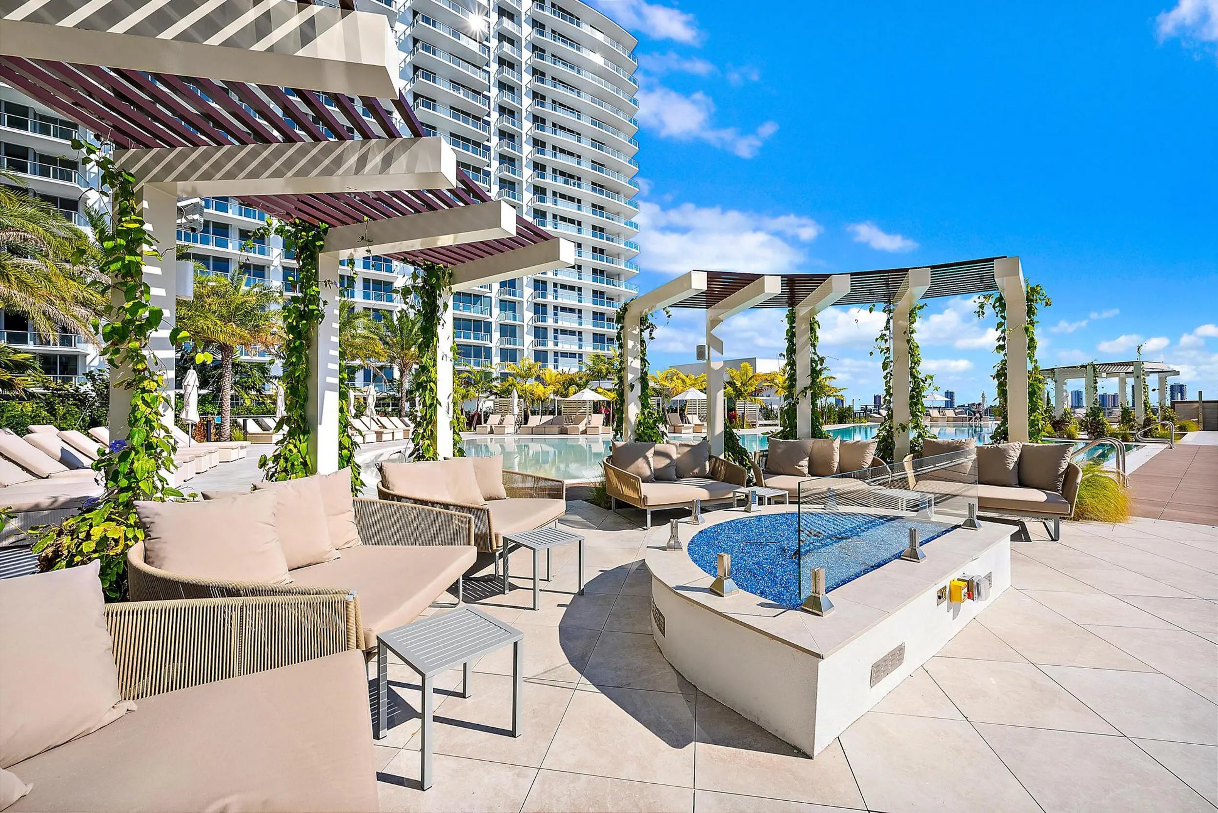 Perched on the 15th floor, this brand-new waterfront residence at Nautilus 220 captures sweeping Atlantic Ocean, Intracoastal, and western sunset views. The 2-bedroom, 2.5-bath layout features 10-foot ceilings, an open-concept design, European porcelain flooring, custom cabinetry, quartz surfaces, and spa-inspired baths. The chef's kitchen showcases Miele appliances and a striking quartz waterfall island, while the south-facing terrace delivers panoramic sunrise-to-sunset vistas over Peanut Island and the resort pool deck. Included are two garage parking spaces (one EV-equipped) and a private storage unit. Nautilus 220 offers a 1-acre amenity deck with pool, spa, firepit lounges, and grill stations, plus a rooftop lap pool, state-of-the-art fitness center, sauna and steam rooms, bowling alley, theater, golf simulator, beach access on Singer Island, concierge services, and waterfront dining by Celebrity Chef David Burke.