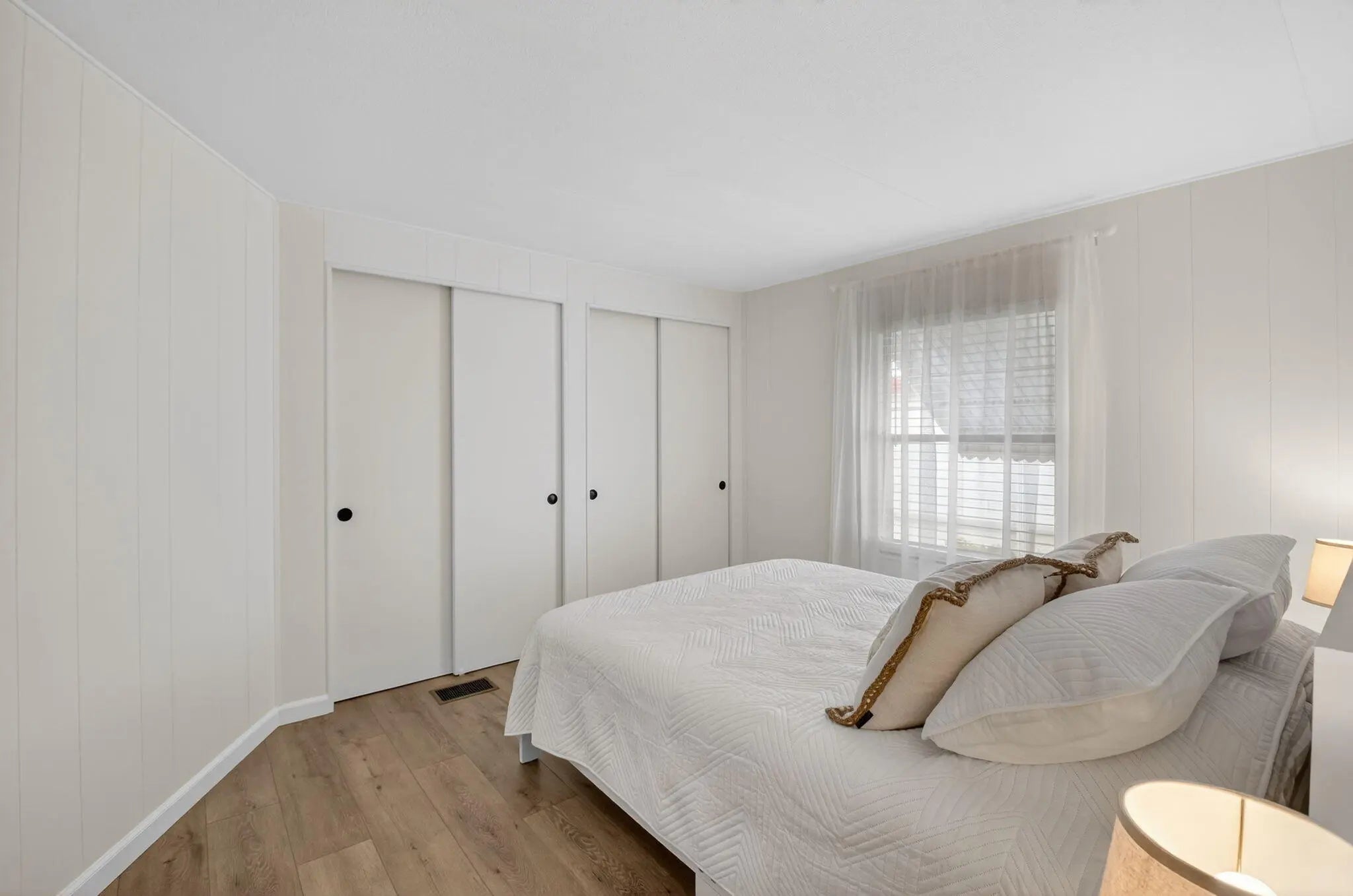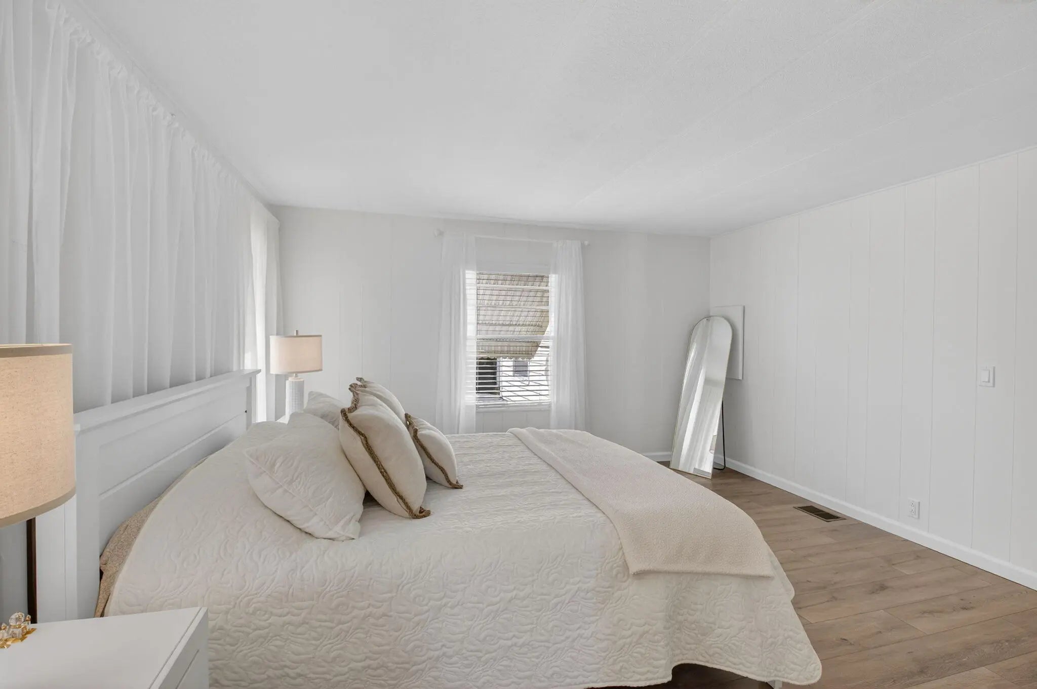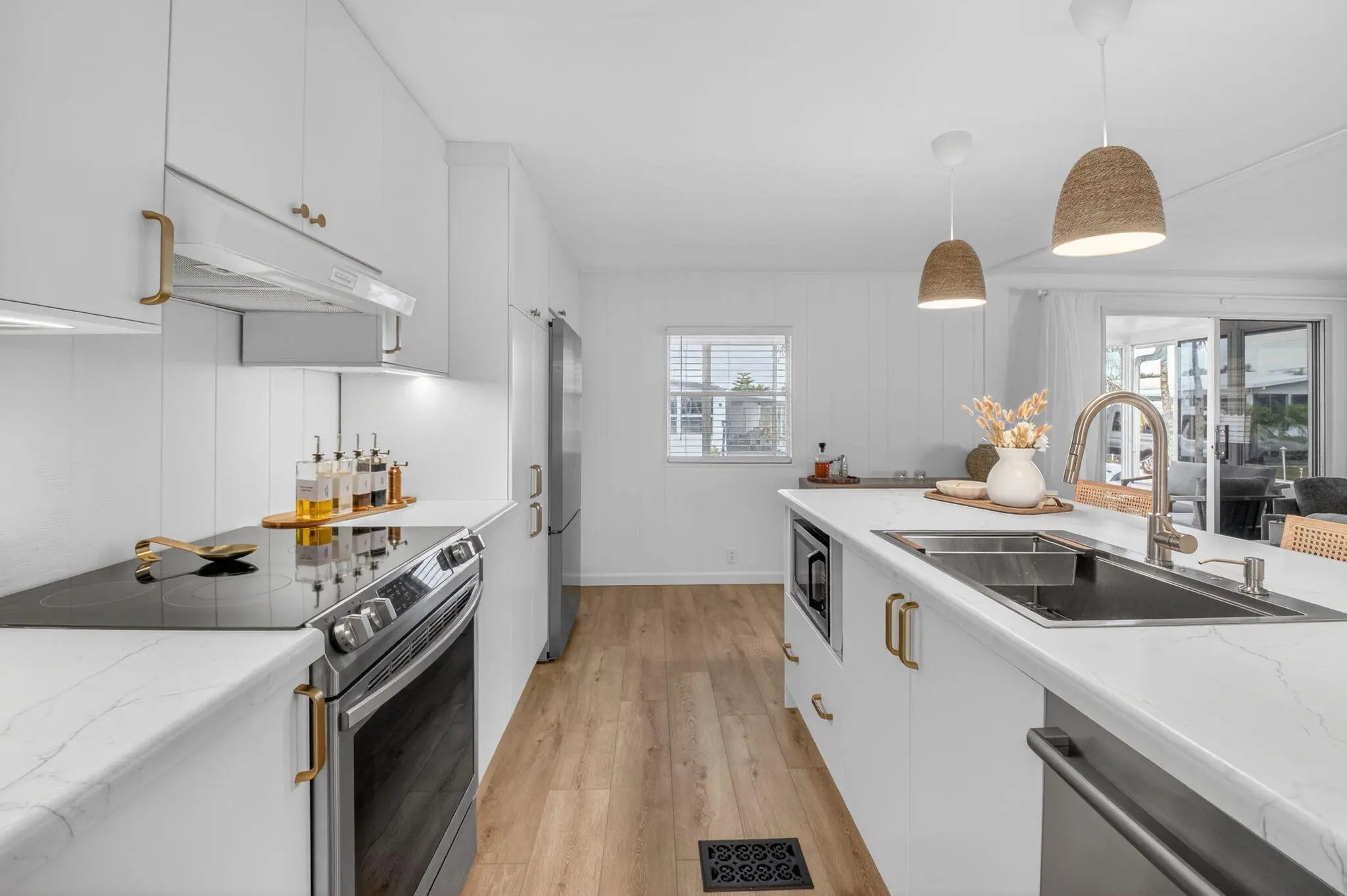 Completely TURNKEY! This beautiful COMPLETELY UPDATED 2/2 is a showstopper! Whole house has luxury laminate flooring throughout. Kitchen has NEW APPLIANCES with a wine fridge. Under cabinet lighting, NEW cabinets and NEW countertops! OPEN concept kitchen with a SPACIOUS island perfect for entertaining! Patio has OVERSIZED glass windows and new flooring! BOTH bathrooms completely remodeled! Home is OPEN, AIRY and shows like a model home! Offered beautifully furnished excluding art and personal items! This one won't last! Jamaica Bay is a desirable 55+ community with multiple heated pools, clubhouse, billiards, shuffleboard, pickleball, library, social activities and a new onsite convenience store! The HOA includes lawn care, water, internet, sewer, trash and 24/7 manned gate