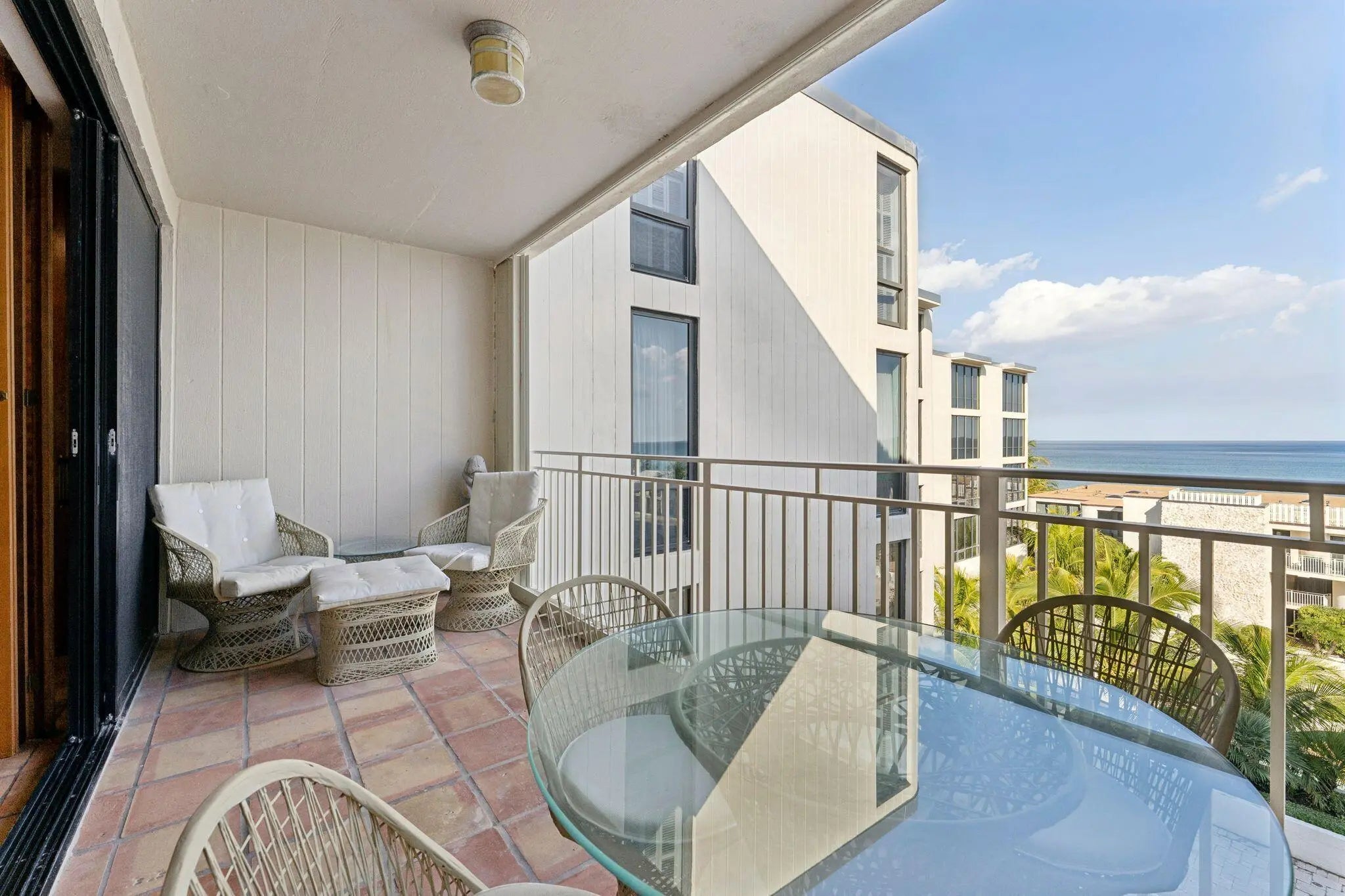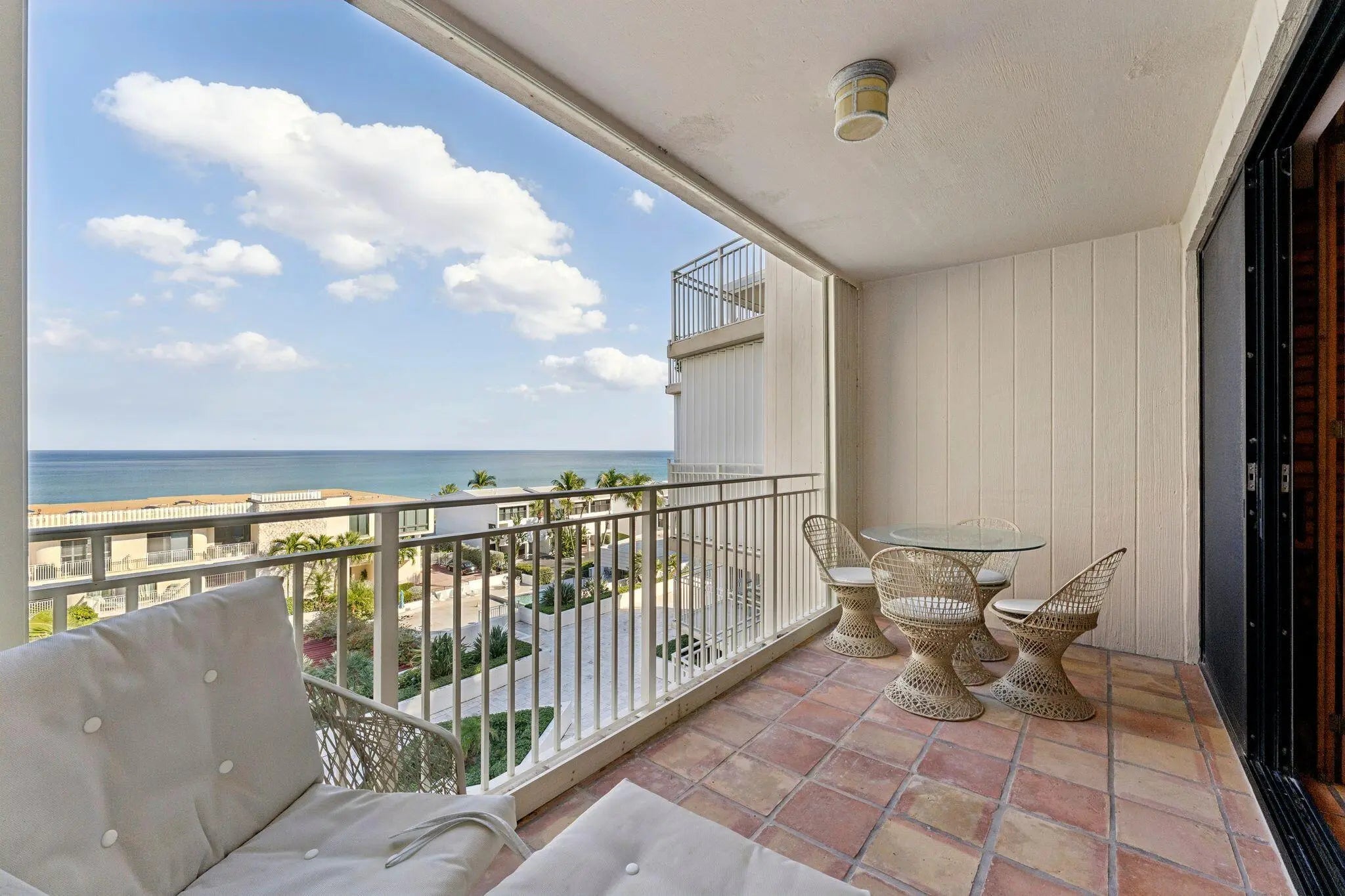 A true beachfront treasure is now available for the very first time, proudly offered by its original owner. This 2-bedroom, 2.5-bath residence is a character-filled coastal retreat with rich textural finishes. Terracotta tile floors, plantation shutters, natural wood accents, and layered living spaces create an inviting atmosphere that feels both timeless and effortlessly relaxed. Lovingly cared for throughout the years, the home is move-in ready while offering the opportunity to personalize over time or renovate now. The residence features two private balconies. An east-facing terrace off the living room captures beautiful ocean views and sunrise skies, seamlessly blending indoor and outdoor living. The spacious primary suite enjoys its own north/northwest-facing balcony with private access from both the bedroom and the primary bath -- creating a serene retreat with natural light and coastal breezes. Ocean Place is an intimate boutique oceanfront community comprised of just 30 residences along one of Delray Beach's most desirable stretches of sand. Residents enjoy private, key-access beach entry, a tranquil courtyard pool and spa, private elevators, assigned gated garaged parking, onsite management, grill area, bike storage, in-unit laundry, and a dedicated storage area in the west building garage. The Association maintains a beach cleaning contract to preserve the shoreline year-round. Leasing allowed right away (4-month minimum, 1x a year). The building allows up to two dogs per residence (maximum 35 lbs at maturity; certain breed restrictions apply), a rare benefit among oceanfront condominiums. Perfectly positioned just minutes from the vibrant dining and nightlife of Atlantic Avenue and conveniently located between Palm Beach International Airport and Fort Lauderdale-Hollywood International Airport, this residence offers effortless access for seasonal or year-round living. Mizner Park and the best of Boca Raton are just a short drive away. Ocean Place is an unassuming development for those looking for a boutique build. With only 30 residences (12 in East building and 18 in west building), dual balconies, ocean views, private beach access, and meticulous ownership history, this is one of East Delray's most exclusive and rarely available opportunities. * Some images have been virtually staged to illustrate the property's potential with coastal-inspired furnishings and light cosmetic updates. Virtual renderings are for illustrative purposes only. *