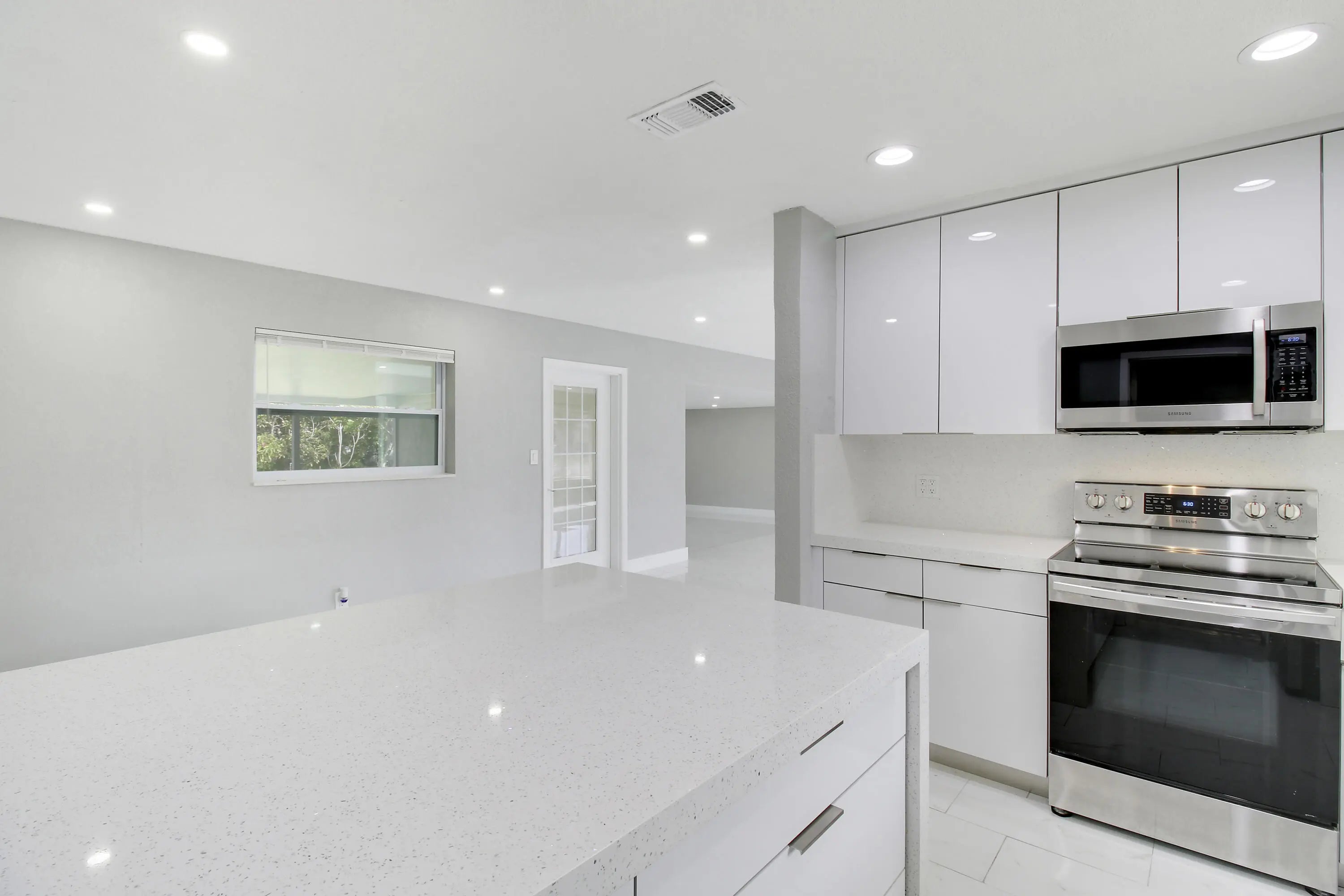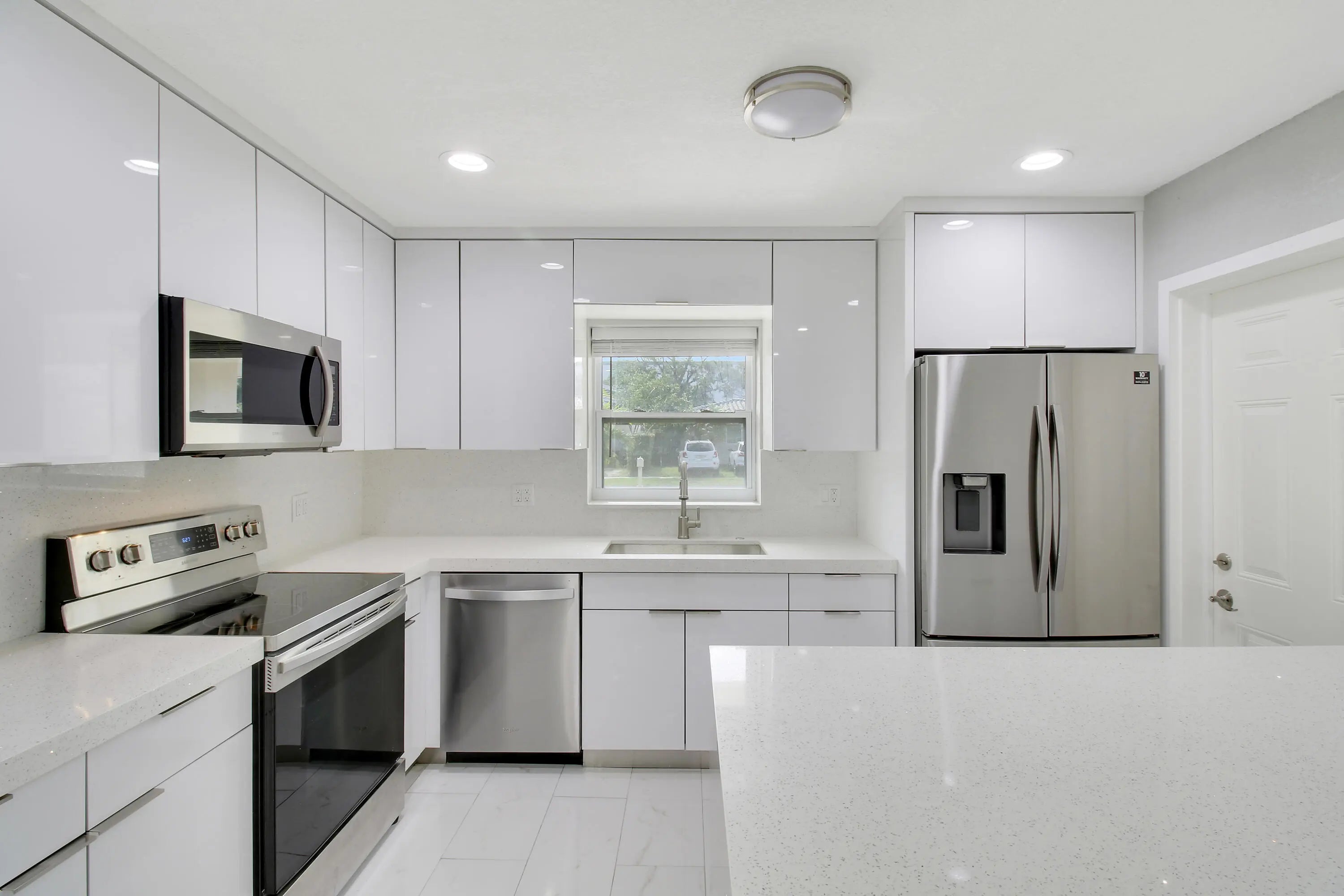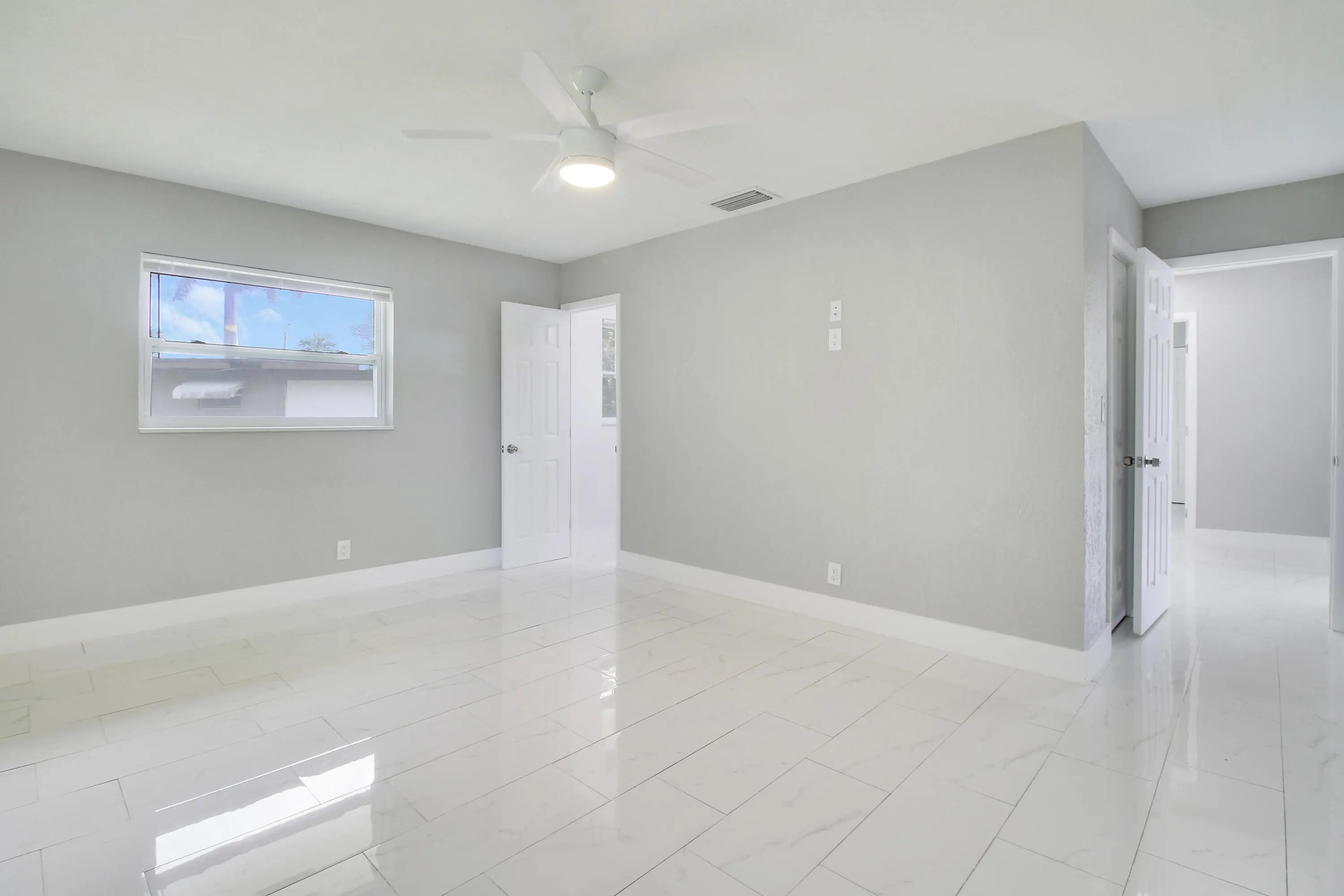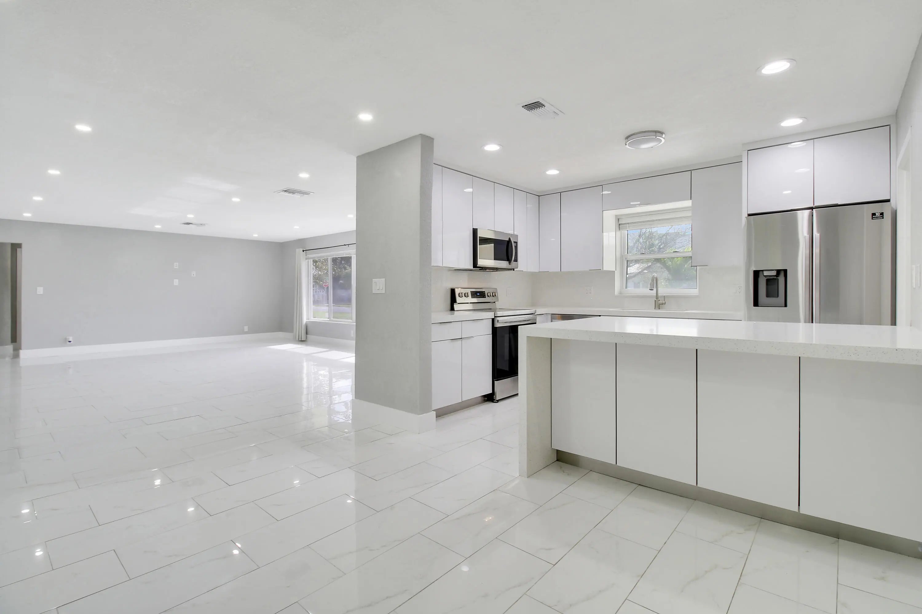 Fully renovated, modern single-family home in the sought-after Mango Gardens. This stunning property boasts a spacious, open living room bathed in natural light, complemented by sleek, fully-tiles flooring throughout. The kitchen is a chef's dream with modern finishes. It features two beautifully renovated bathrooms and a master bedroom iwth a large walk-in closet. Enjoy the outdoors in comfort with a screened patio and a large backyard. Ideal for those seeking a blend of luxury and convenience in a prime location.