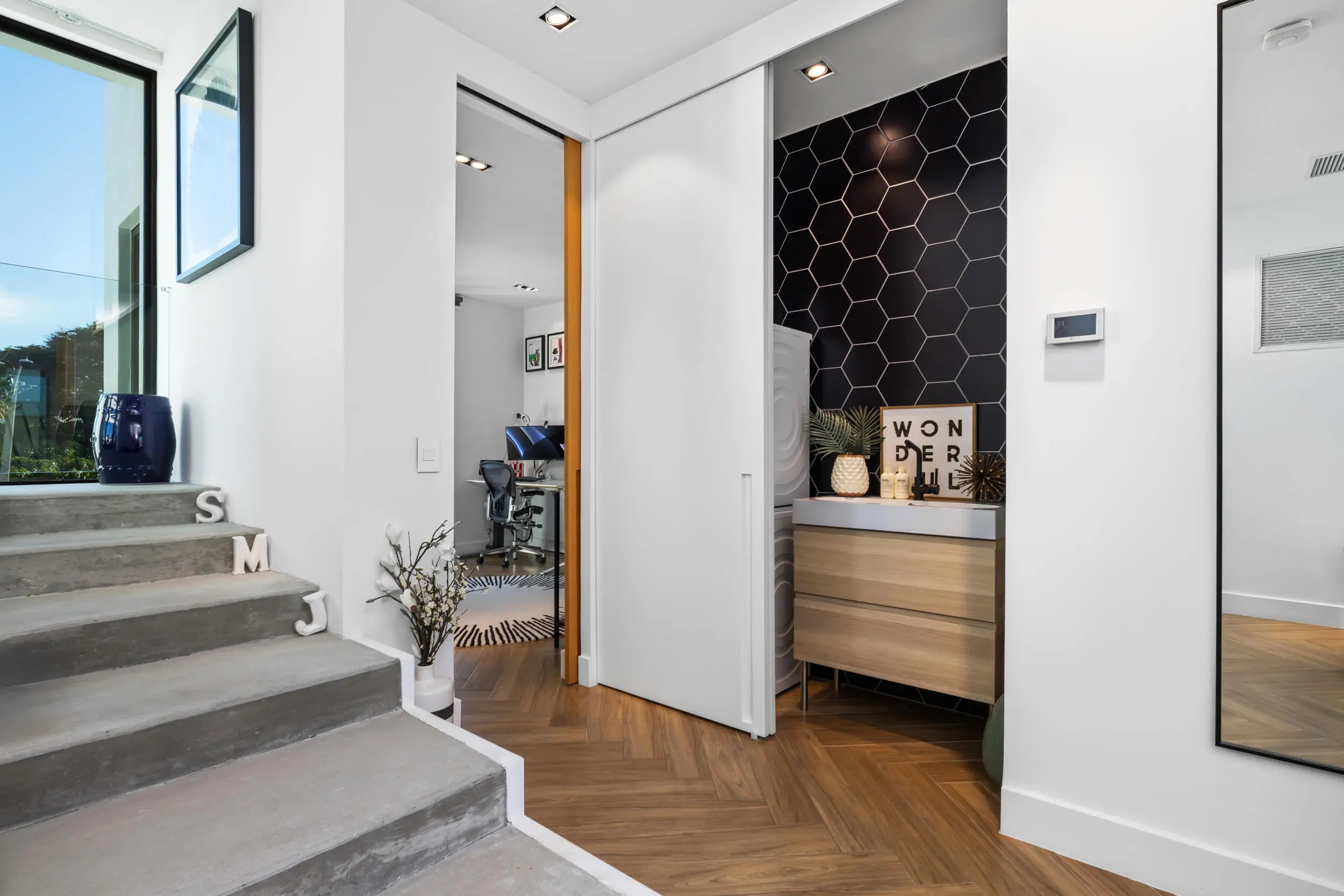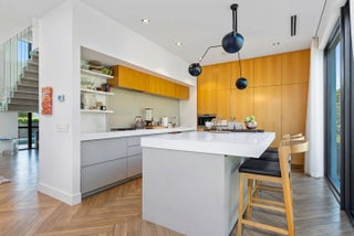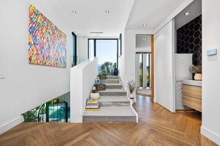 Located on a quiet seaside street in the heart Ocean Ridge just steps from the beach, this architecturally distinctive, newer-built smart home offers the best of refined coastal living. Spanning over 3,000 total square feet across two stories, the residence features four ensuite bedrooms, soaring ceilings, and a thoughtfully designed open layout. Walls of dramatic floor-to-ceiling glass provide for an abundance of natural light and showcase the home's ideal Southern exposure, creating seamless indoor and outdoor living. The chef's kitchen is a true statement, equipped with premium appliances from Gaggenau, Miele, and Wolf, combining sleek European design with professional-grade performance and tons of storage. Step outside to your own private retreat, complete with a sparkling saltwater pool, fully equipped summer kitchen, inviting alfresco dining area, generous green space, and a refreshing outdoor shower--ideal after a morning at the beach. Completed with a rooftop terrace where you can hear the ocean and feel the coastal breeze, this one-of-a-kind modern retreat delivers the ultimate in elevated seaside living. Call for more information or a private showing.