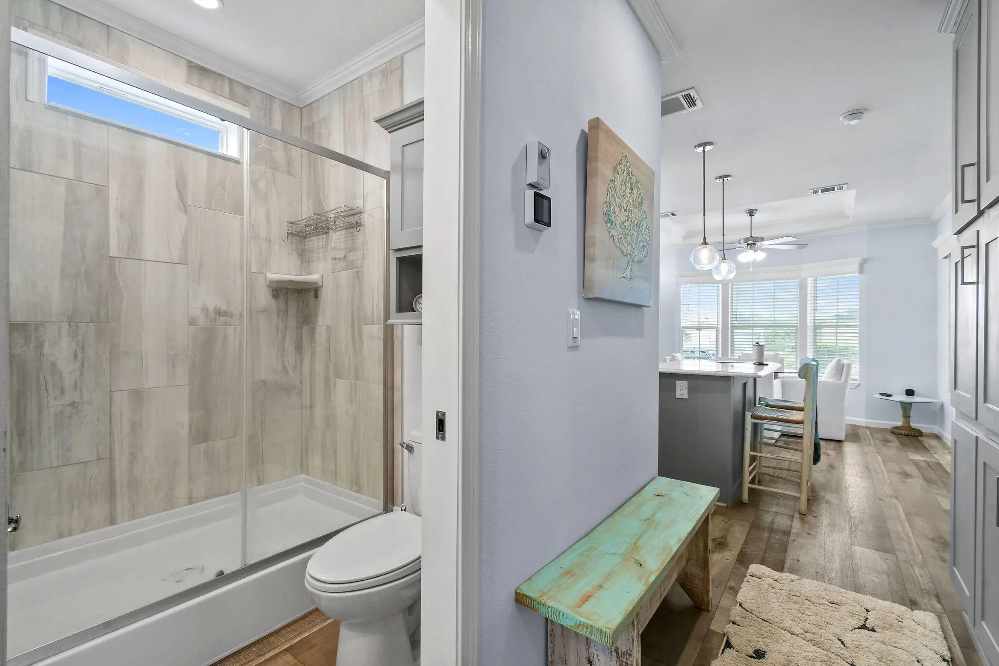 Discover resort-style living close to the shores of Lake Okeechobee at Blue Cypress Golf & RV Resort. Ideally situated along the lake's northeast side, this 55+ and pet friendly community features 248 homes and RV lots. Residents enjoy a 9-hole golf course, vibrant clubhouse, and a sparkling resort pool--heated in winter and cooled in summer--along with pickleball and shuffleboard courts. Multiple tranquil interior lakes provide exceptional freshwater fishing, while the community marina offers complimentary boat docking with access to Lake Okeechobee for qualifying vessels. Renowned for trophy largemouth bass and speckled perch, the lake is a true angler's paradise. FULLY FURNISHED! This FULLY FURNISHED 2022 Skyline Palm Bay Park Model home offers over 3,000 square feet of total space, including approximately 1,100 sqft of air-conditioned living area. The well-appointed kitchen features stainless steel appliances, granite countertops, a center island, and a brand-new Brio water system. The spacious living room overlooks a peaceful lake setting and opens to a 13' x 12' screened patio complete with impact-resistant double doors and a private hot tub. The thoughtfully designed floor plan includes two bedrooms and one-and-a-half baths. The primary suite is enhanced by a premium king-size Tempur-Pedic adjustable mattress (an $8,000 value) and generous built-in storage unit. Additional highlights include a newly installed water softener (2024) with a 10-year warranty, fresh interior paint, vinyl flooring, crown molding, and a full-size washer and dryer. An attached garage provides convenient storage for a golf cart, bicycles, or recreational gear. All information is deemed reliable and subject to errors, omissions and change without notice. All measurements are approximate.