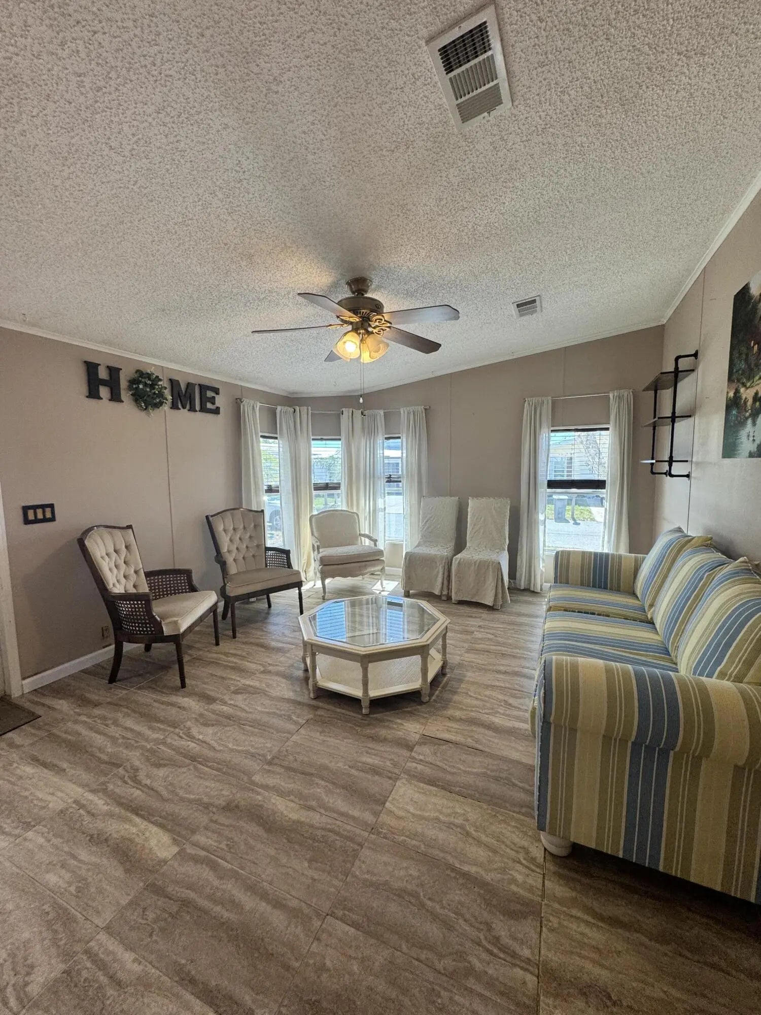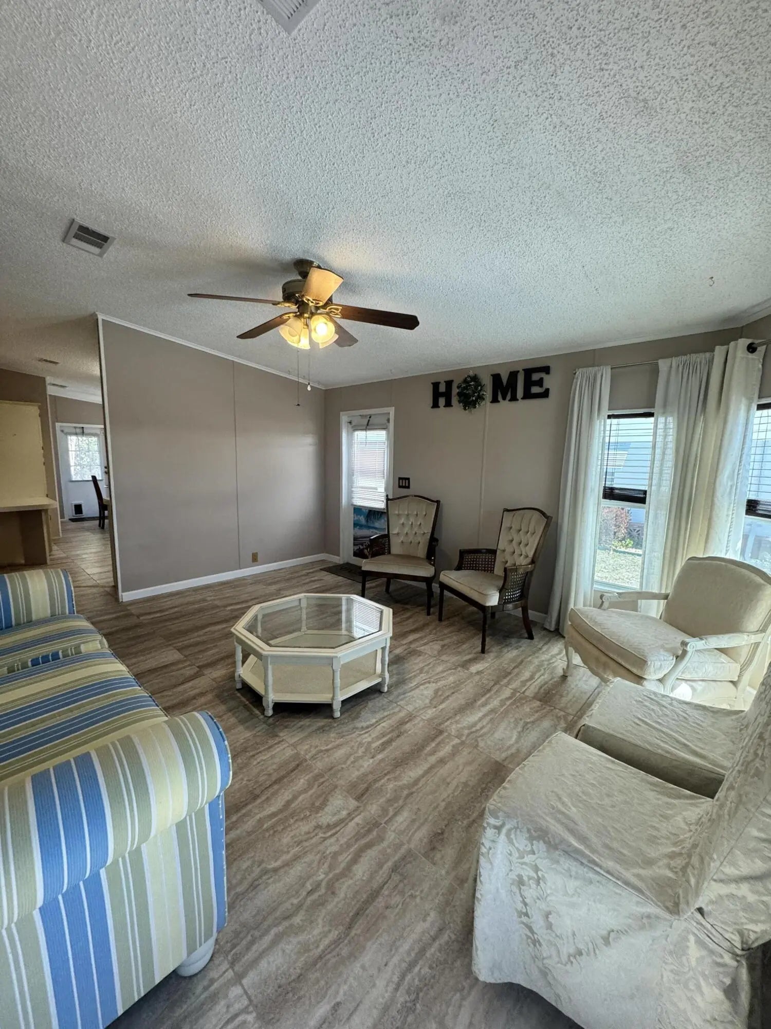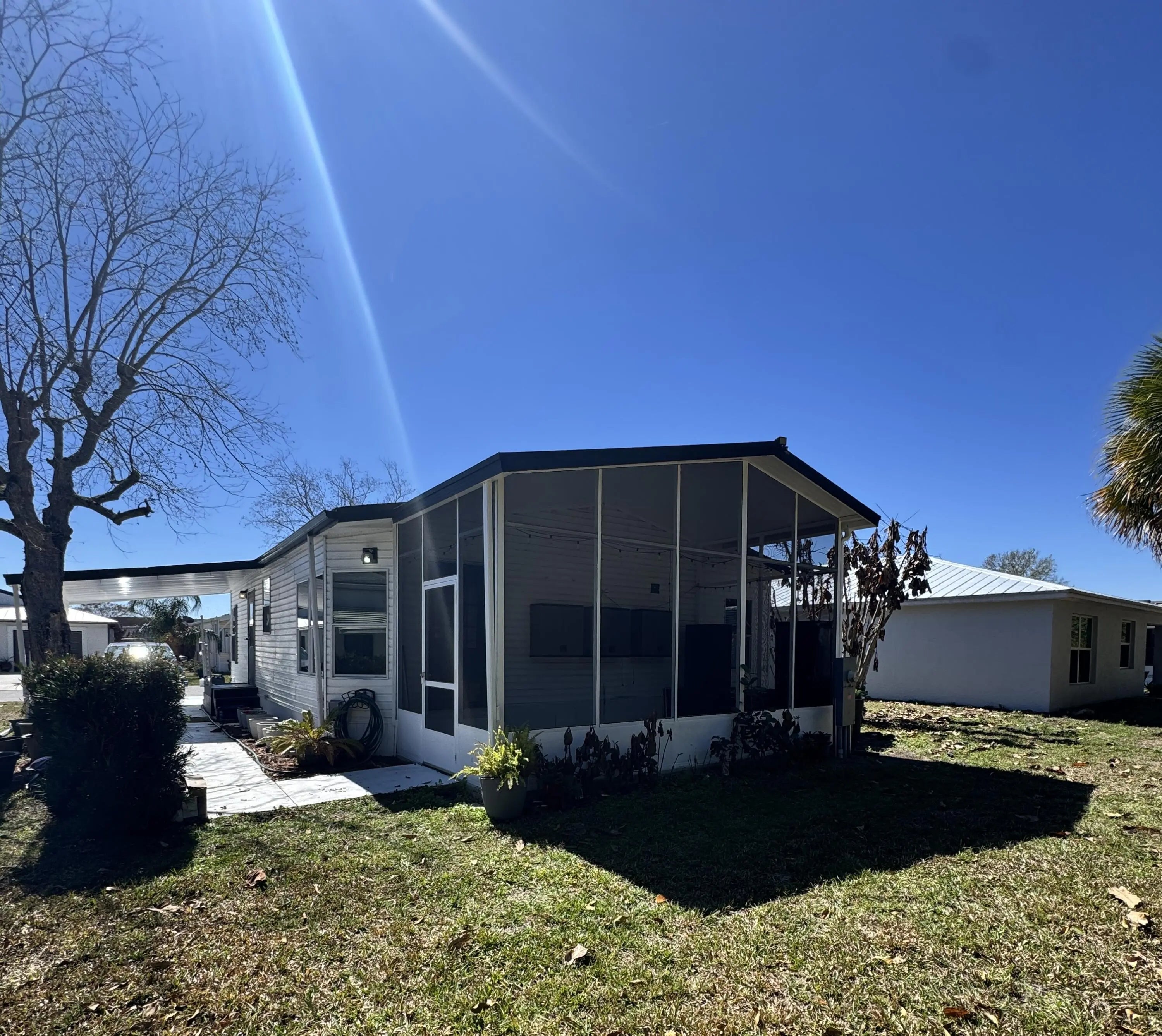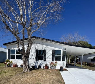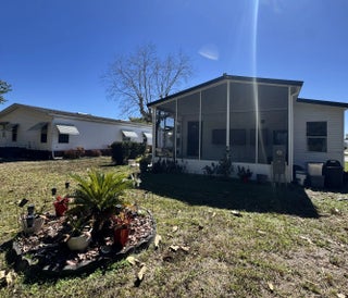 Well-maintained home in the desirable 55-plus community of Spanish Lakes Fairways. Home is at the back of the park with a very private backyard. 2-bedroom 2-bath home. newer laminate floors, no carpet. open kitchen with dinette area. Laundry is in the home. lovely back patio, great for morning coffee or evening cocktails. Lawn care, trash removal, and golf are included in the lot rent. The community includes 2 pools, tennis, pickleball, bocce ball, and shuffleboard. clubhouse and much more. Must See!