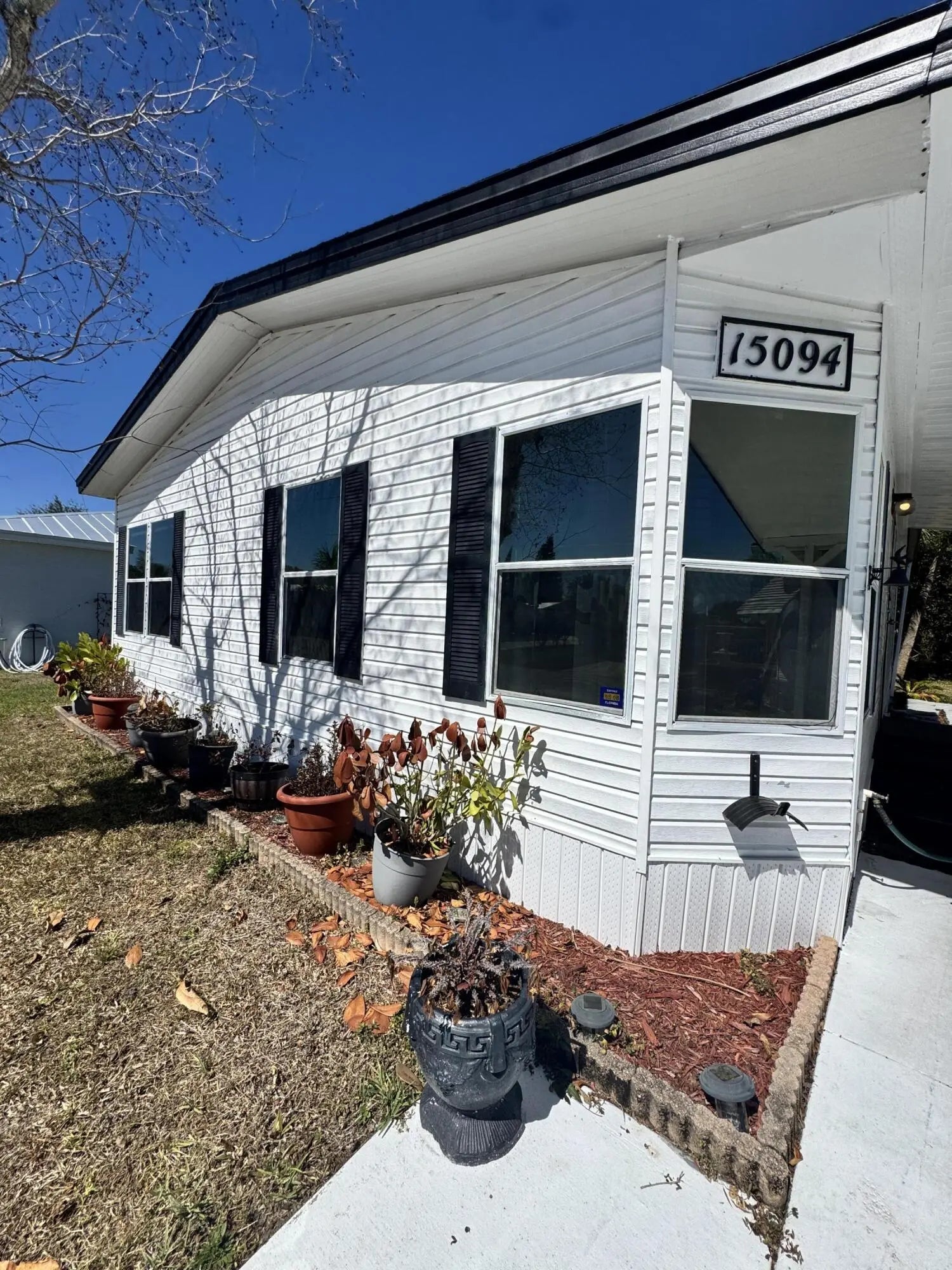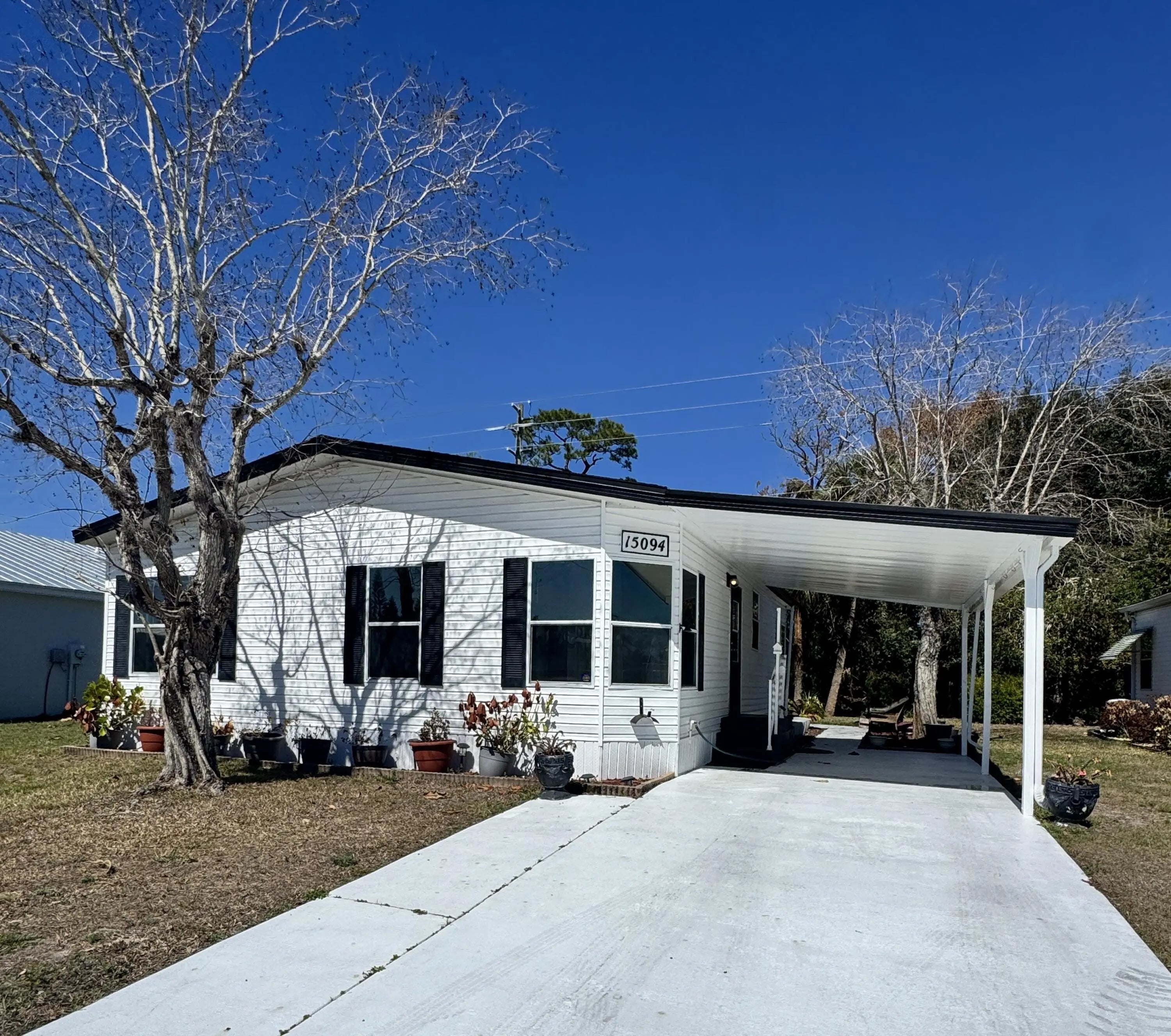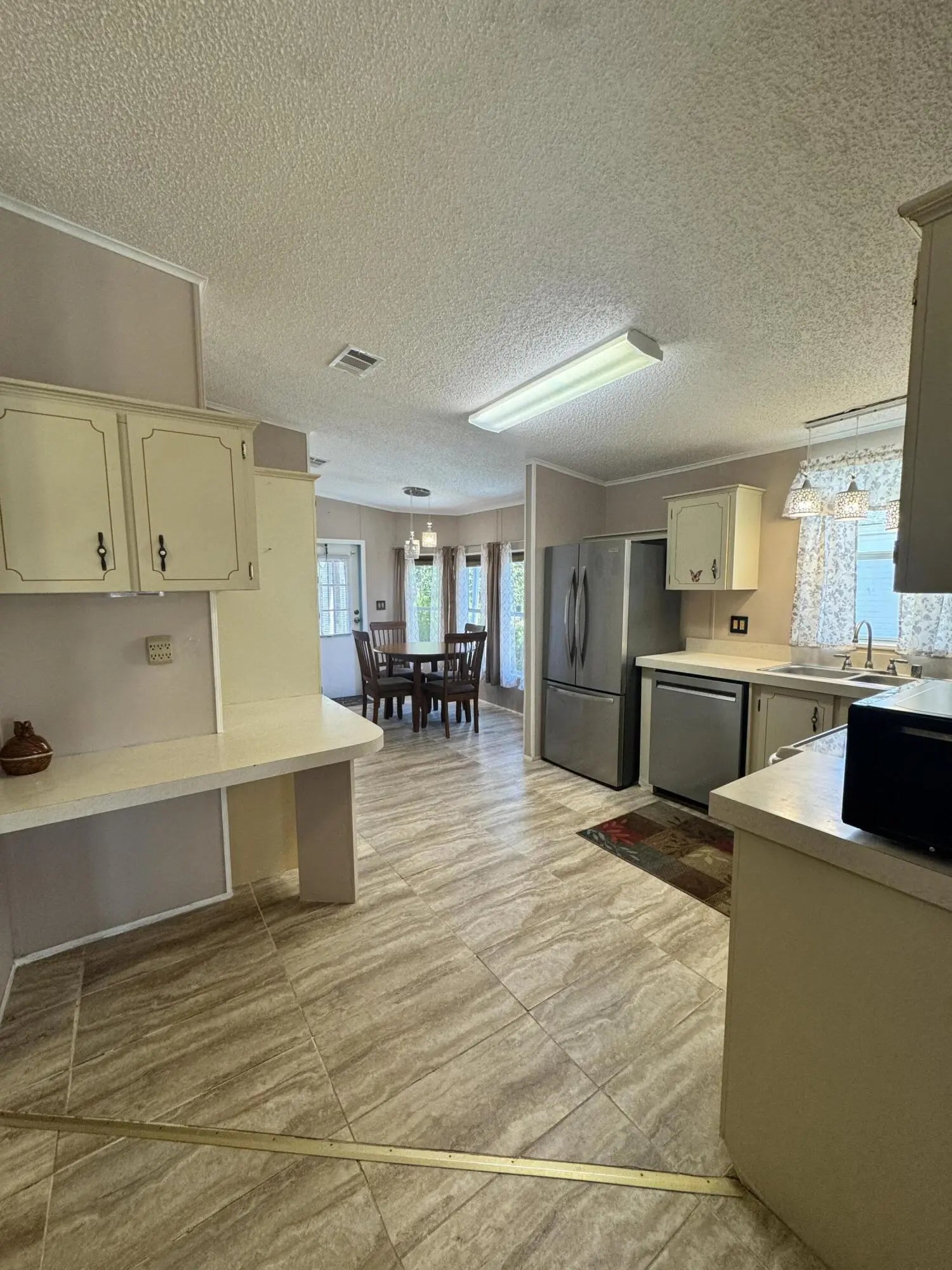 Well-maintained home in the desirable 55-plus community of Spanish Lakes Fairways. Home is at the back of the park with a very private backyard. 2-bedroom 2-bath home. newer laminate floors, no carpet. open kitchen with dinette area. Laundry is in the home. lovely back patio, great for morning coffee or evening cocktails. Lawn care, trash removal, and golf are included in the lot rent. The community includes 2 pools, tennis, pickleball, bocce ball, and shuffleboard. clubhouse and much more. Must See!