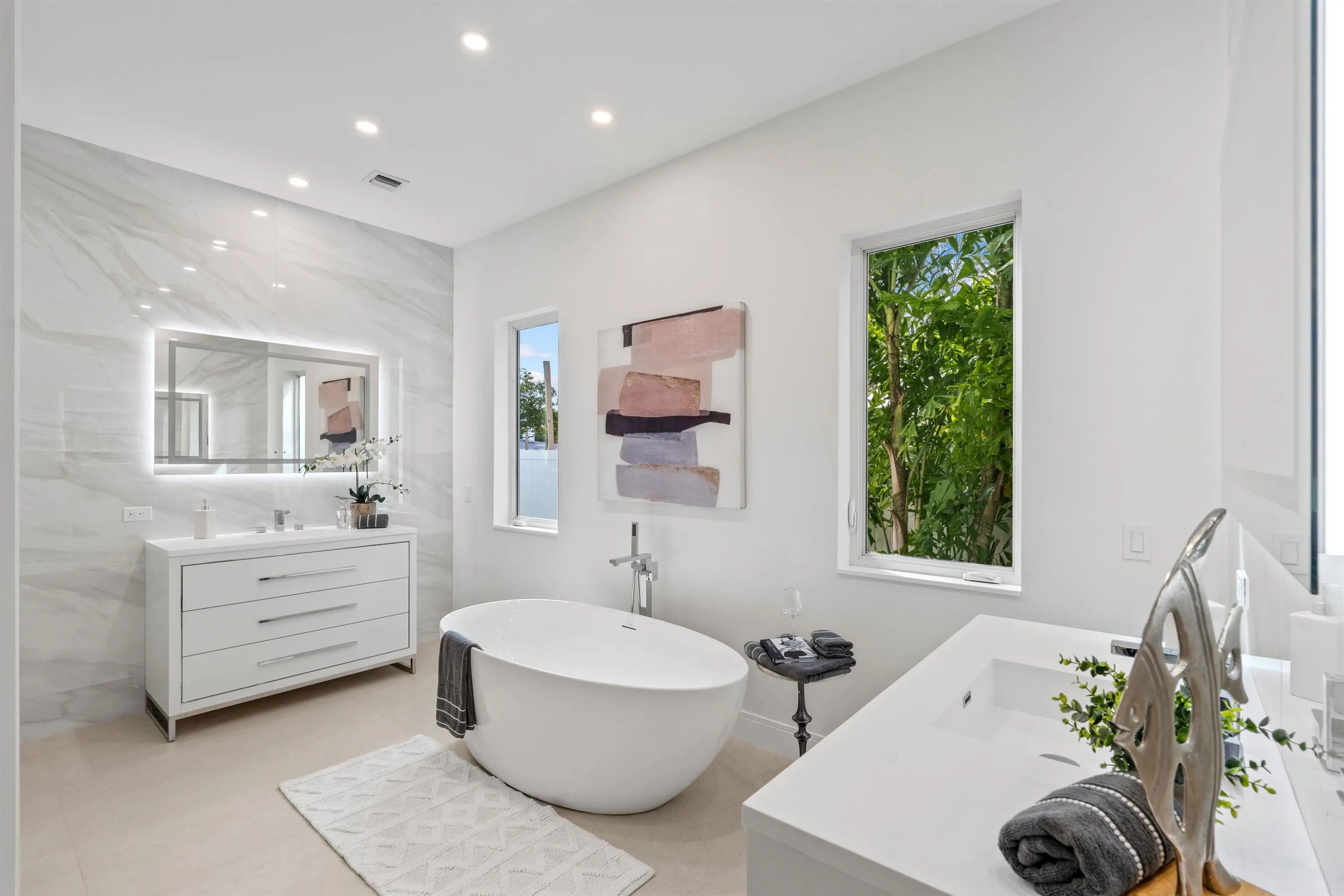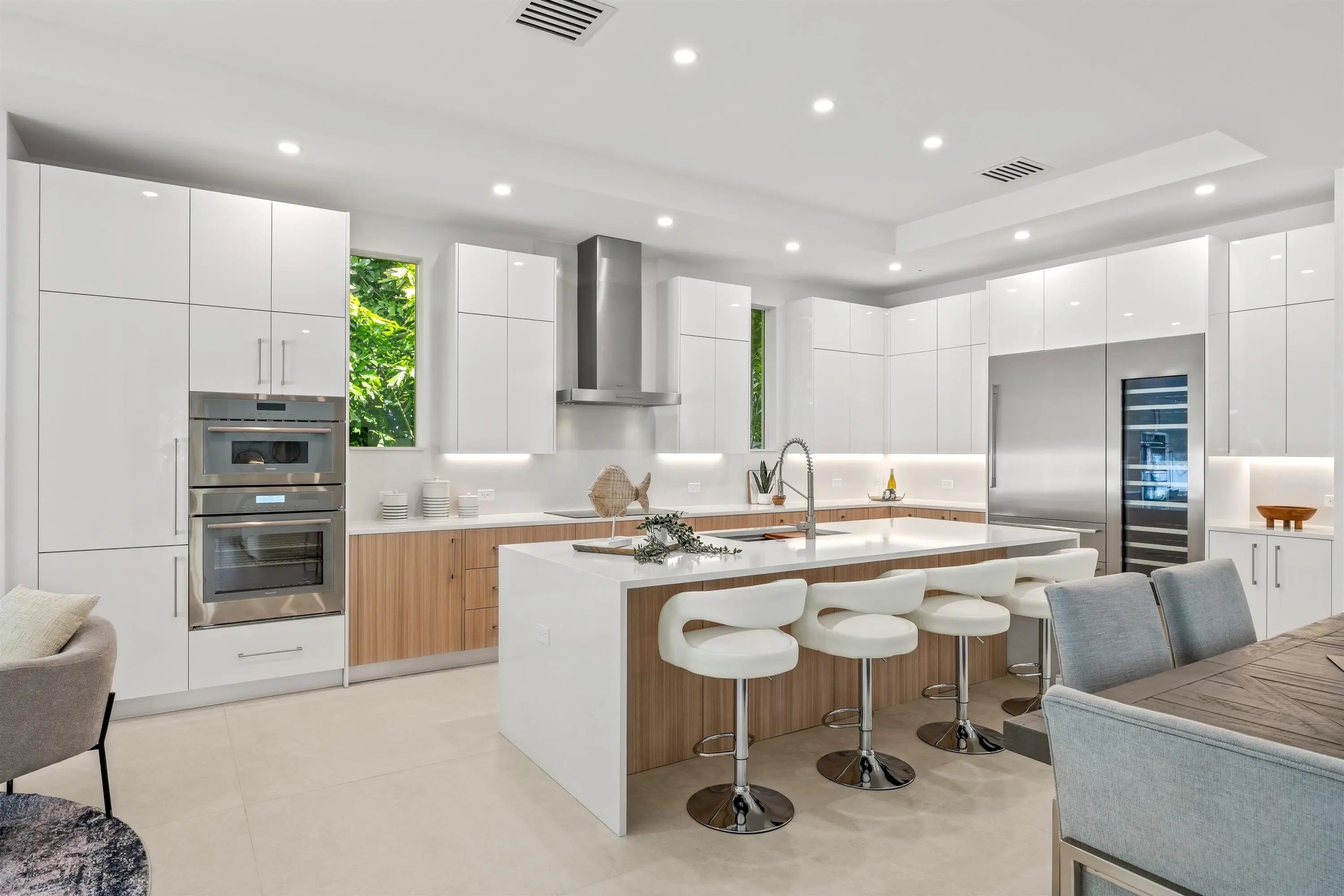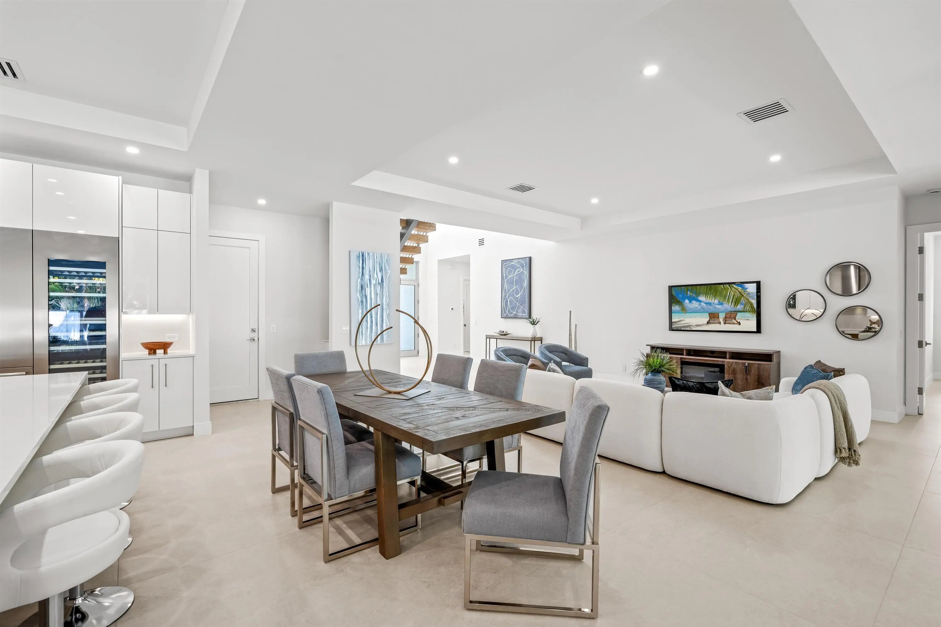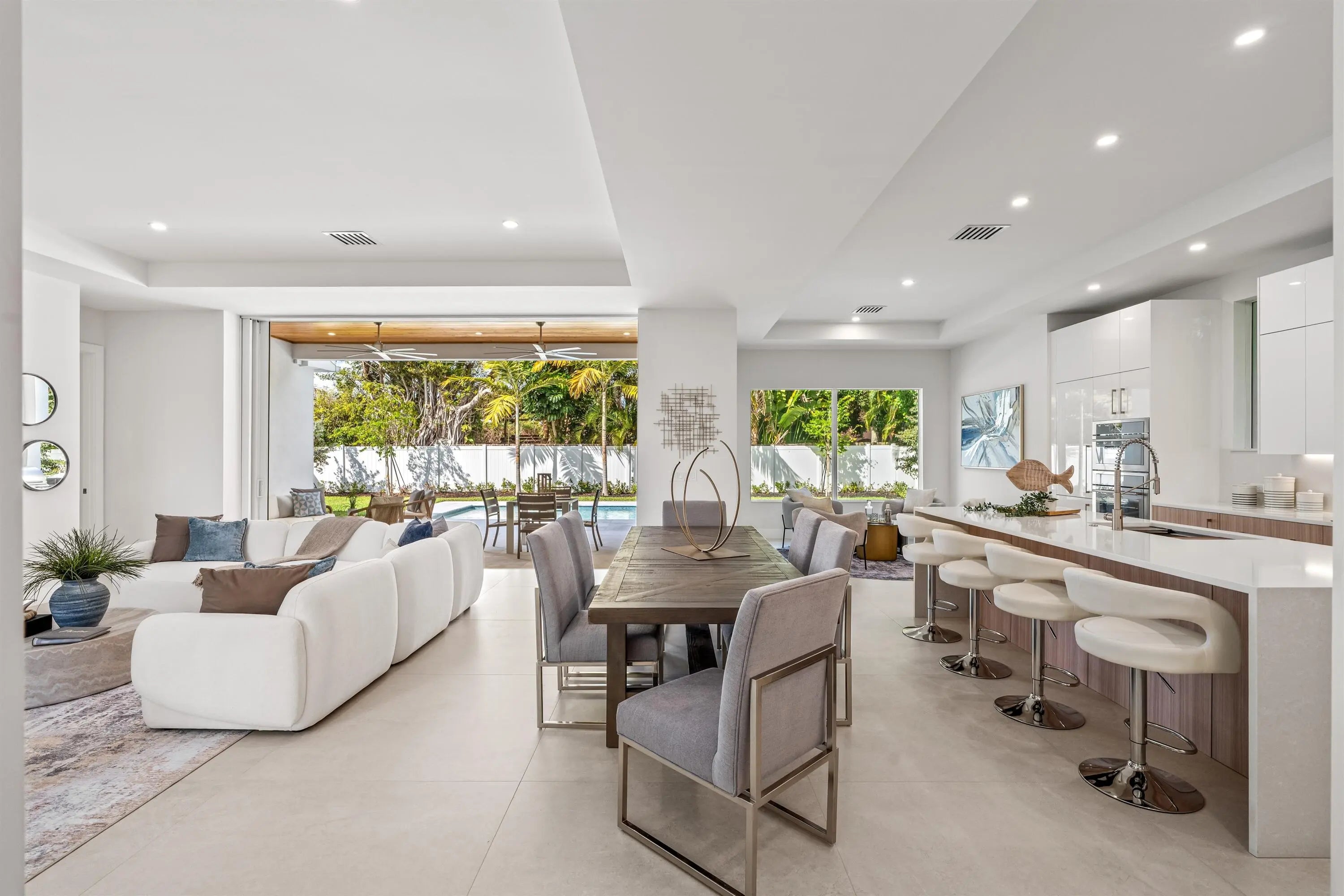Introducing this, just recently completed, brand-new soft modern home in the coveted Lake Ida neighborhood. Showcasing a streamlined facade complemented by wood-look tile, this five-bedroom residence, with 3673± square feet of thoughtfully designed living space, leaves nothing to be desired. This layout has it all: a first-floor primary suite, a first-floor guest bedroom with adjacent full bathroom, 1st and 2nd floor laundry areas, large format porcelain tile flooring, white-framed impact-glass windows and doors, and an upstairs living area, just to highlight a few. As you cross the threshold into this spectacular foyer, the soaring 21-foot-high ceiling and graceful floating staircase immediately impress. The elegant living room flows out onto the loggia and pool area through pocketing sliding doors, blending interior and exterior spaces. Designed for effortless living with an open-concept layout, the dining room is just adjacent to the living room with an additional, cozy sitting room perfect for morning coffee or nightly entertaining just off the kitchen. An epicurean's dream, the kitchen features top-of-the-line Thermador appliances, including a wine cooler, an oversized cook-island with a sink and warm, wood cabinets contrasted by clean white uppers. The primary suite, with a back-lit, coved ceiling, lives like an oasis of serenity with sliding glass doors that open to the pool patio. The suite includes two walk-in closets with custom built-ins and a luxurious bathroom with separate vanities and illuminated mirrors, glass-enclosed two-person shower with dual shower heads, separate soaking tub and separate toilet room. Staged as an office, the first-floor guest bedroom comprises a large closet and is adjoined by a full bathroom in the hallway. Upstairs, the loft overlooks the foyer and features sliders that open to a large balcony over the loggia. Also on the second floor are three ensuite bedrooms, one of which includes a balcony offering views to the front garden and a custom-fitted walk-in closet. Completing this residence is a laundry room with Samsung appliances and custom cabinetry that includes a hanging rack, as well as an attached two-car garage with an impact door. Don't miss this rare opportunity to enjoy a brand-new, coastal contemporary, five-bedroom residence with many amenities in the highly desirable Lake Ida, Delray Beach neighborhood! LOCATION: 417 Lake Drive, Delray Beach, Florida: Lush green parklands and scenic picnic areas are only part of Lake Ida's appeal. This coveted neighborhood also enjoys easy access to canoeing, kayaking, freshwater fishing; the highly acclaimed Delray Beach Playhouse; Delray Beach's historic downtown district, with an array of boutiques and bistros along vibrant Atlantic Avenue; and pristine Atlantic Ocean beaches just minutes away. PROPERTY: At this modern masterpiece on a tropically landscaped parcel shaded by mature trees, enjoy outdoor living on the pool loggia with a summer kitchen, fitted with a BBQ, sink, refrigerator and pull-out bin. Ideal for South Florida's sun-and-sea days, return from the beach, rinse off under the outdoor shower, then lounge and relax by the saltwater pool before preparing an impromptu feast in the summer kitchen while dining under the stars. DISCLAIMER: Information published or otherwise provided by the listing company and its representatives including but not limited to prices, measurements, square footages, lot sizes, calculations, statistics, and videos are deemed reliable but are not guaranteed and are subject to errors, omissions or changes without notice. All such information should be independently verified by any prospective purchaser or seller. Parties should perform their own due diligence to verify such information prior to a sale or listing. Listing company expressly disclaims any warranty or representation regarding such information. Prices published are either list price, sold price, and/or last asking price. The listing company participates in the Multiple Listing Service and IDX. The properties published as listed and sold are not necessarily exclusive to listing company and may be listed or have sold with other members of the Multiple Listing Service. Transactions where listing company represented both buyers and sellers are calculated as two sales. "No payments made until title passes" Some affiliations may not be applicable to certain geographic areas. If your property is currently listed with another broker, please disregard any solicitation for services. Information published or otherwise provided by seller, listing company or its representatives is deemed reliable but are not guaranteed and subject to errors, omissions, or changes without notice. Copyright 2026 by the listing company. All Rights Reserved.