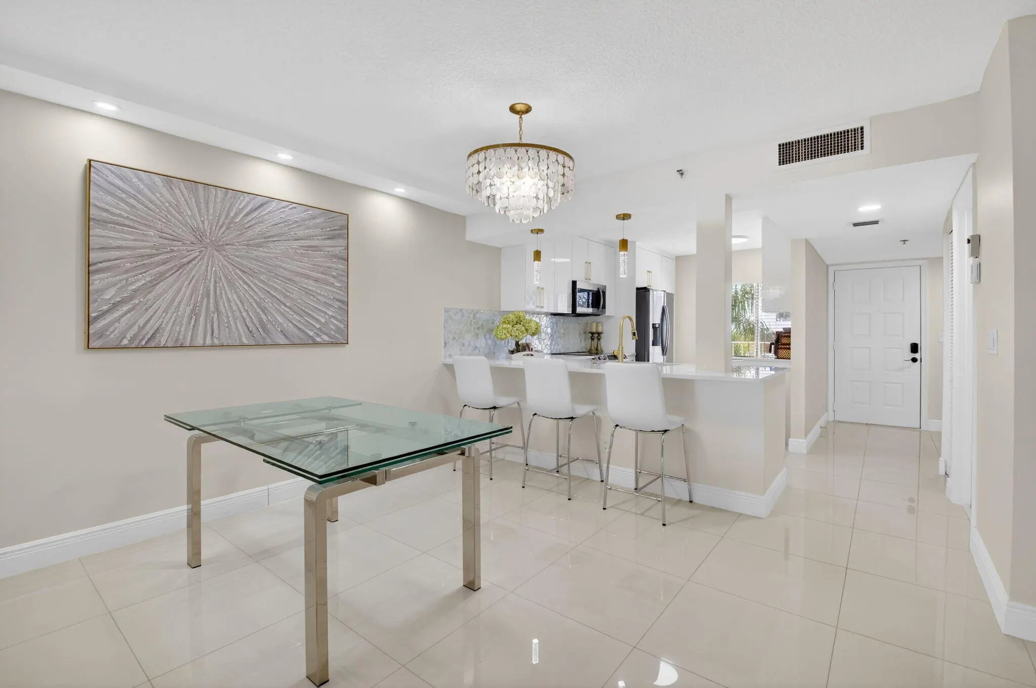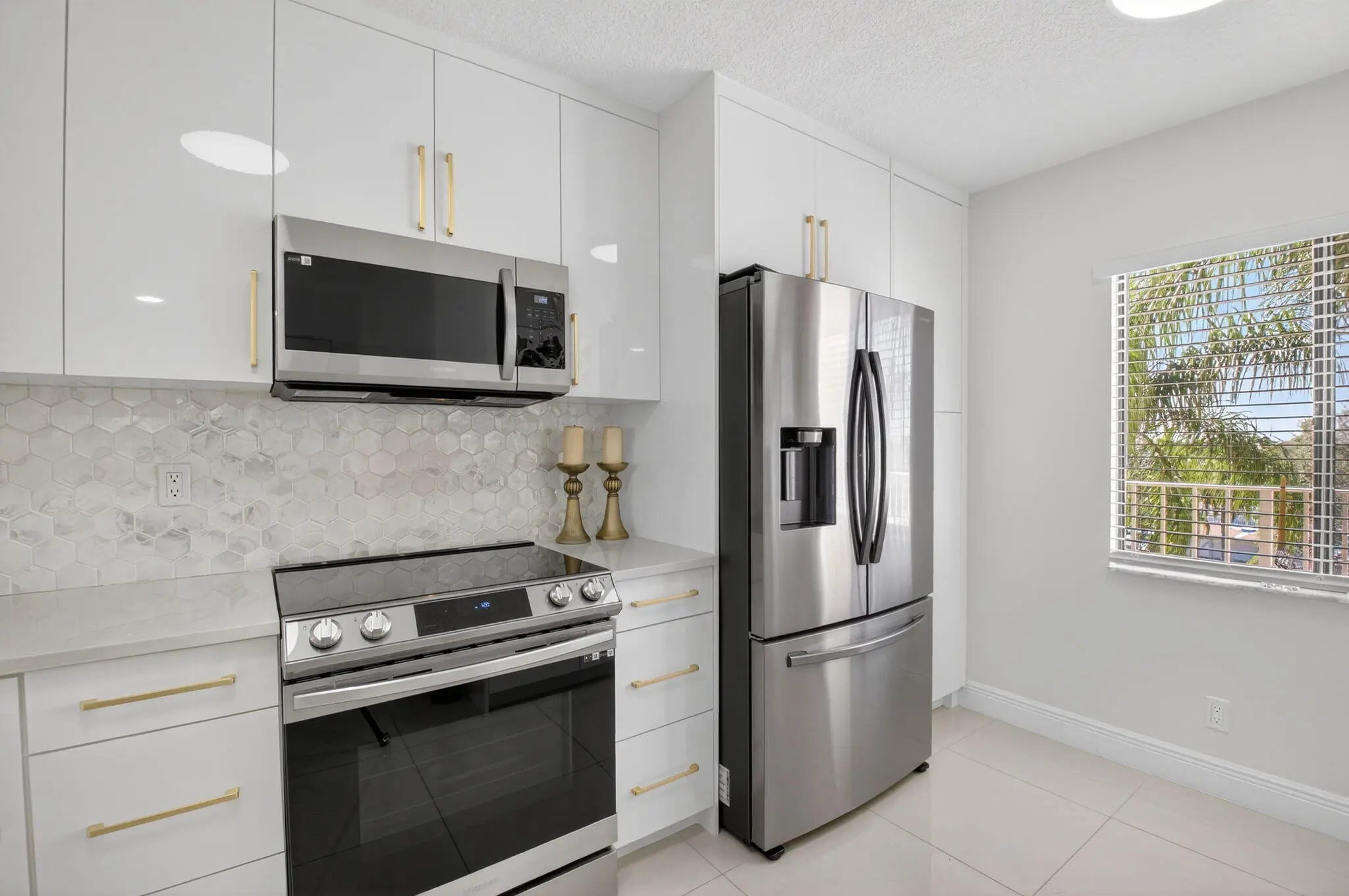 MUST SEE BEAUTIFULLY UPDATED GEORGEOUS SPACIOUS 2BR/2BATH CONDO WITH LAKEVIEW FROM SCREENED IN LANAI, PRISTINE LIGHT AND AIRY IN THE 55 + VERY DESIREABLE HUNTINGTON LAKES COMMUNITY IN DELRAY BEACH! HIGHEND UPDATES INCLUDE NEUTRAL PORCELAIN FLOORING, QUARTZ COUNTERS W GOLD VEIN DETAIL! OPEN KITCHEN WHITE GLOSS CABINETS AND GOLD BRUSHED HARDWARE! SPA INSPIRED BATHROOMS BOAST THE SAME QUARTZ COUNTER VANITIES AND GOLD HARDWARE, ELEGANT PORCELAIN FRAMELESS SHOWERS! NEWER APPLIANCES, AC-2023/WH-2002, 2 BIG WALK IN CLOSETS, GUARD GATED, 50,000 SQ FT NEWLY RENOVATED CLUBHOUSE WITH 600 SEAT THEATRE! INDOOR AND OUTDOOR pools, fitness center, tennis, pickleball, billiard room, state of art fitness center, card and computer rooms, bocce,barbecues minutes from shopping, dining, and downtown Delray ALL FURNISHINGS NEGOTIABLE WITH REASONABLE OFFER INCLUDING FLOATING FIREPLACE AS WELL AS SOME WALL ART. PROFESSIONAL PHOTOS TO BE READY AND UP ON MLS ON 2/25/26