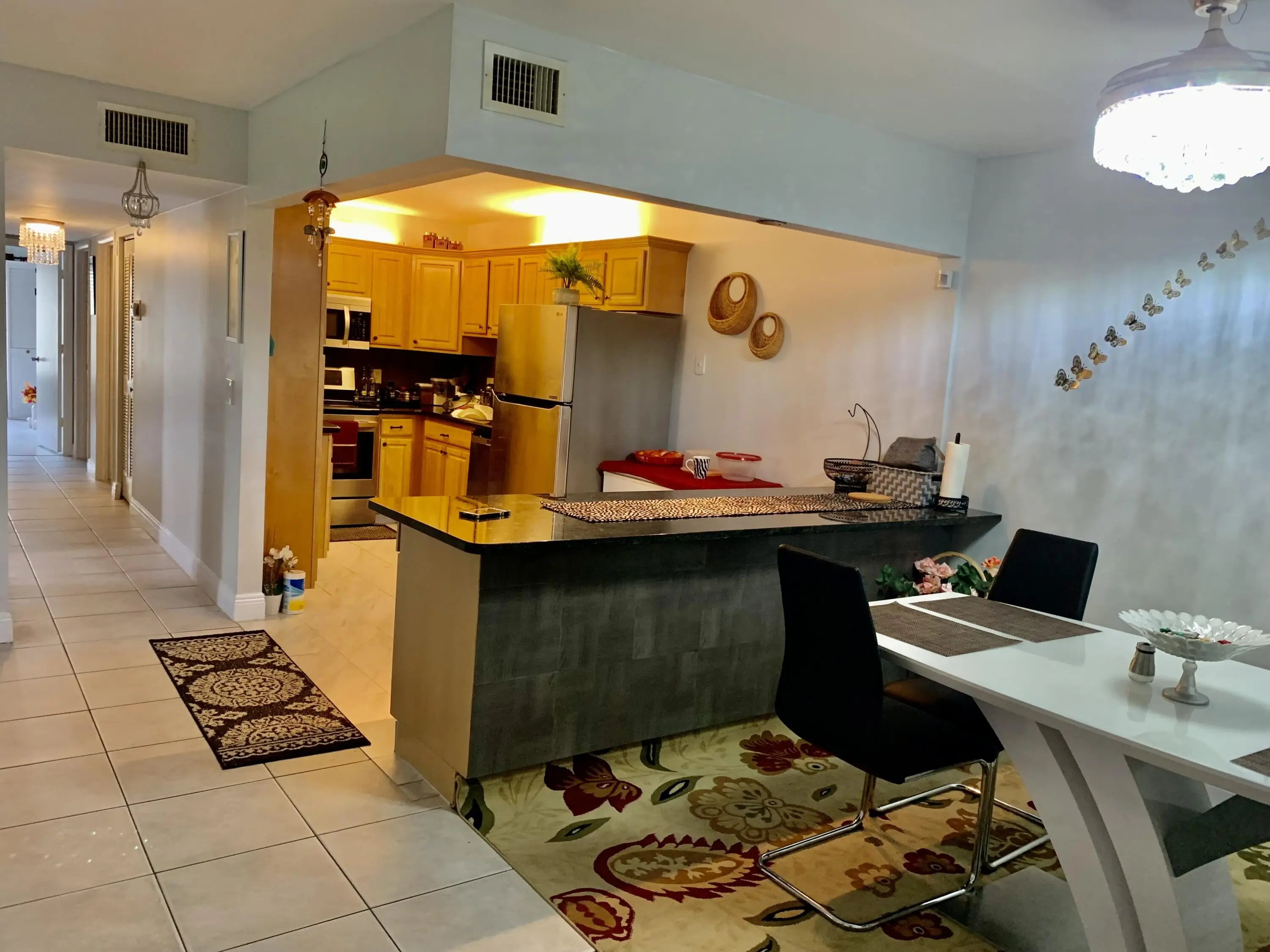 Experience elevated living in this beautifully renovated 3-bedroom, 2-bathroom condo with lake views. Designed with elegance and comfort in mind, this residence features accordion shutters, a custom statement chandelier, and a modern LED ceiling fan, complemented by a sophisticated color palette throughout. The fully updated kitchen is both stylish and functional perfect for everyday living and entertaining. Elegant tile flooring spans the entire unit, adding a clean, contemporary feel. Enjoy the convenience of a walk-in laundry room with a new washer and dryer, and water is included in the rent. Located in the desirable Palm Club all ages community, this condo offers an unbeatable location just minutes from the beaches, Palm Beach Outlets, City Place, Gardens Mall, the Ballpark