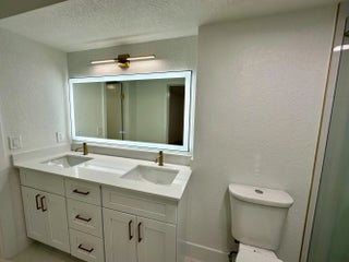 Completely remodeled, move in ready condo within walking distance to Whole Food, dining and shopping! This beautifully updated unit features brand new kitchen with shaker cabinets, quartz countertops, stainless steel appliances, gold hardware, and large single basin sink. All new recessed lighting and flooring throughout to create a bright, modern feel. The bathrooms have been fully renovated with designer tile, glass enclosed shower, upgraded fixtures, and LED backlit mirrors. New interior doors, impact sliding glass door. Enjoy beautiful water views from your screened balcony, offering privacy and natural light. Turnkey condition in a prime location, ideal for primary residence, seasonal use, or investment.