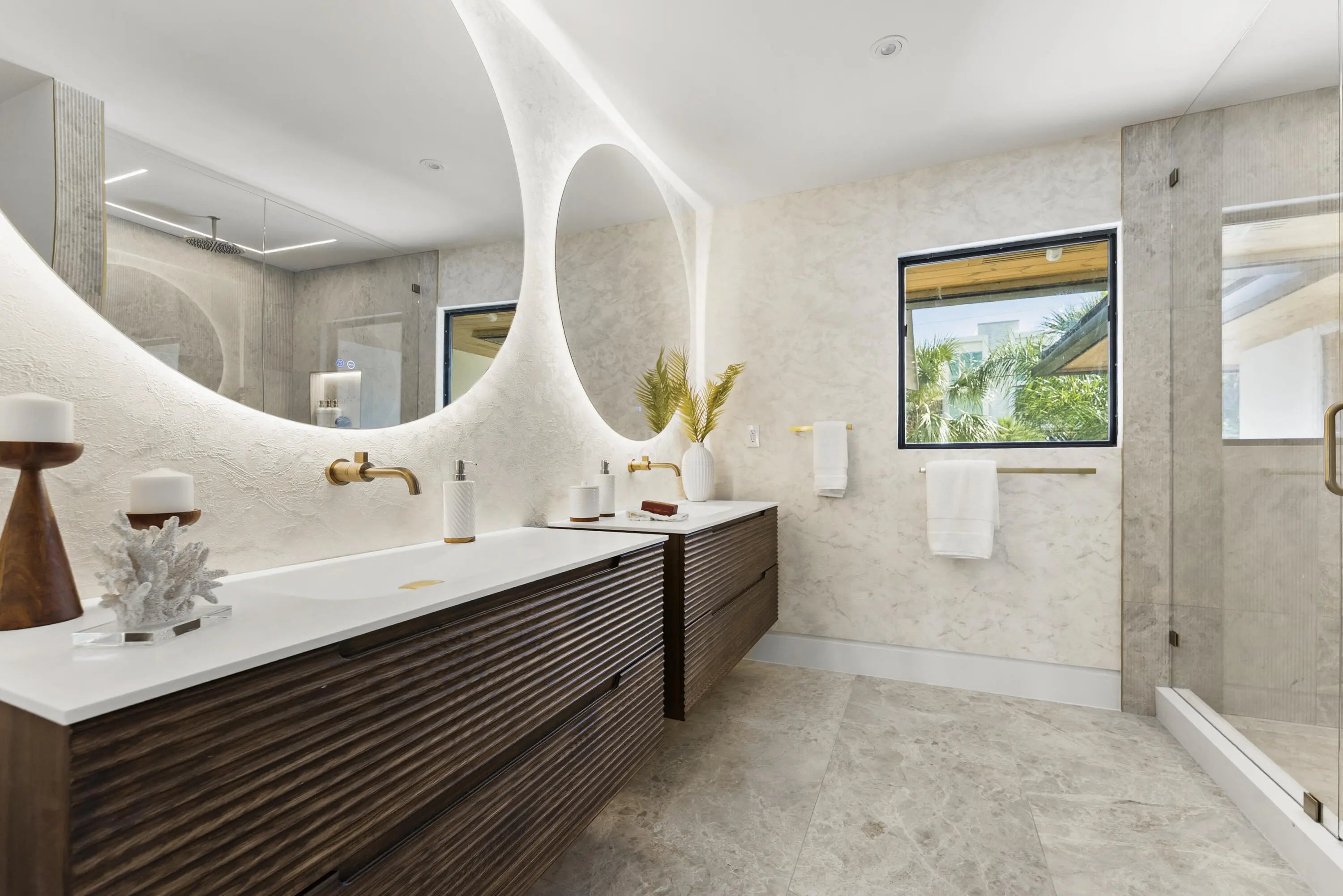 A showstopper from top to bottom! This 5-star renovation is the epitome of modern luxury, featuring exquisite wood floors, sleek custom cabinetry, and solid wood hinge-less doors that make a bold statement. The Thermador appliances and wood-paneled walls bring both sophistication and warmth, while the brand-new AC, custom lighting, and expertly tiled baths showcase impeccable attention to detail. Professionally wallpapered accents add a touch of elegance throughout. With a spacious 2-car garage and just a short stroll to the beach, this home offers the ultimate in style and convenience. This home is centrally located and just minutes from world renowned Atlantic Ave. nightlife, shopping and restaurants. Don't wait--this gem won't be on the market for long!