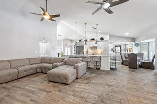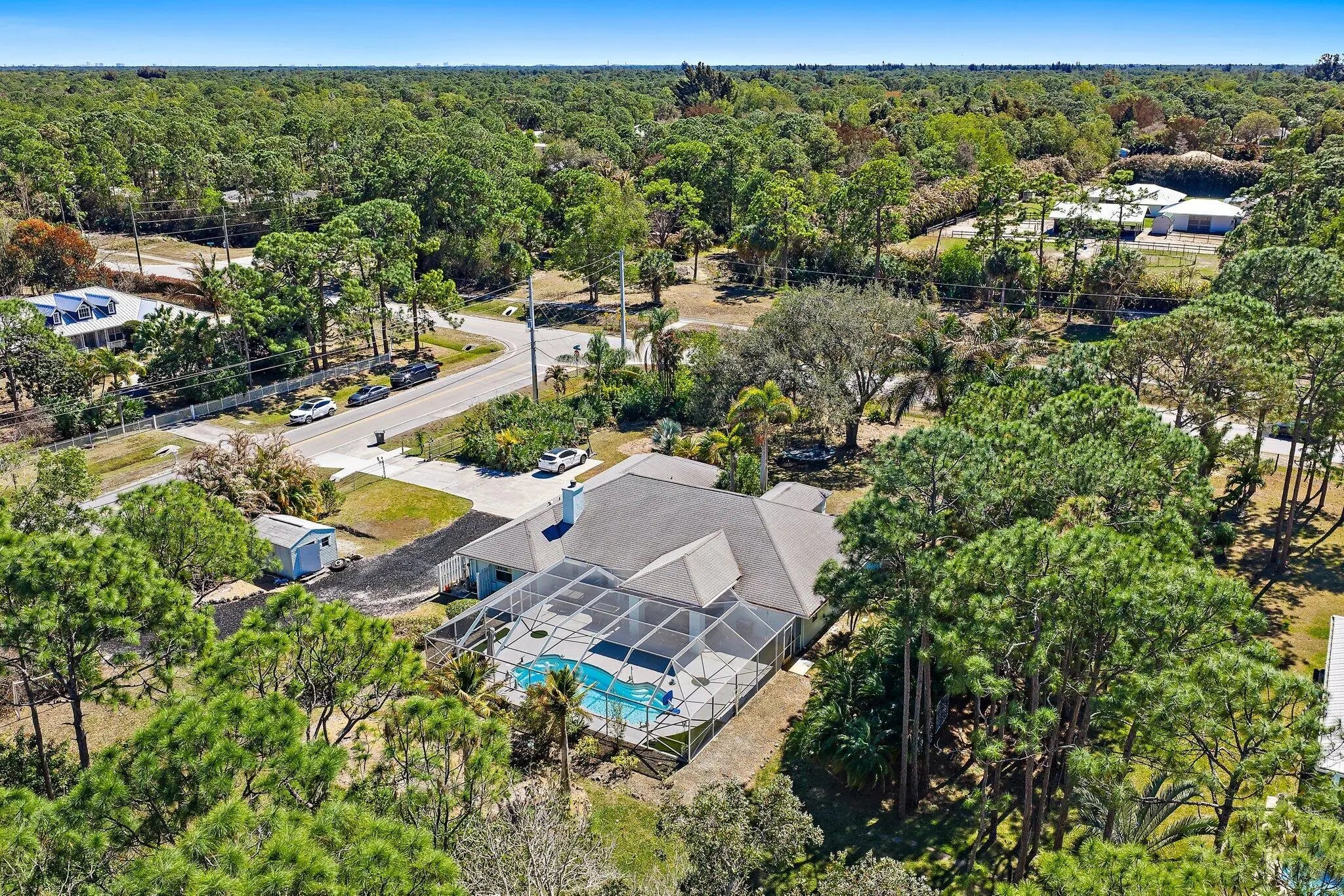 3 bedroom, 2 bathroom CBS home on 1.09 acres in Jupiter with no HOA, offering 2,374 sq ft under air in a single story layout. Designed with multiple living areas, the home provides flexibility for both everyday living and entertaining. Porcelain tile flooring runs throughout the main spaces, and the modern kitchen is positioned to connect seamlessly with the primary living and dining areas. Outdoors, enjoy an in-ground chlorine pool, over 300 sq ft of open porch space, and an expansive yard. The 1.09 acre lot offers generous room for RVs, boats, additional storage, or future enhancements. Additional features include electric forced air HVAC, a tankless water heater, partial impact windows with hurricane screen protection on select openings, a recently pumped septic system, and a 680 sq. finished garage. Located in Jupiter with no HOA restrictions, offering space and versatility in a desirable setting.
