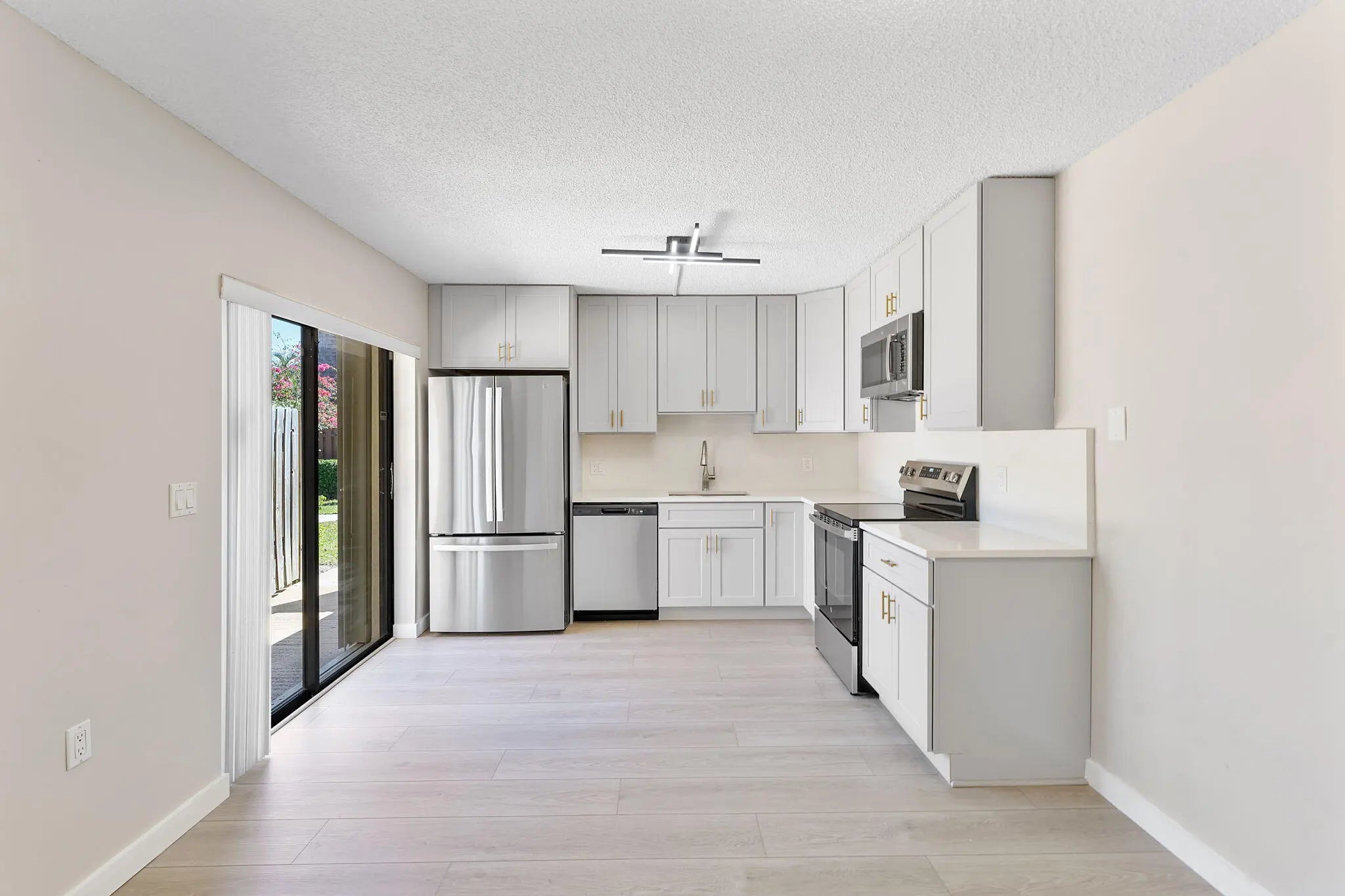 Updated 2-bedroom, 2½-bath townhouse located in the heart of Delray Beach. This move-in-ready residence features brand-new luxury vinyl flooring throughout, a completely renovated kitchen with modern cabinetry, sleek countertops, and all new stainless-steel appliances. The spacious layout offers two generously sized bedrooms with primary en-suite bath upstairs, plus a convenient half bath on the main level--perfect for guests. Enjoy seamless indoor-outdoor living with your own private courtyard, ideal for entertaining, relaxing, or creating your own tropical retreat. Nestled in Delray Oaks West, this desirable community with a prime location close to I-95, shopping, dining, and the beach, offers style, comfort, and convenience all in one.