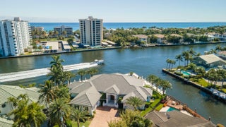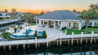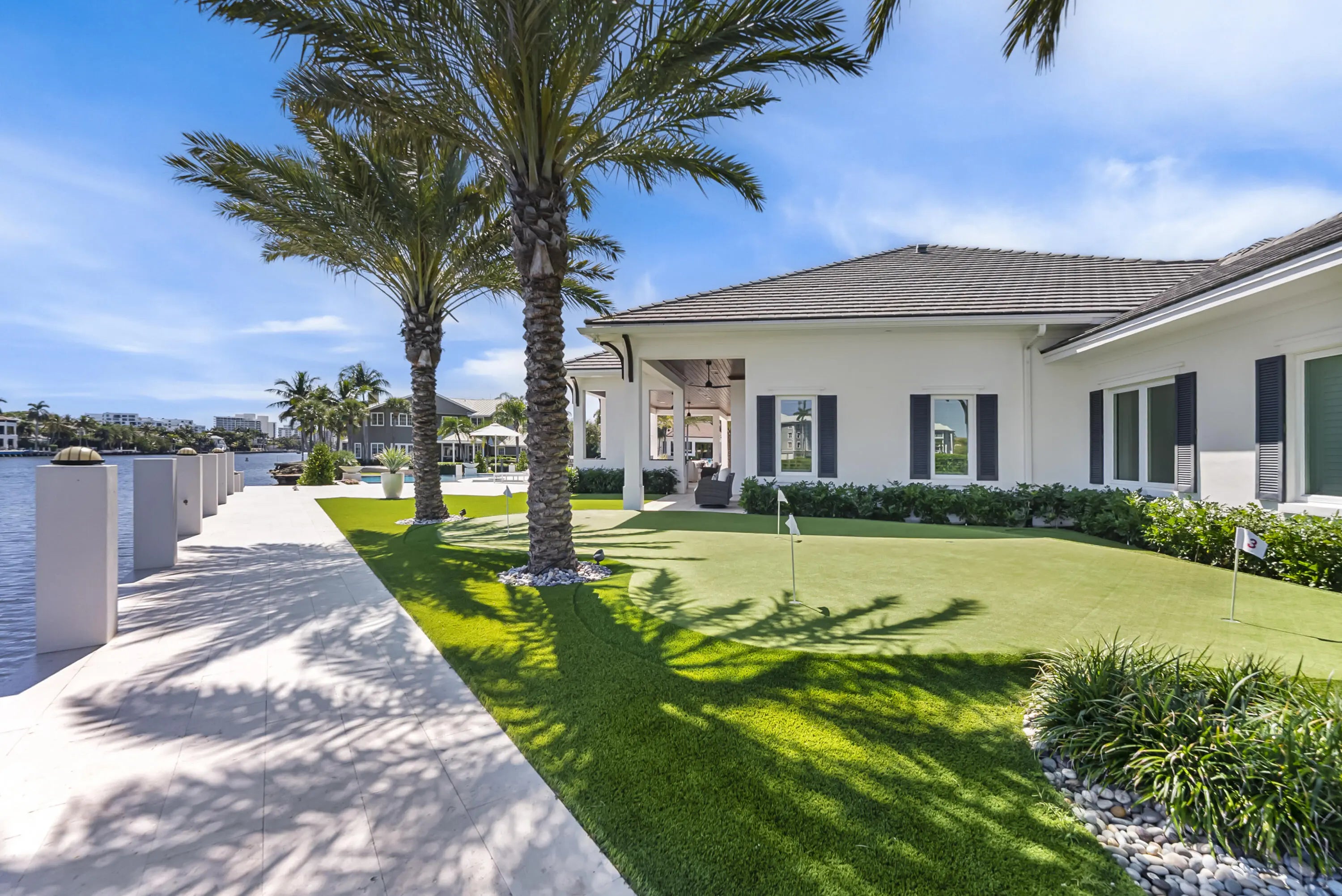 THIS SPECTACULAR BRITISH WEST INDIES-INSPIRED ESTATE IS PERFECTLY POSITIONED ON A RARE SOUTH FACING POINT LOT, OFFERING AN EXTRAORDINARY 246 FT OF SEAWALL FRONTAGE AND BREATHTAKING WATER VIEWS FROM EVERY ANGLE. DESIGNED FOR BOTH GRAND ENTERTAINING AND RELAXED COASTAL LIVING, THIS ONE STORY MASTERPIECE SHOWCASES IMPECCABLE CRAFTSMANSHIP AND THE FINEST MATERIALS THROUGHOUT. FEATURING FOUR SPACIOUS BEDROOMS, FOUR AND A HALF BATHS, AND A PRIVATE OFFICE. THE THOUGHTFULLY DESIGNED SPLIT-BEDROOM FLOOR PLAN ENSURES COMFORT AND PRIVACY. THE CHEF'S KITCHEN FLOWS SEAMLESSLY INTO THE EPANSIVE OPEN LIVING AREAS, CREATING A IDEAL SETTING. STEP OUTSIDE TO YOUR PRIVATE RESORT STYLE OASIS. THE OVERSIZED BACKYARD PATIO WITH A STUNNING INFINITY EDGE POOL, SPA & FIRE FEAUTURES. ENJOY THE GENEROUS OUTDOOR ENTERTAING SPACES WHICH INCLUDES A SUMMER KITCHEN AND PUTTING GREEN. THIS RESIDENCE IS EQUIPPED WITH PREMIUM SMART HOME FEATURES INCLUDING A LUTRON LIGHTING CONTROL SYSTEM, WHOLE HOUSE SOUND WITH SURROUND SOUND, REMOTE SECURITY CAMERAS, AND A WHOLE HOUSE GENERATOR FOR ULTIMATE PEACE OF MIND. IDEALLY LOCATED JUST MINUTES FROM THE VIBRANT SHOPS AND DINING OF ATLANTIC AVENUE AND THE PRISTINE SHORES OF DELRAY BEACH. THIS EXCEPTIONAL PROPERTY OFFERS THE VERY BEST OF LUXURY WATERFRONT LIVING.