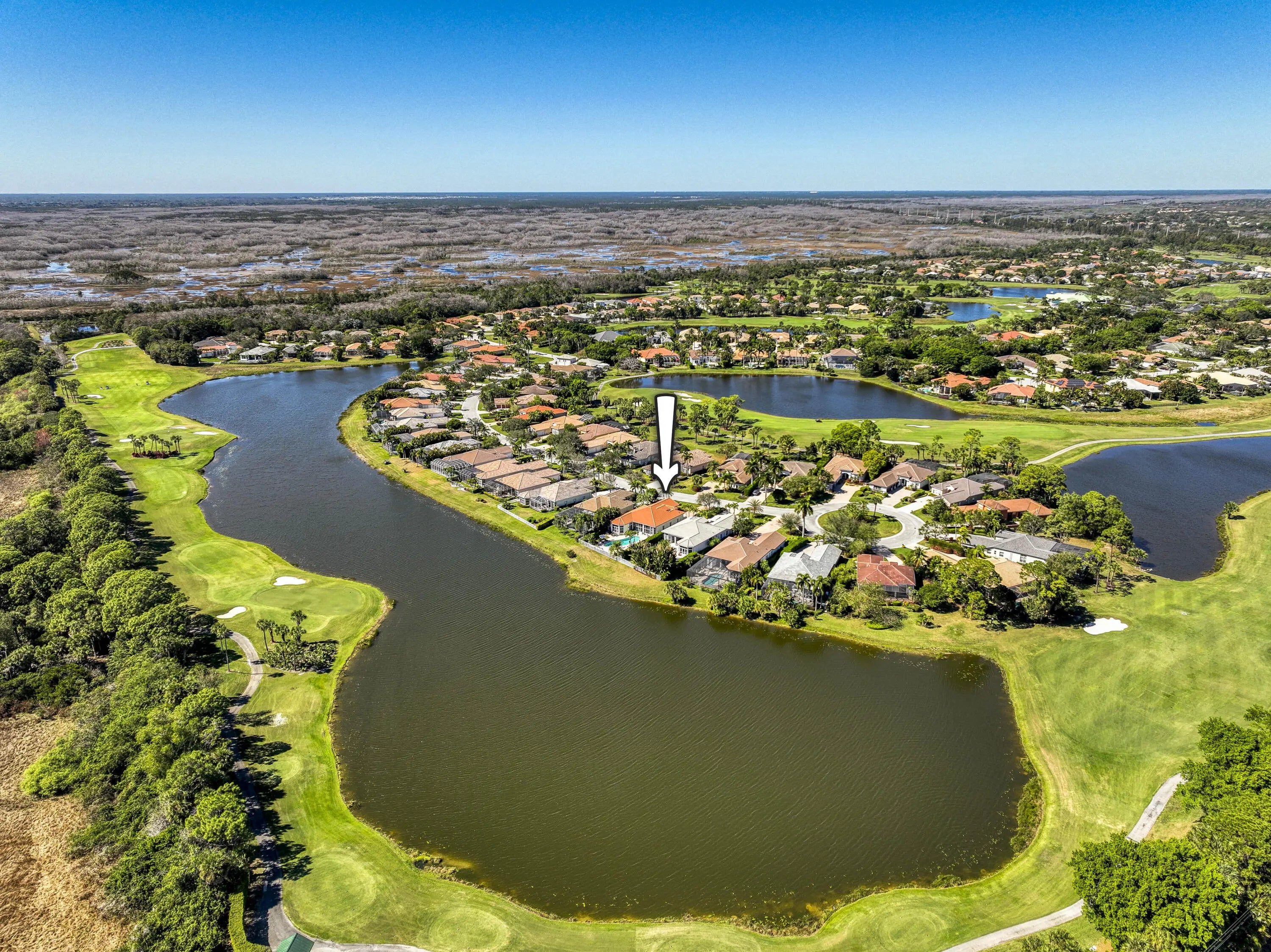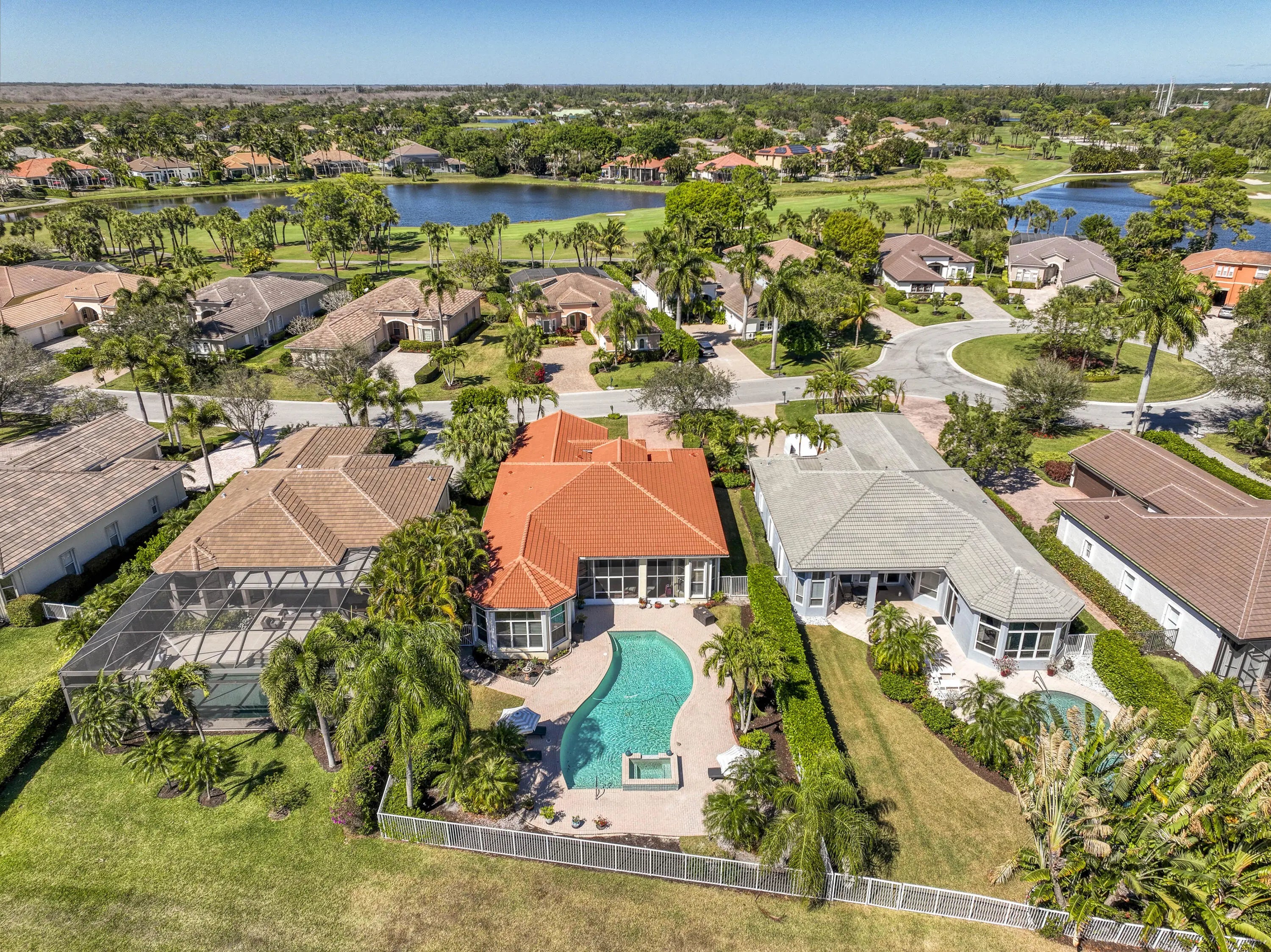Expansive southern lake and golf views highlight this meticulously maintained 4BR/3.5BA single-story home in Ironhorse, set on a .26-acre lot with nearly 3,000 sq ft under air and seamless indoor-outdoor living. Major updates include a 2022 roof, 2024 A/C systems, 2026 water heater, newer pool equipment, and newer KitchenAid appliances. High ceilings and tile flooring enhance the open layout, while the split floor plan offers privacy. The spacious primary suite features tranquil water views and a spa-like bath with soaking tub and walk-in shower, and guest bedrooms are generously sized with ample closets. All within Guard Gated Ironhorse Country Club. Enjoy an oversized backyard with paver patio, private pool, screened lanai, lush green space, and wide water views -- perfect for relaxing or entertaining.