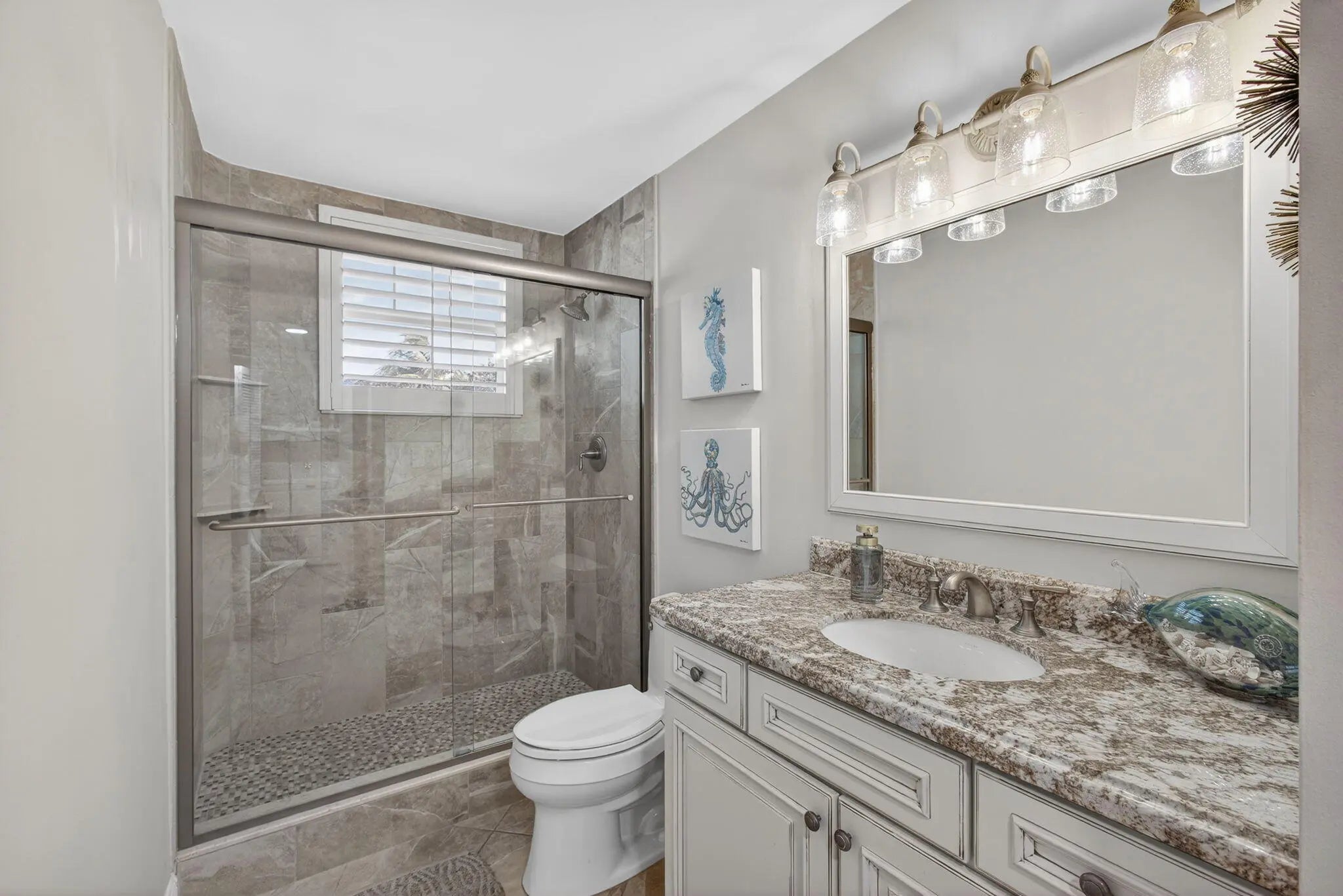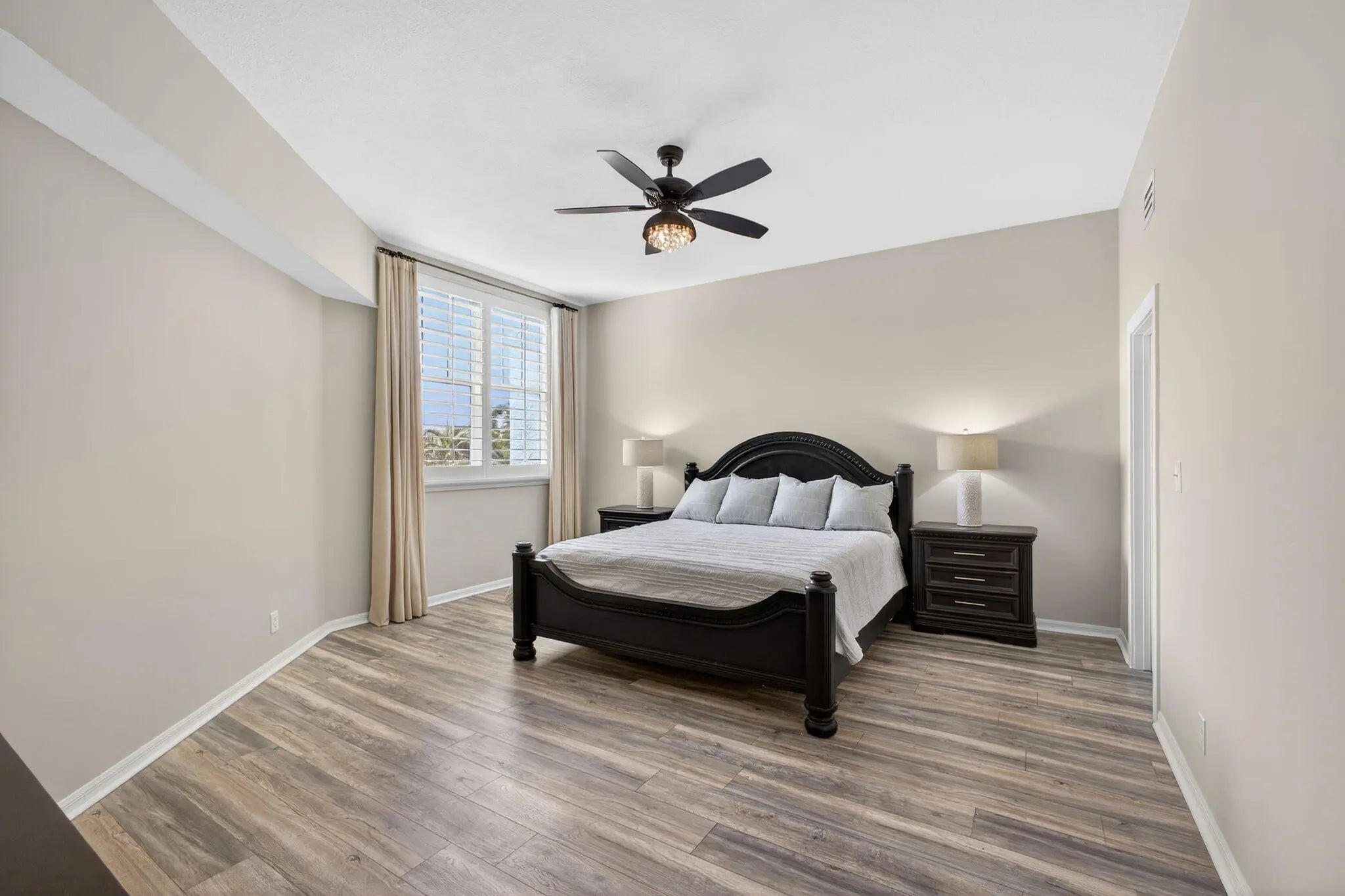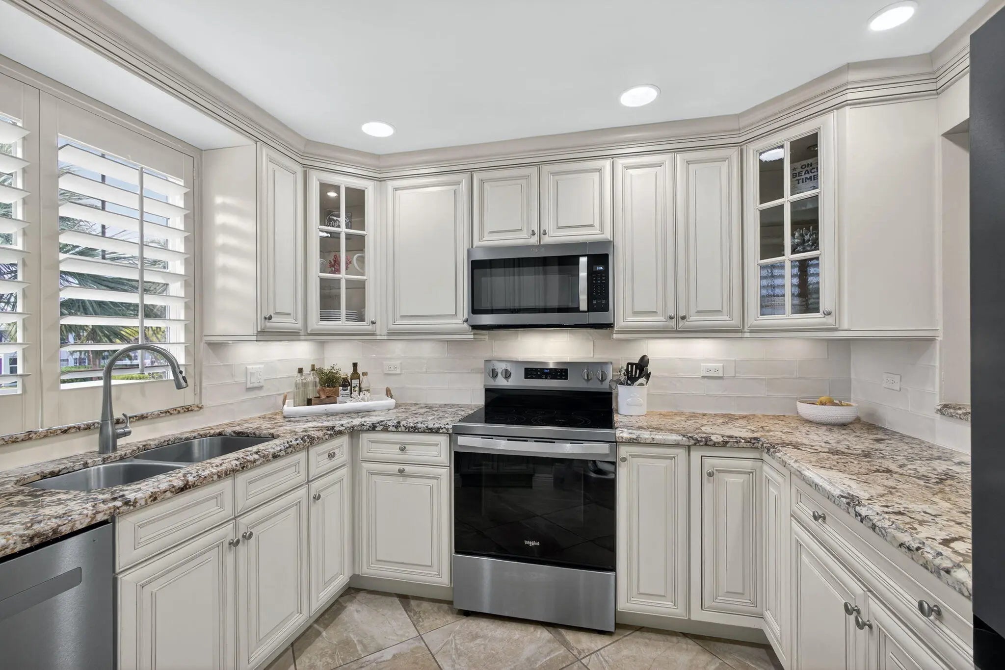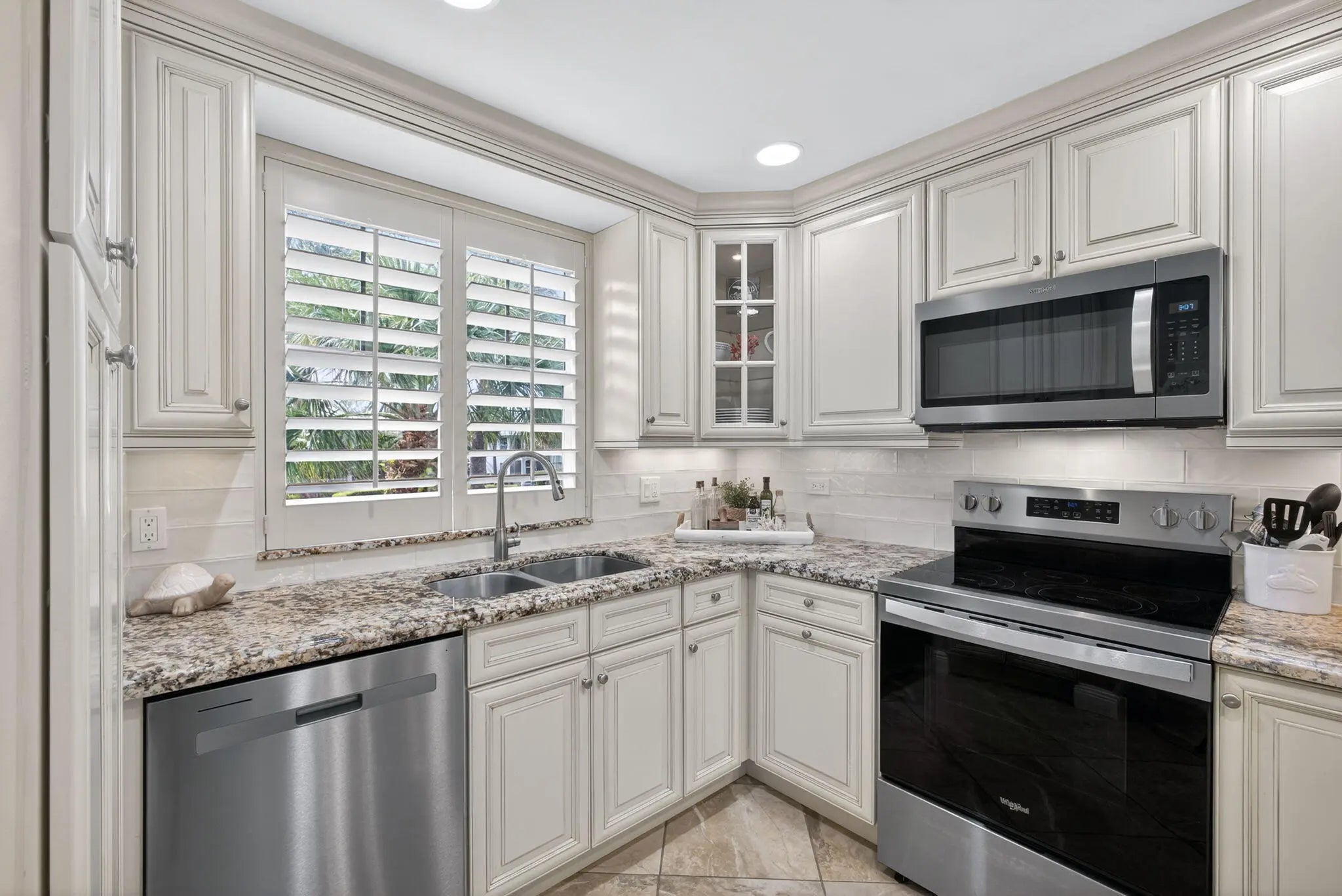 Paradise found just steps from the beach. Welcome to this rarely available, turnkey beachside condo located in the dog-friendly, gated oceanfront community of Sea Colony in Jupiter. Offering 2 bedrooms, 2 full bathrooms, approximately 1,624 square feet of living space, a private balcony, and an attached one-car garage, this residence delivers the perfect balance of coastal lifestyle and everyday comfort. Thoughtfully renovated throughout, the home features an updated kitchen and bathrooms, custom staircase detailing, and elegant wainscoting along the staircase and living areas, adding architectural character and coastal charm. The interior is enhanced by hurricane-impact glass and plantation shutters throughout, allowing for peace of mind and abundant natural light. Ceramic tile flooring anchors the main living level, while the upper level showcases new tongue-and-groove laminate plank flooring, creating a warm and cohesive design. The spacious primary suite offers a private retreat complete with custom closet systems and a fully renovated en-suite bathroom (2025) with refined finishes and a walk-in shower. The secondary bedroom is generously sized and versatile, ideal for guests or a home office, with convenient access to the second full bathroom. Recent improvements include a new roof (2024), air conditioning system (2021), all new AC ductwork (2025), hot water heater (2026), new refrigerator, stove, microwave, and dishwasher (2026), washer and dryer (2025), popcorn ceiling removal and interior painting (2025), and a renovated primary bathroom and updated kitchen (2025). The community's front entrance renovation is fully funded and scheduled for completion in 2026, adding further value. After a day at Jupiter's pristine beaches--just steps away via two private resident beach access points--enjoy Sea Colony's newly renovated resort-style pool and hot tub, refinished pickleball and tennis courts, fitness center, and 24-hour manned gate. The attached one-car garage provides secure parking and additional storage, a rare and highly desirable feature for beachside living. Ideally located near Jupiter's best dining, shopping, and entertainment, this exceptional residence is perfect as a primary home, second residence, or investment opportunity. A rare chance to own in one of Jupiter's most sought-after oceanfront communities--this is coastal living at its finest.