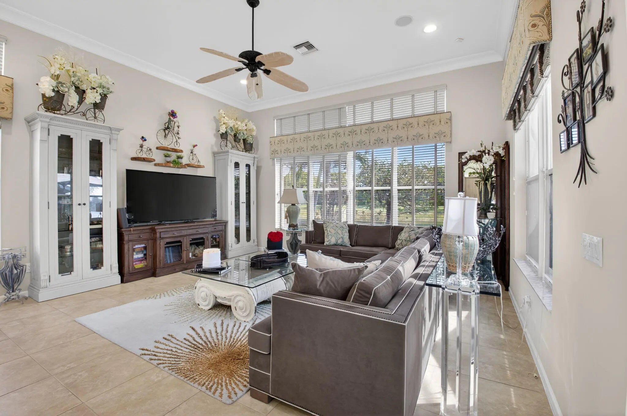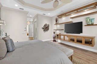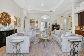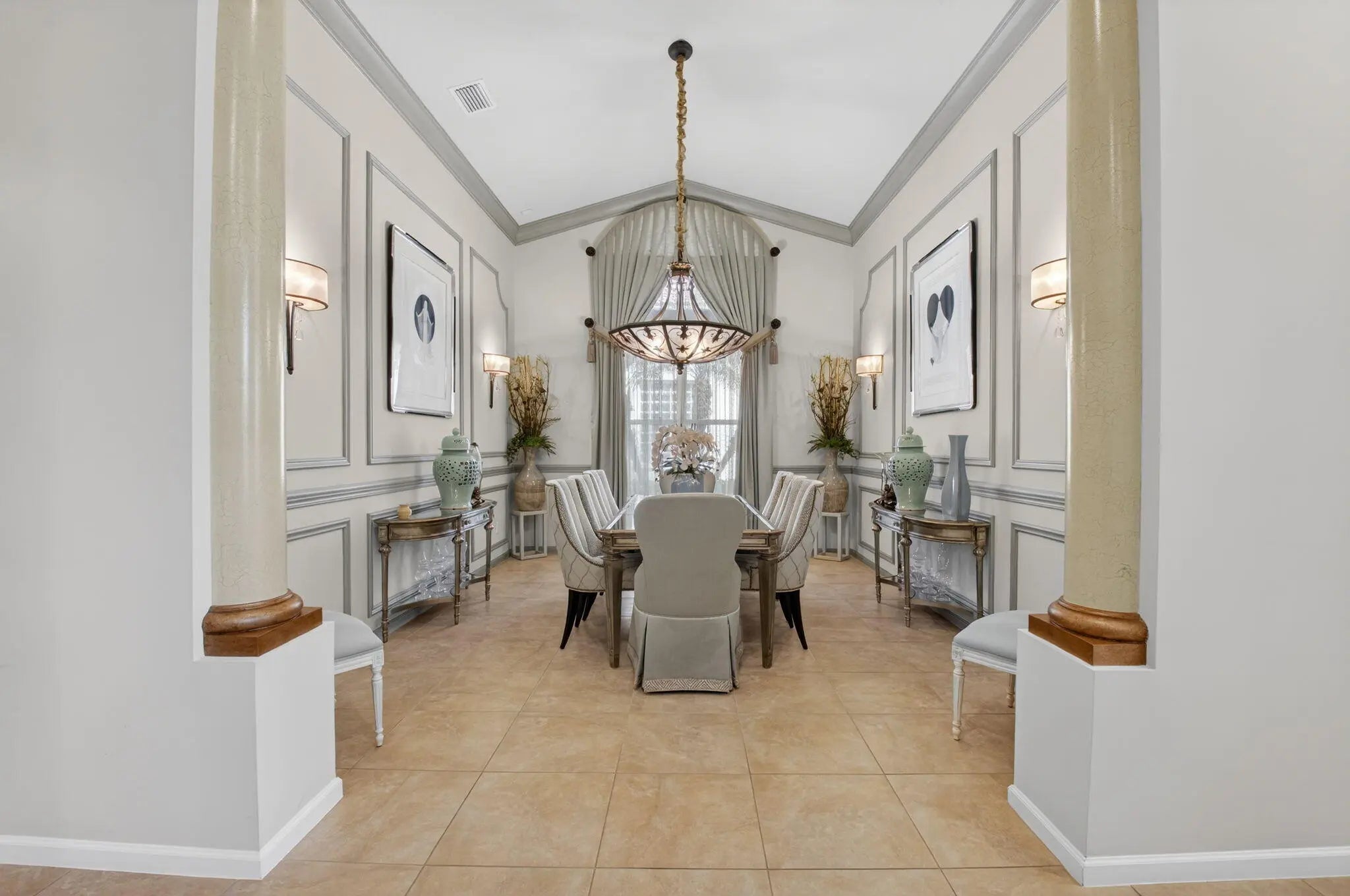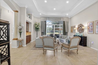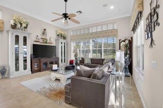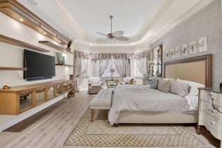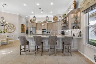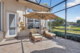 Experience luxury in this 3bdrm/3.1bath 3000sq' lakefront Imperial model home in the prestigious Royal Estates of Valencia Palms. This impeccably maintained home offers ultimate peace of mind with a brand-new 2025 roof and a full-house generator. The gourmet kitchen, renovated 3 years ago, features high-end cabinetry, pull-outs, top-of-the-line LG appliances with an induction cooktop. Enjoy a carpet-free interior with luxury vinyl and ceramic tile, complemented by plantation shutters and custom window treatments throughout. The primary suite boasts a renovated spa-like bath and custom-outfitted closets. Crown moldings, wainscotting throughout. Relax on the screened lanai with a stunning lake view. perfect for relaxing or entertaining.Every detail has been carefullyconsidered, more making this home truly move in ready.This is Florida living at its finest in a premier 55+ community with a 31,000 sq. ft. clubhouse and resort amenities.Valencia Palms has the best location close to beaches, restaurants and shopping.There is a gorgeous Clubhouse, Fitness Center,Resort Pools, Lap Pool, Resistance Pool, Billiard Room, Cafe', Social Events, Clubs,Shows, Grand Ball Rm. Pickleball, Tennis. Bocce Ball. Maintenance fee includes cafe card, Cable with all channels, internet, landline,ext. house painting,alarm,lawn/ tree care and so much more. Come enjoy the Valencia Palms Lifestyle. Buyer pays 1X capital contribution $5090. Maintenance fee $2520/quarter includes exterior house painting, lawncare, cable, internet, house phone, exterior pest control, power washing roofs and more.