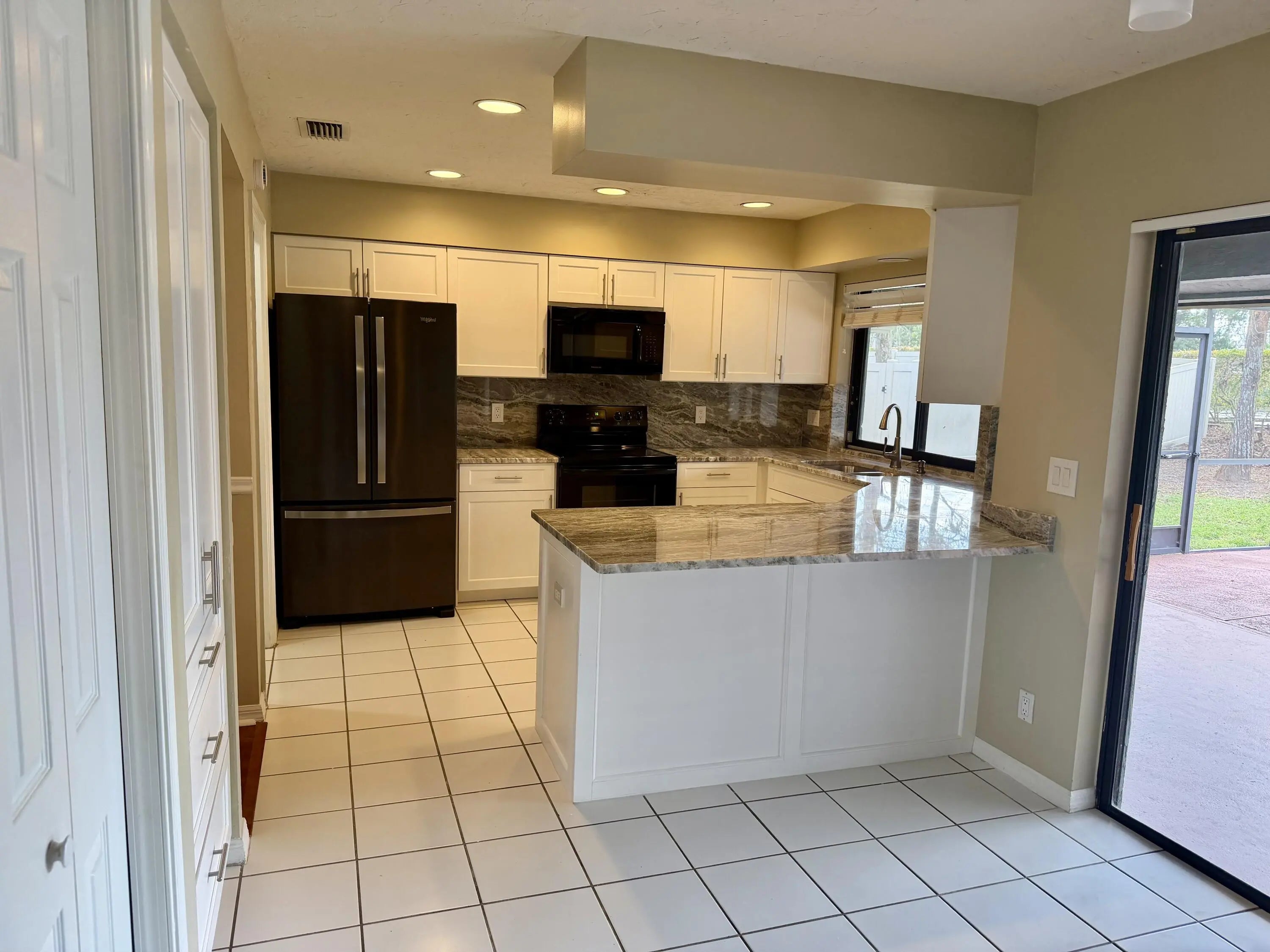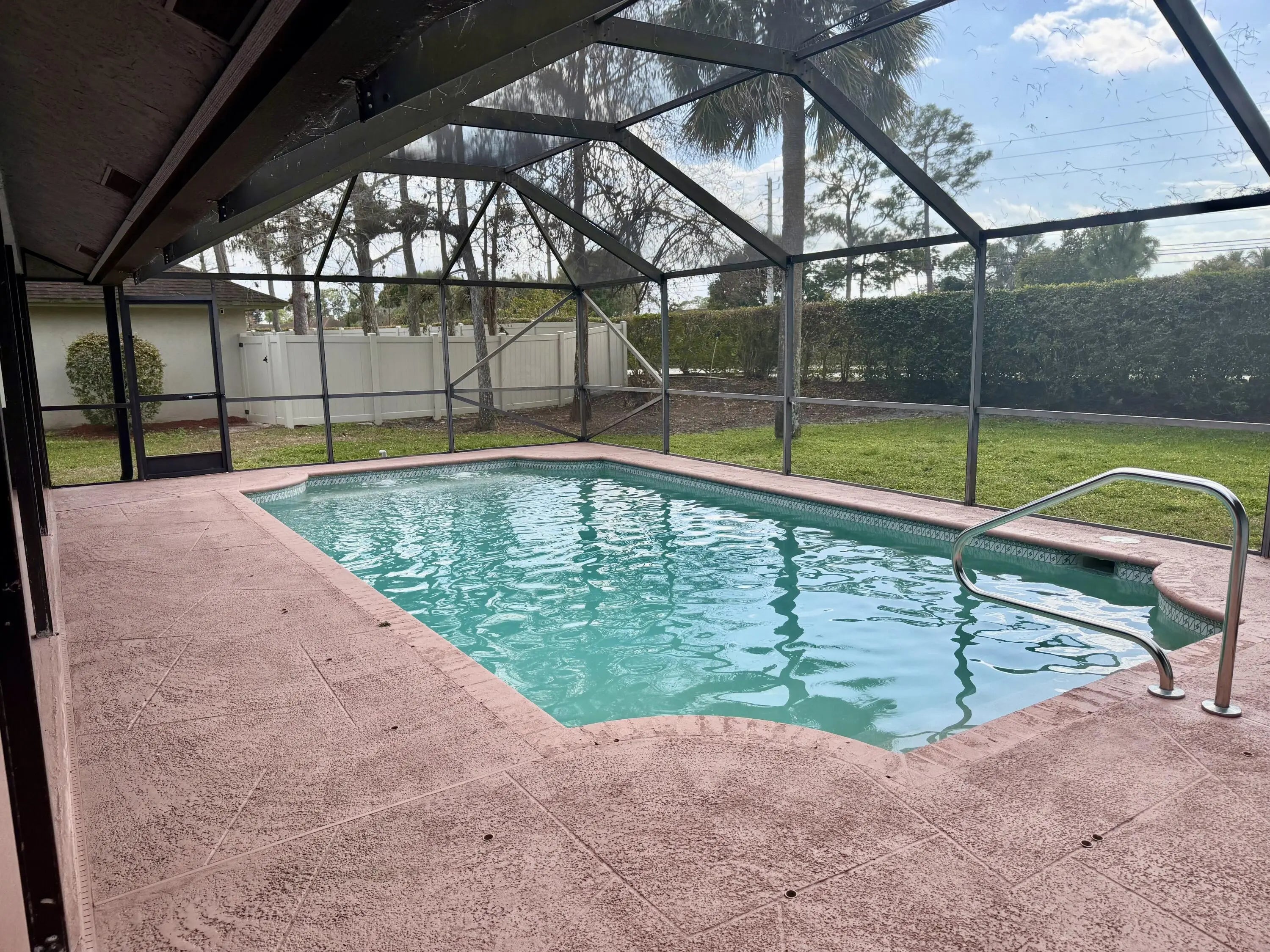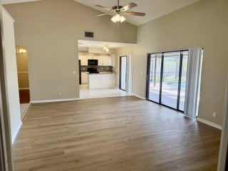 Located in a prestigious community of well maintained executive homes. This newly updated spacious 4 bedroom 2 1/2 bath, screened pool home has great curb appeal & includes yard and pool service. New quartz counter tops ,white shaker cabinets,side by side bottom freezer refrigerator & new washer & dryer in the a/c laundry room. New fans & light fixtures, some fresh paint & flooring (no rugs) Great floor plan, dbl door entry, formal living, dining and large family rm, vaulted knock down ceilings & lots of sliders to a big covered patio & pool area. The yard is lush and private. Lux primary suite: his & her walk in closets, bath offers a lrg soaker tub, dual vanities, step in shower & cabanas to the pool. 2 car garage, attic stairs & a pedestrian door. Professionally cleaned & move in ready