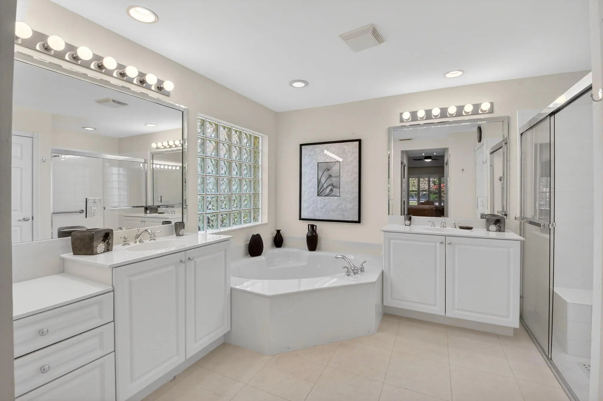 Built-in Features, Cathedral Ceiling(s), High Ceilings, Vaulted Ceiling(s), Bedroom Layout - Split, Roman Tub