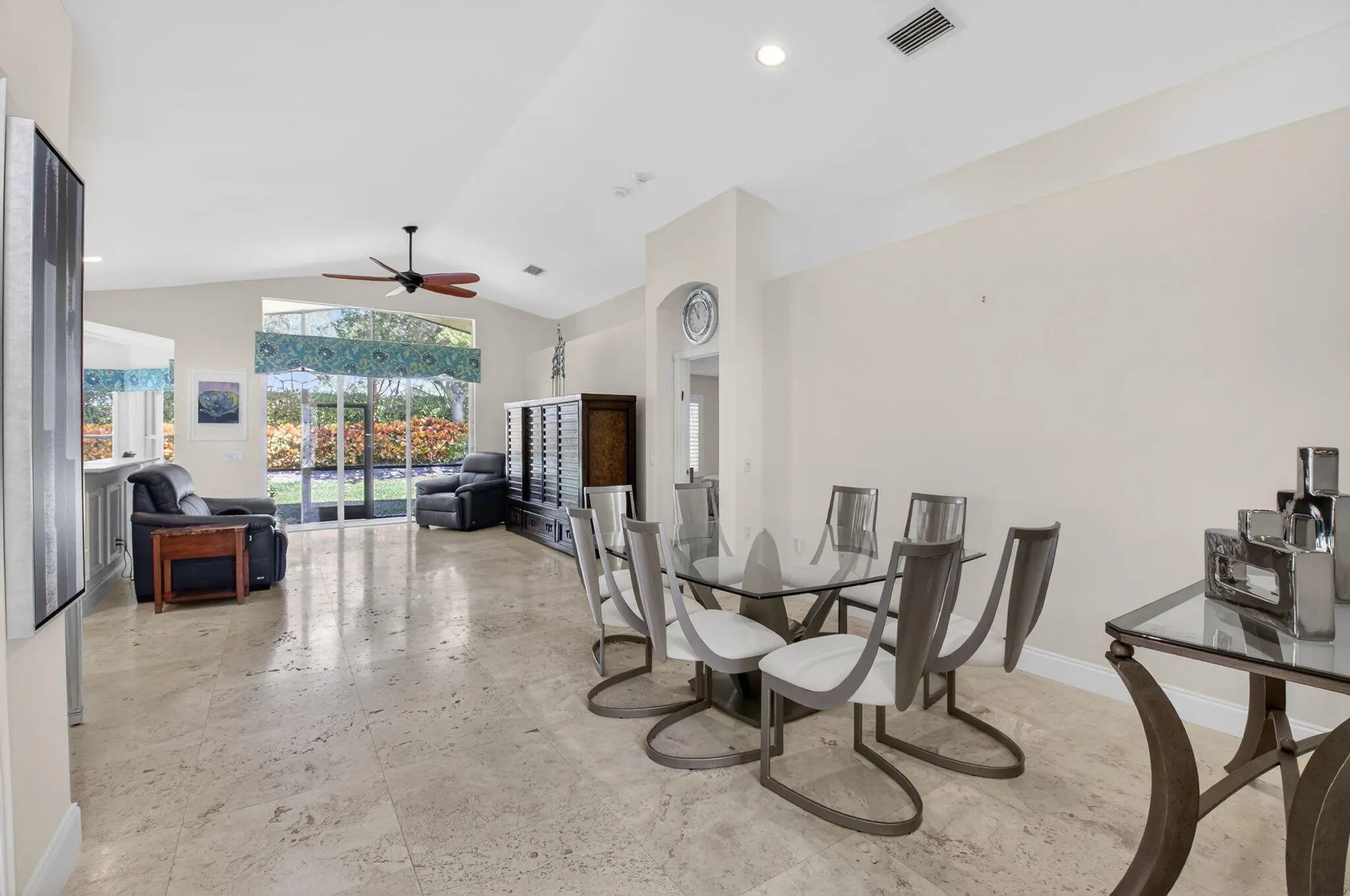 Experience wonderful 55+ living in this rarely available South Pacific ''Wall Down'' model in Valencia Palms. This 3-bedroom, 2-bathroom residence has been reimagined by removing the traditional partition wall, creating a spectacular open-concept floor plan that floods the home with natural light. The kitchen flows seamlessly into an expansive great room, making it the ultimate space for modern entertaining. Retreat to a grand primary suite with dual walk-in closets and a spa-like bath, while the versatile third bedroom serves as the perfect home office. Step outside to a private screened lanai to enjoy the tranquil Delray Beach breeze. With a world-class clubhouse, tennis, pickleball and a vibrant social scene, this home offers a ifestyle of comfort and enjoyment.......... living at its finest in a premier 55+ community with a 31,000 sq. ft. clubhouse and resort amenities.Valencia Palms has the best location close to beaches, restaurants and shopping.There is a gorgeous Clubhouse, Fitness Center,Resort Pools, Lap Pool, Resistance Pool, Billiard Room, Cafe', Social Events, Clubs,Shows, Grand Ball Rm. Pickleball, Tennis. Bocce Ball. Maintenance fee includes cafe card, Cable with all channels, internet, landline,ext. house painting,alarm,lawn/ tree care and so much more. Come enjoy the Valencia Palms Lifestyle. Buyer pays 1X capital contribution $5040. Maintenance fee $2520/quarter includes exterior house painting, lawncare, cable, internet, house phone, exterior pest control, power washing roofs and more.