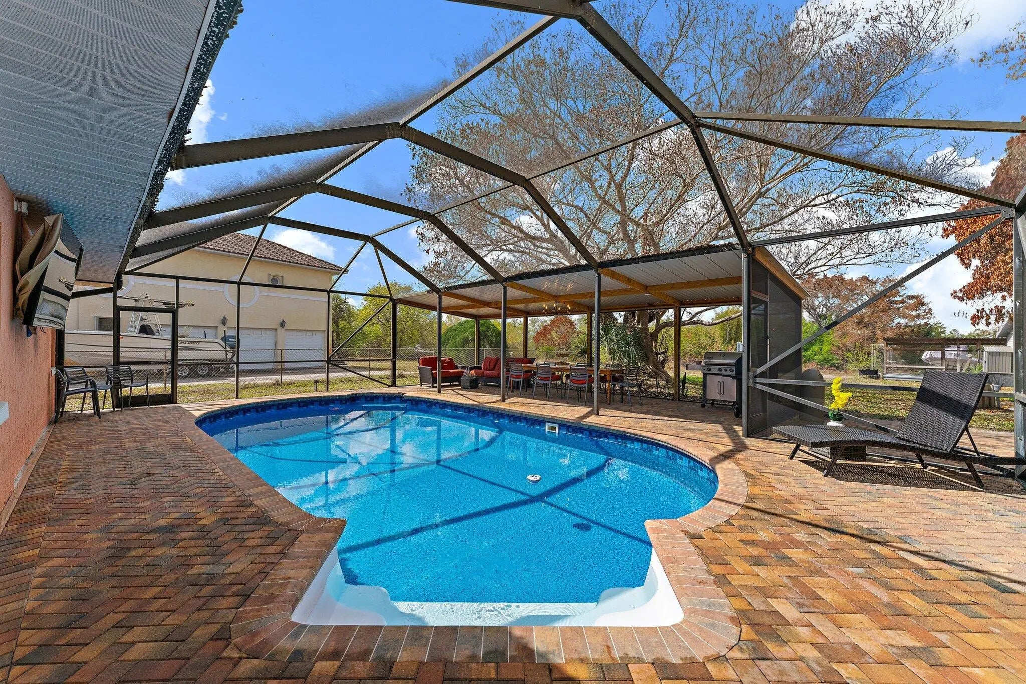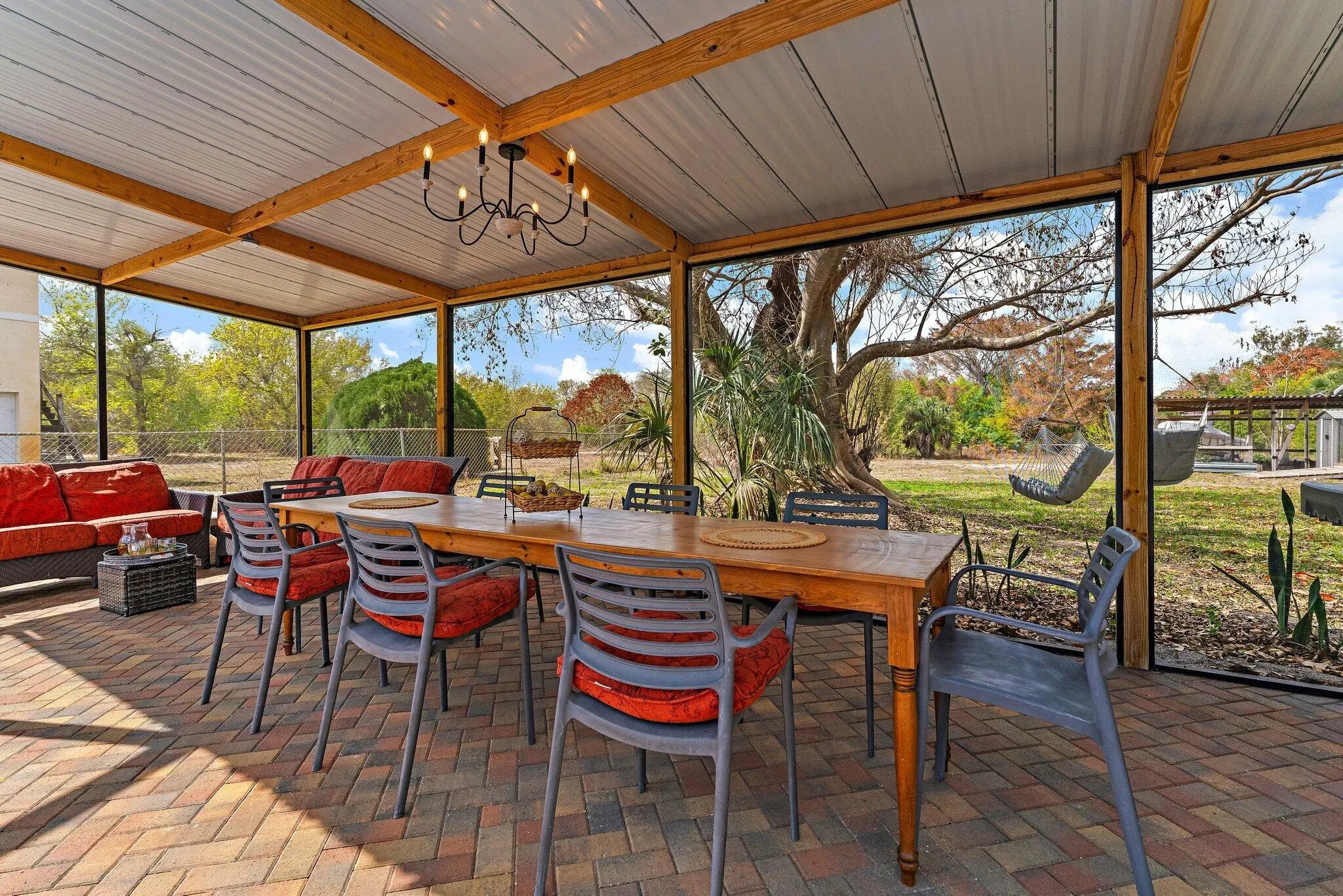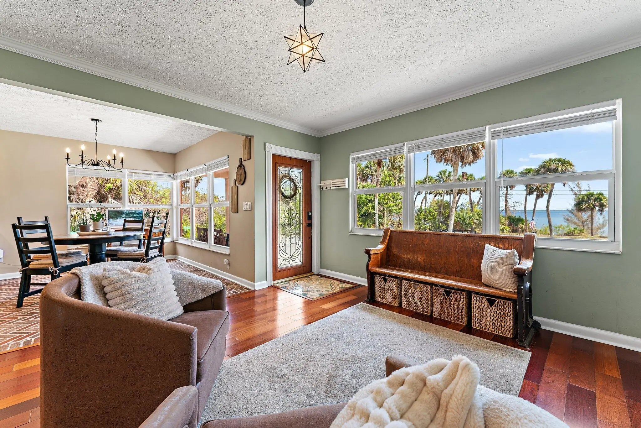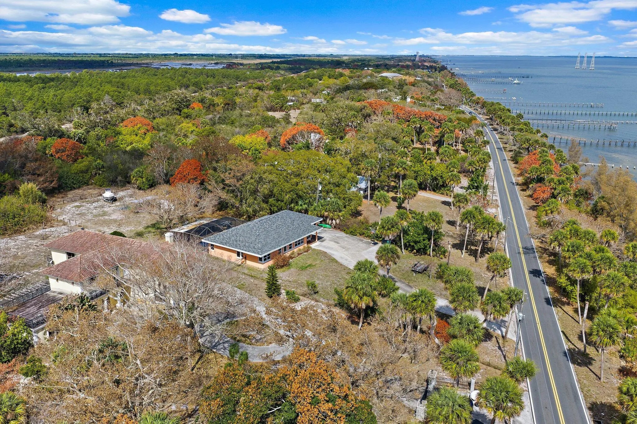 Farmhouse-Chic Riverfront Living on Historic Indian River Drive. Welcome to this beautifully updated farmhouse-chic retreat on scenic Indian River Drive, where timeless character meets modern upgrades and exceptional waterfront potential. Situated on 1.38 acres with riparian water rights and the ability to build a private dock, this unique property offers direct access to the Indian River Lagoon lifestyle with plenty of room for your boat, RV, and outdoor toys. This spacious 3-bedroom, 2.5-bath home offers over 3,500 total square feet, including a large bonus room with private entrance and closet--ideal for a potential in-law suite, guest quarters, home office, or income-producing rental. Extensively updated, the home features a new architectural shingle roof (2025), impact windows, and doors, updated HVAC systems, newer flooring, stainless steel appliances, propane gas service, and a resurfaced pool with enclosure. The bright interior blends warmth and style with Brazilian cherry wood flooring in bedrooms and bonus spaces and brick flooring in the kitchen. Outdoor living shines with a saltwater pool, spacious patio and deck, chicken coop, raised garden beds, and a detached 520-square-foot garage/workshop. The expansive property provides privacy and flexibility rarely found along the river. Enjoy unobstructed river views with just over 99 feet of riparian rights, making this an exceptional opportunity for waterfront enthusiasts seeking space, charm, and future dock potential. This move-in-ready riverfront property combines acreage, modern updates, and a waterfront lifestyle in one remarkable setting.