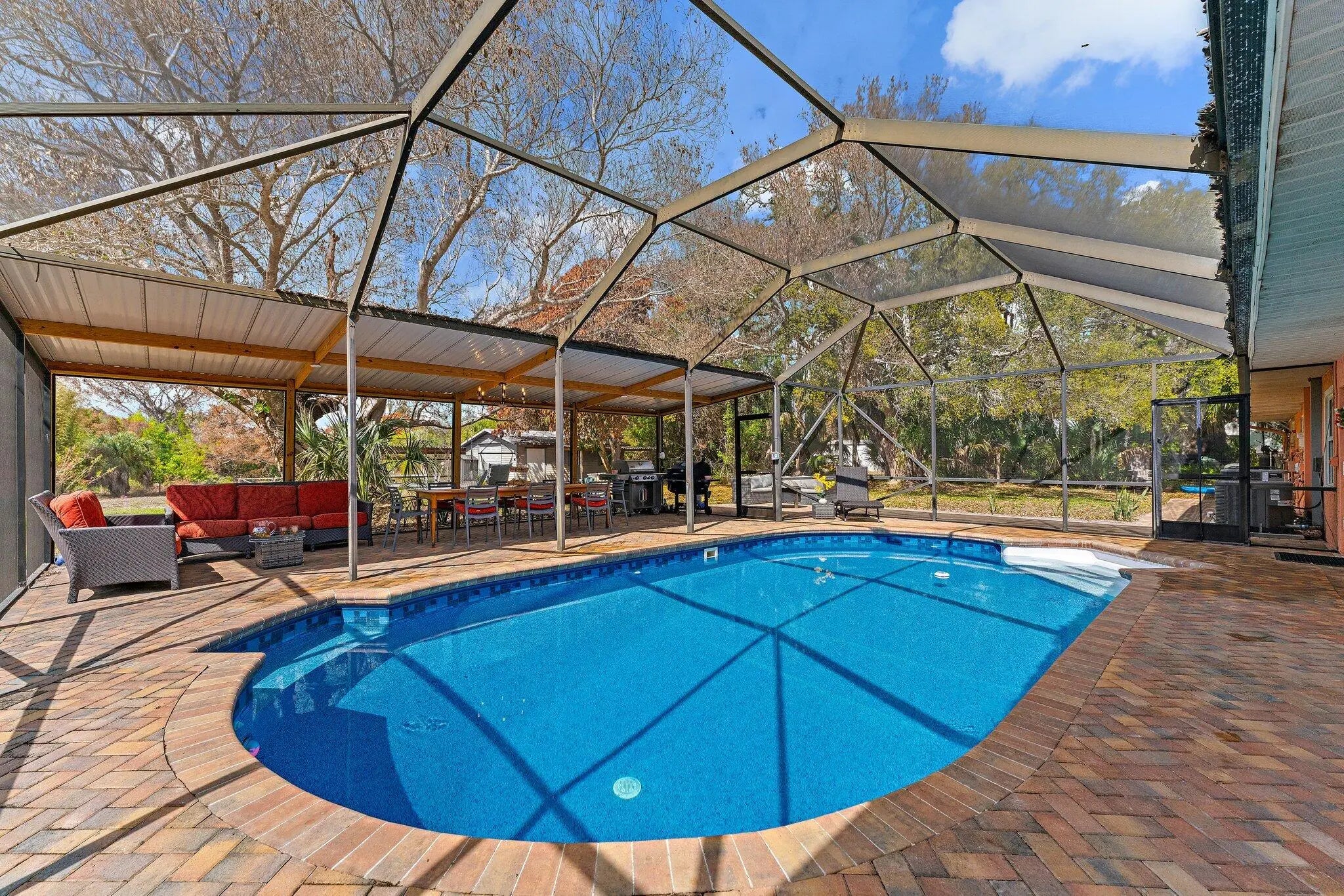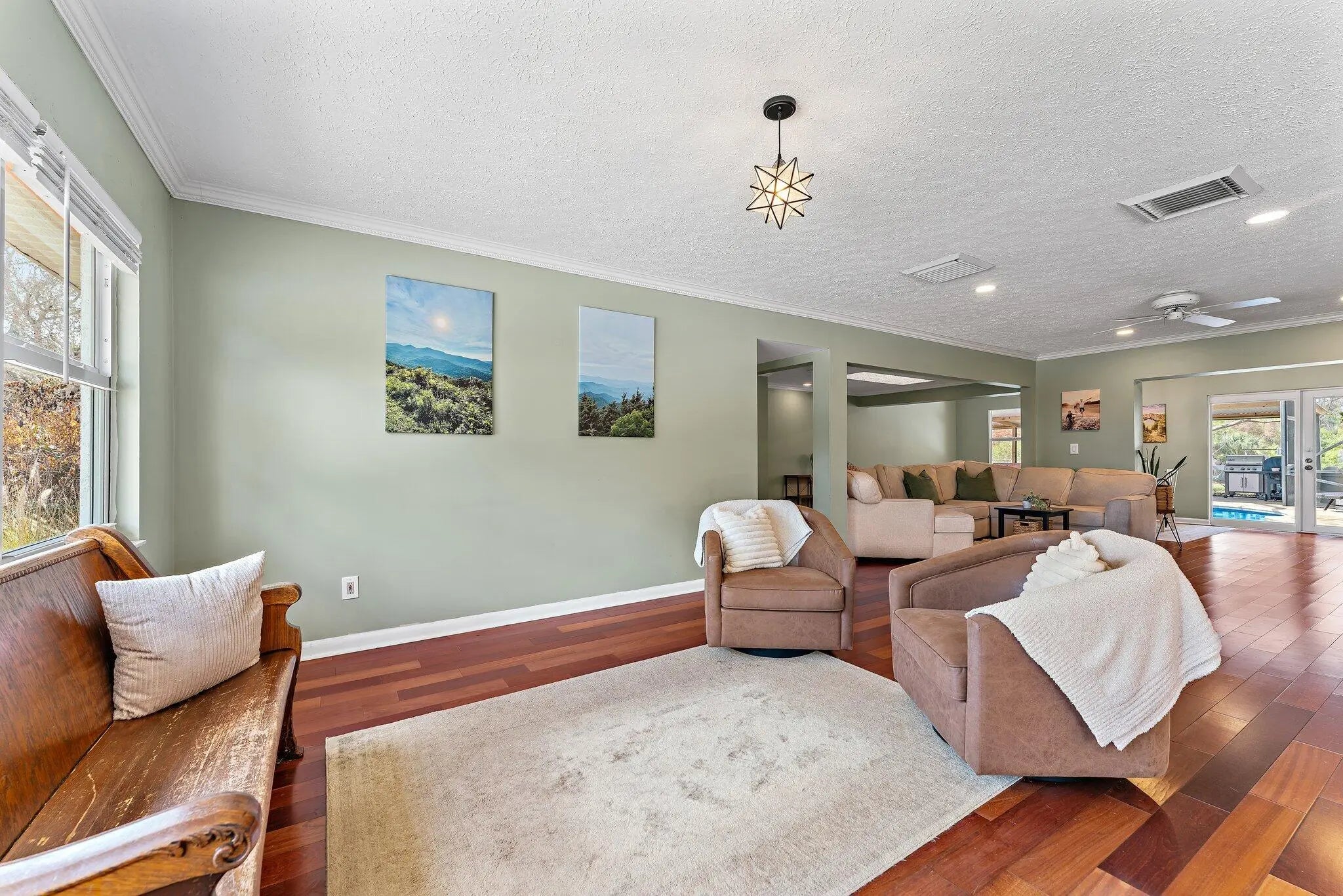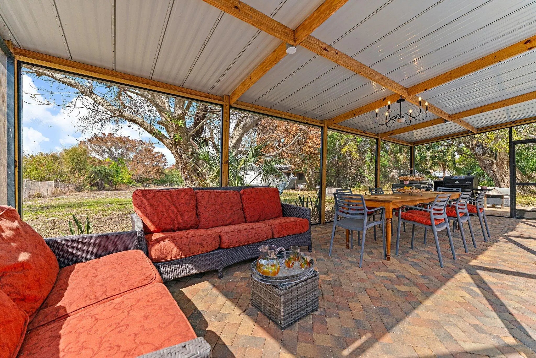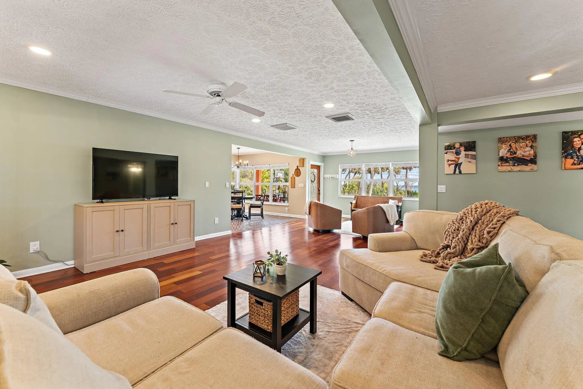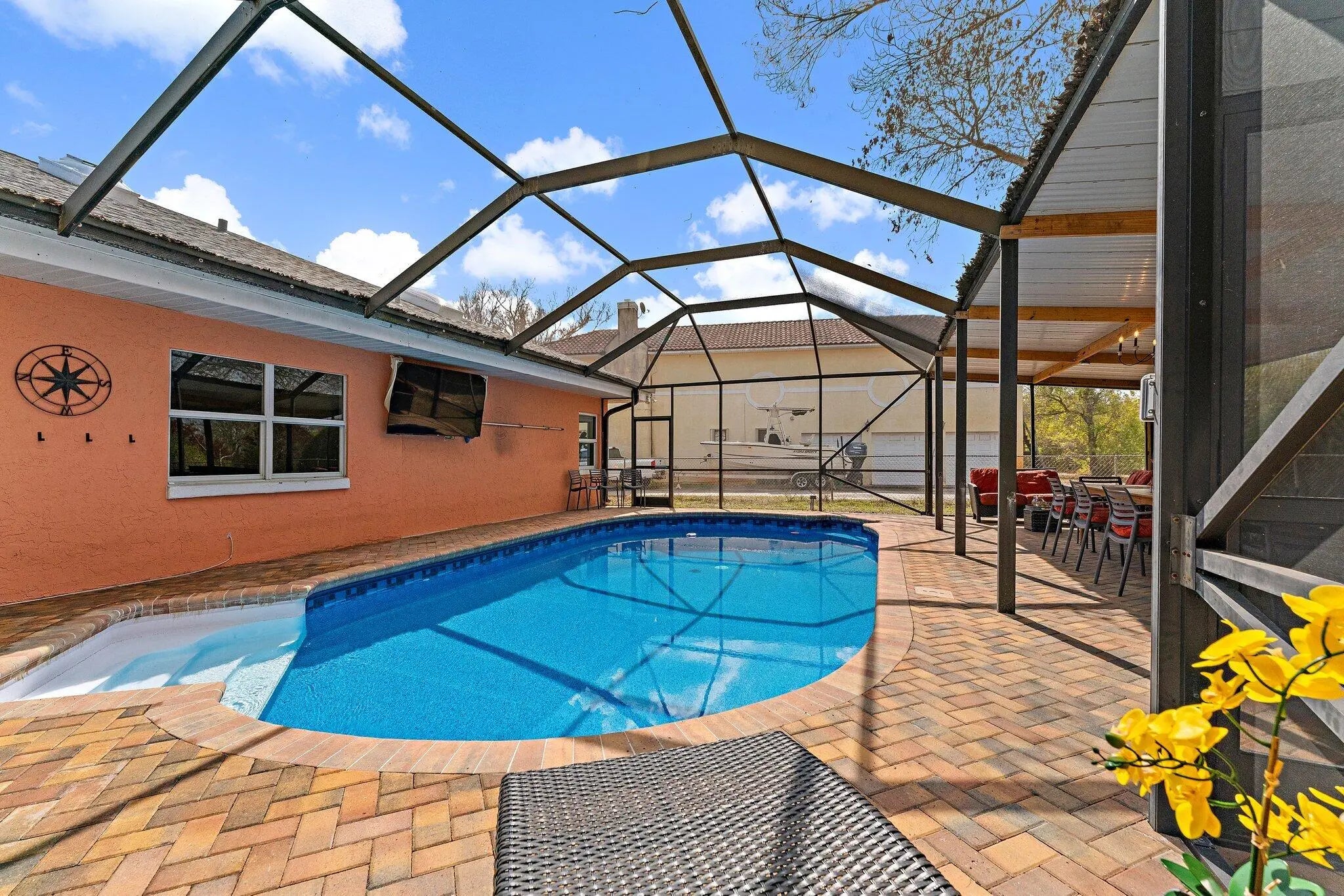 Farmhouse-Chic Riverfront Living on Historic Indian River Drive. Welcome to this beautifully updated farmhouse-chic retreat on scenic Indian River Drive, where timeless character meets modern upgrades and exceptional waterfront potential. Situated on 1.38 acres with riparian water rights and the ability to build a private dock, this unique property offers direct access to the Indian River Lagoon lifestyle with plenty of room for your boat, RV, and outdoor toys. This spacious 3-bedroom, 2.5-bath home offers over 3,500 total square feet, including a large bonus room with private entrance and closet--ideal for a potential in-law suite, guest quarters, home office, or income-producing rental. Extensively updated, the home features a new architectural shingle roof (2025), impact windows, and doors, updated HVAC systems, newer flooring, stainless steel appliances, propane gas service, and a resurfaced pool with enclosure. The bright interior blends warmth and style with Brazilian cherry wood flooring in bedrooms and bonus spaces and brick flooring in the kitchen. Outdoor living shines with a saltwater pool, spacious patio and deck, chicken coop, raised garden beds, and a detached 520-square-foot garage/workshop. The expansive property provides privacy and flexibility rarely found along the river. Enjoy unobstructed river views with just over 99 feet of riparian rights, making this an exceptional opportunity for waterfront enthusiasts seeking space, charm, and future dock potential. This move-in-ready riverfront property combines acreage, modern updates, and a waterfront lifestyle in one remarkable setting.