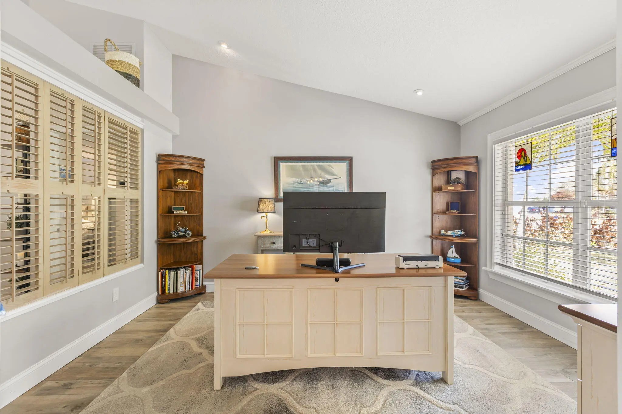 This beautiful 4 bedroom 2 bath home shows like a Model home. Owners pride shows everywhere you look. Spacious open floor plan, with volume ceilings, newer AC and appliances. Roof is new in 2023,. House is sold with a whole house generator. All this on 1/ 2 acre fenced lot and in a gated community. Extra storage with a permitted 10x14 shed with power will make a great work shop. Newly painted exterior in 2023, and a new paved driveway in 2021. This is a rare find,, a gated community with all estate size lots in Palm Lake gardens Sprinkler system is on well water, so not on the city water bill. This Community has a one time contribution fee of 1850.00.