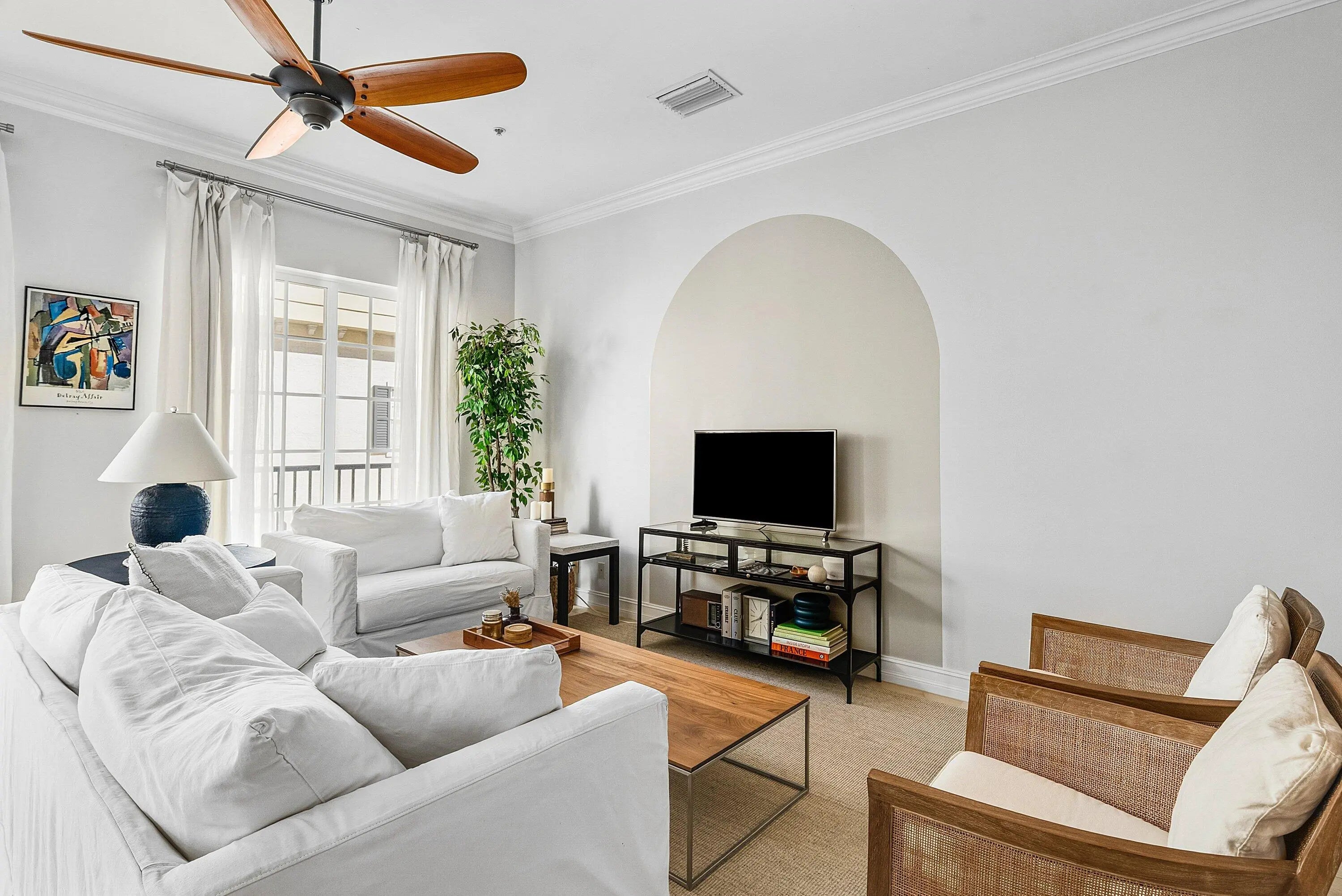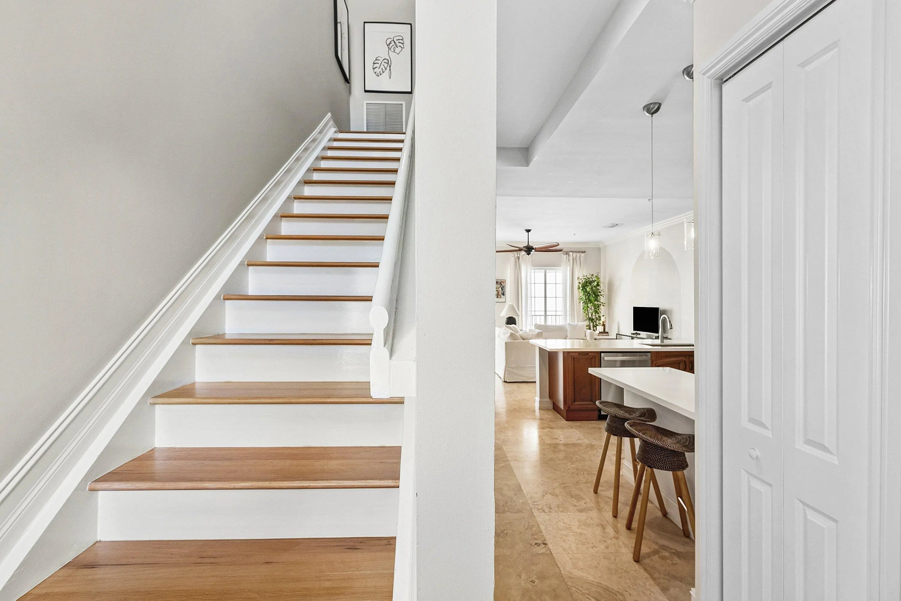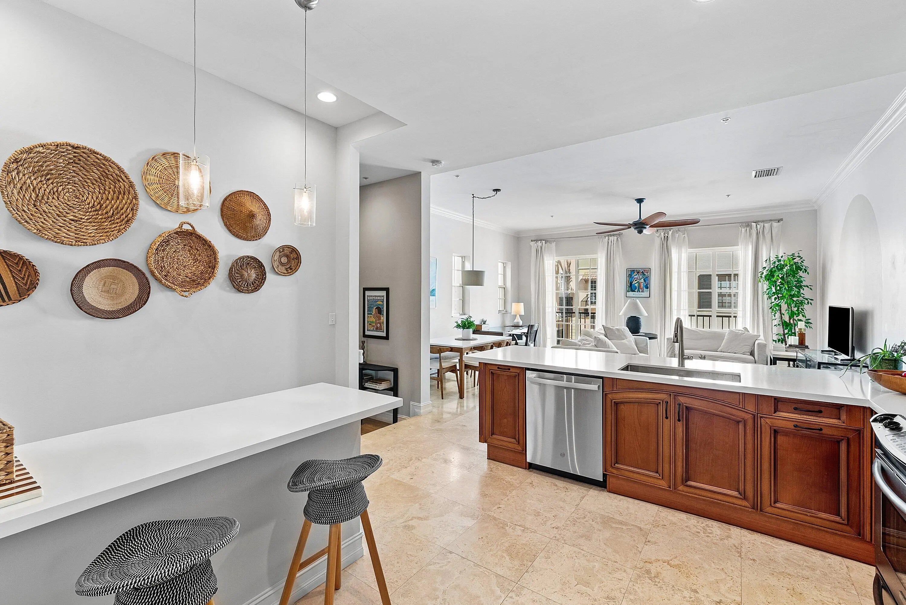 Beautifully Upgraded Corner Townhome Filled with Natural Light Ideally positioned in the heart of downtown Delray Beach, this fully furnished, turnkey, and highly upgraded corner residence offers the perfect blend of luxury and comfort. Located just 1½ blocks from Atlantic Avenue and only two blocks from the Intracoastal, you are moments from renowned dining, boutique shopping, vibrant nightlife, and Delray's pristine beaches. Spanning just under 2,000 square feet under air, this fully furnished, spacious townhome features 2 bedrooms plus a flexible third bedroom option, along with 3.5 bathrooms. As a desirable interior end unit, the home is flooded with natural light in every room and includes a private two-car garage. Designed with timeless Mediterranean refined finishes throughout. Travertine flooring enhances the main living areas, while hardwood floors warm both bedroom suites. Wood staircases, soaring 9- and 10-foot ceilings, and extensive crown molding add architectural elegance. The gourmet kitchen is appointed with sleek Italian cabinetry and backsplash, quartz countertops, subway tile backsplash, stainless steel appliances, counter seating and eat-in Kitchen table seating creating a sophisticated yet functional space for cooking and entertaining. Additional upgrades include a two-zone A/C system with Nest thermostat (controlled from your phone), hurricane-impact windows and doors, ADT security system, and a separate laundry room with full-size washer and dryer and built-in upper storage cubbies. The luxurious primary suite with cove ceiling offers a spa-inspired bath complete with a Jacuzzi-style soaking tub, bidet, and generous space to unwind. Located in the intimate community of Porta Al Mare, a charming enclave of just 20 upscale townhomes with a community pool, residents enjoy a low-maintenance lifestyle. The HOA includes master insurance and full exterior maintenance of the community, providing peace of mind. This is downtown Delray living at its finest -- sophisticated, exceptionally located, and effortlessly coastal. The information published and provided including but not limited to prices, measurements, square footages, lot sizes, features, finishes, and calculations are subject to errors, omissions or changes without notice. All such information should be independently verified. All parties should perform their own due diligence to verify all information.