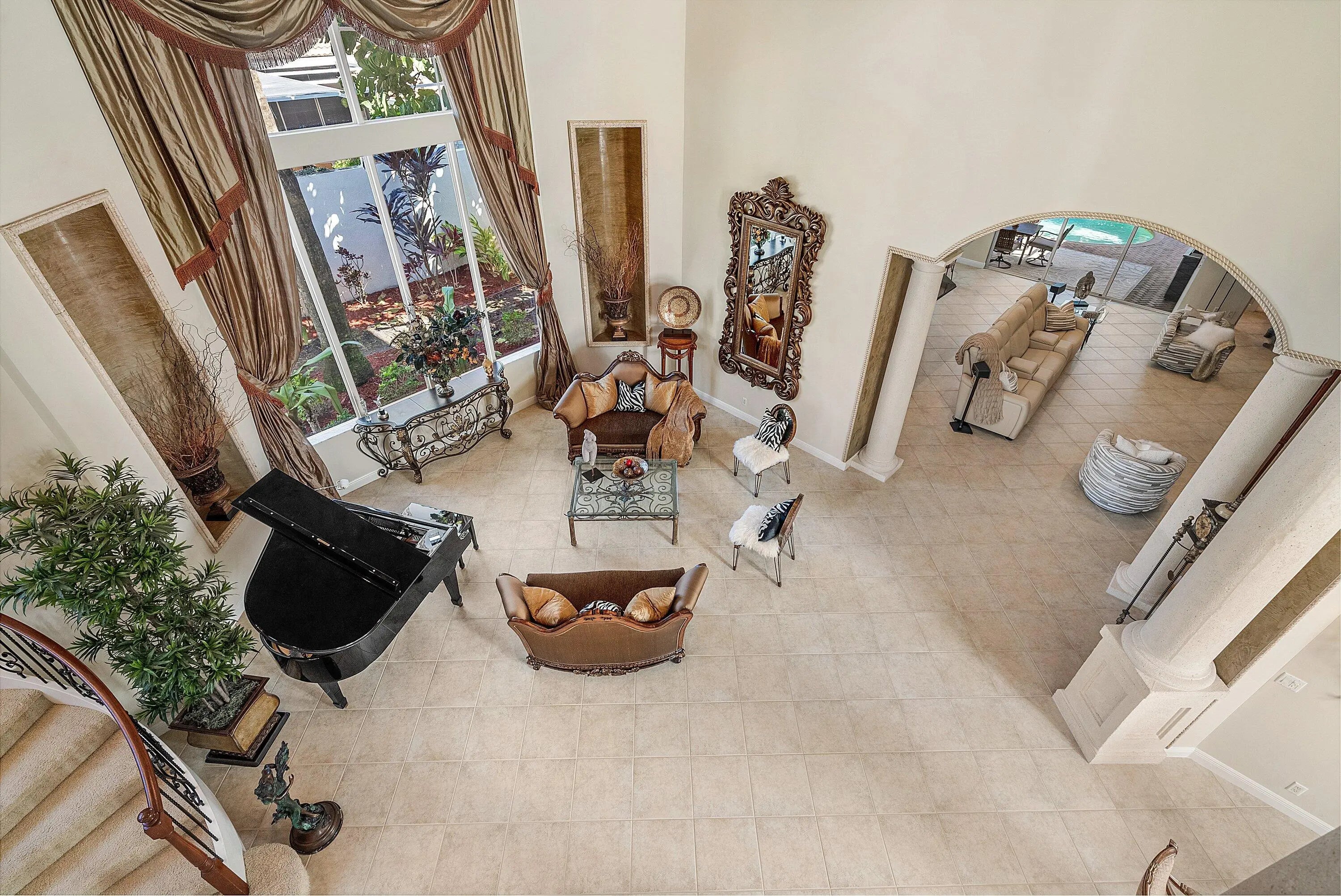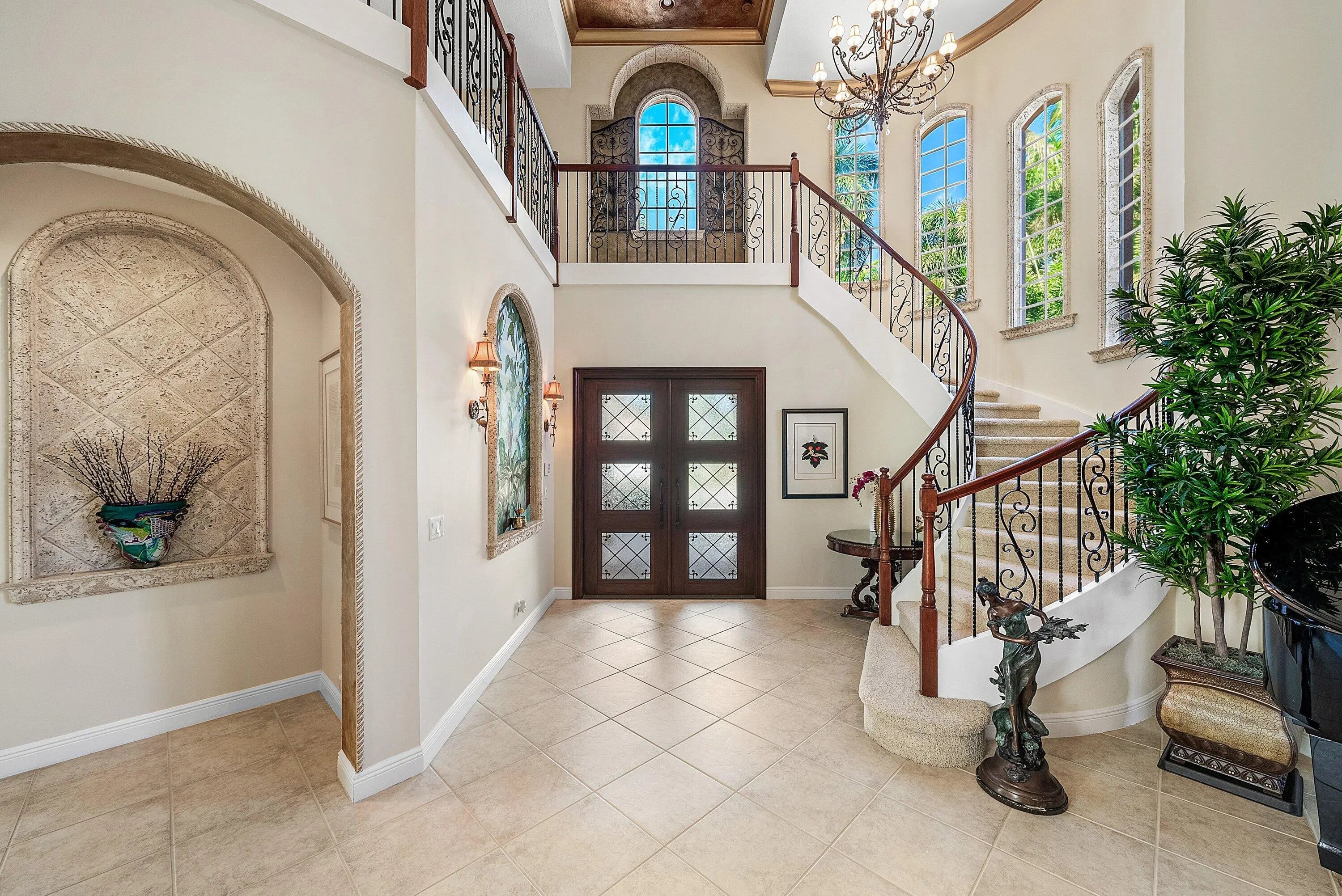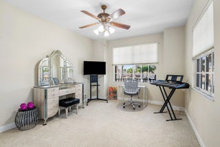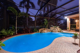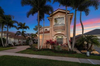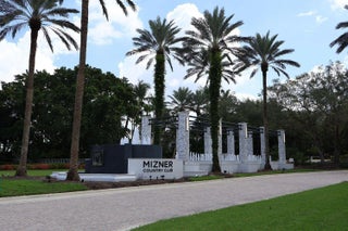 Elegant Mediterranean estate in the highly sought-after Mizner Country Club, This beautiful two-story home features 4 bedrooms, 5 full baths, and stunning golf course views. The spacious layout offers soaring ceilings, abundant natural light, and an upstairs loft overlooking the main living area. Designed for indoor-outdoor living, the private backyard showcases a resort-style freeform pool with a dramatic double rock waterfall and generous patio space perfect for entertaining. Home has two new AC units installed (2025) Located within a 24-hour guard-gated community, Mizner Country Club offers an exceptional lifestyle with a luxury clubhouse, resort-style pool, state-of-the-art fitness center, tennis and pickleball courts, multiple dining venues, and a full calendar of social activit