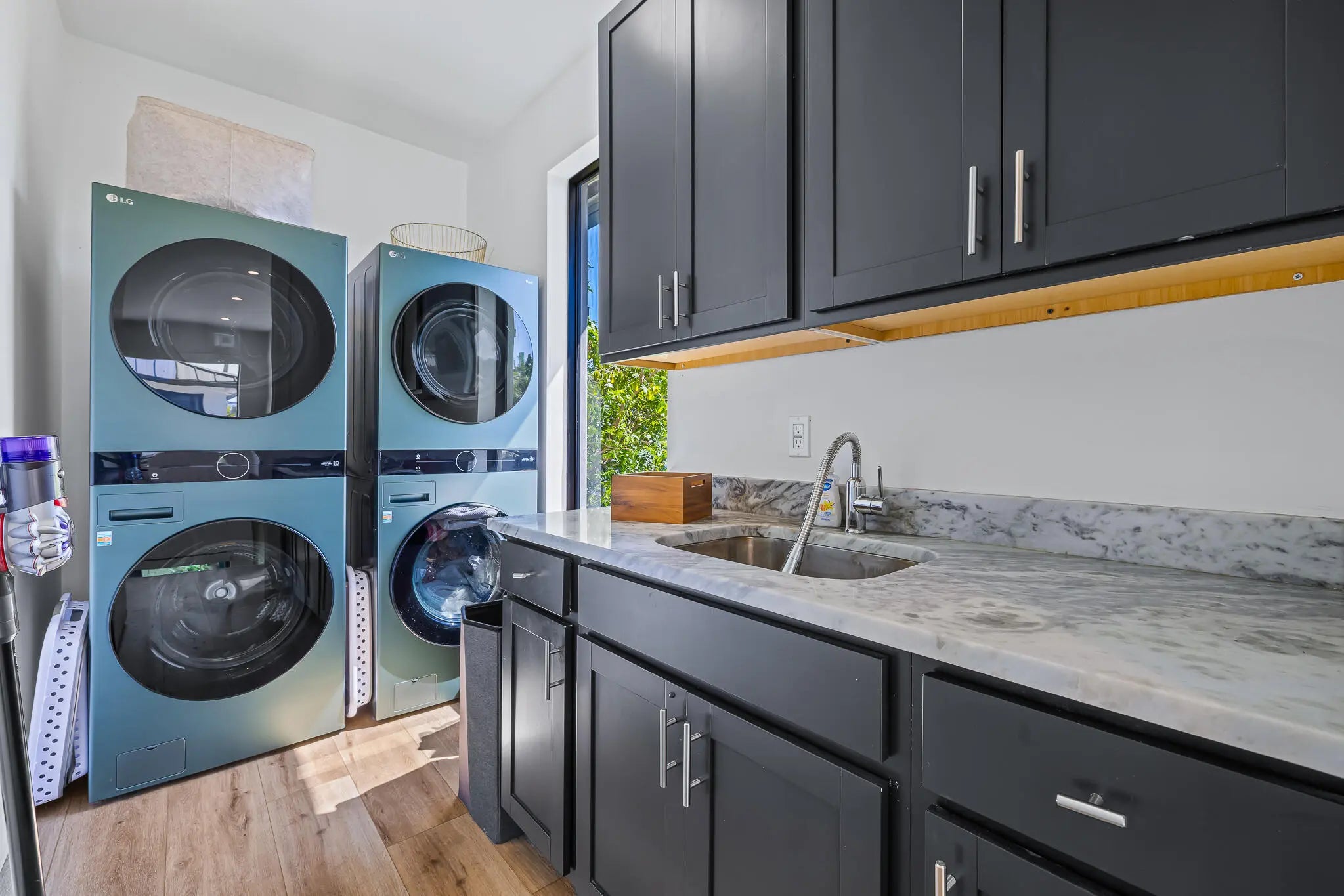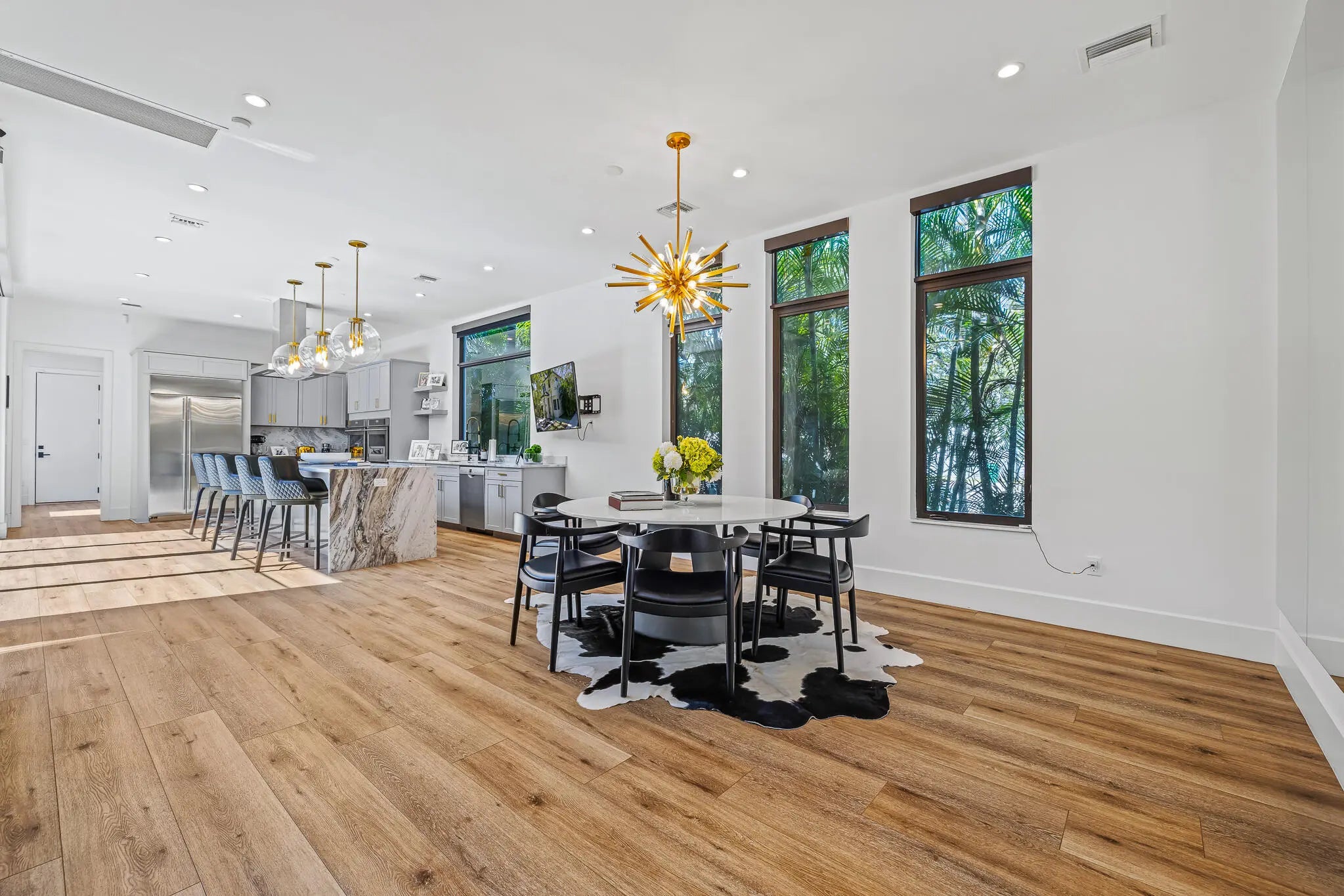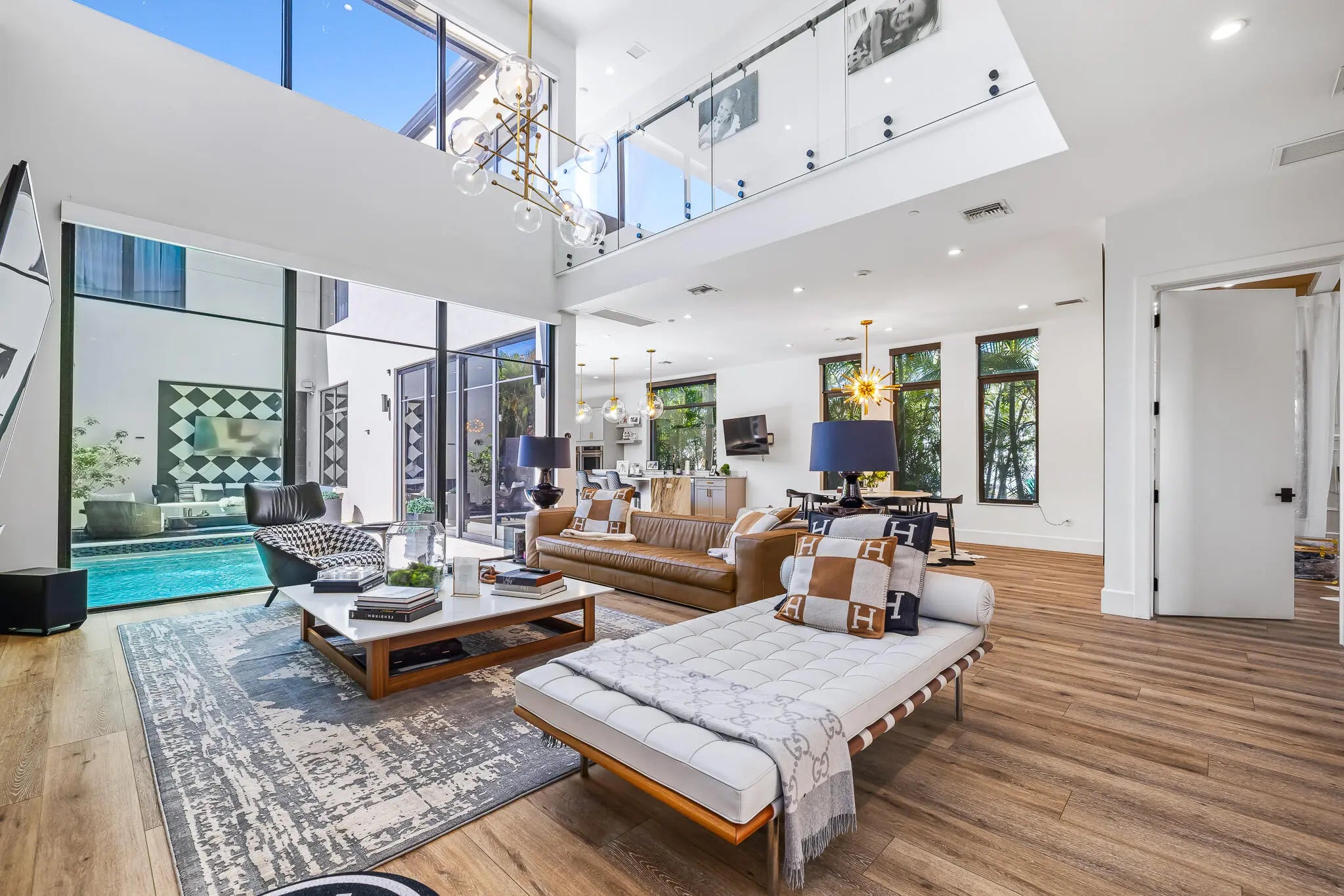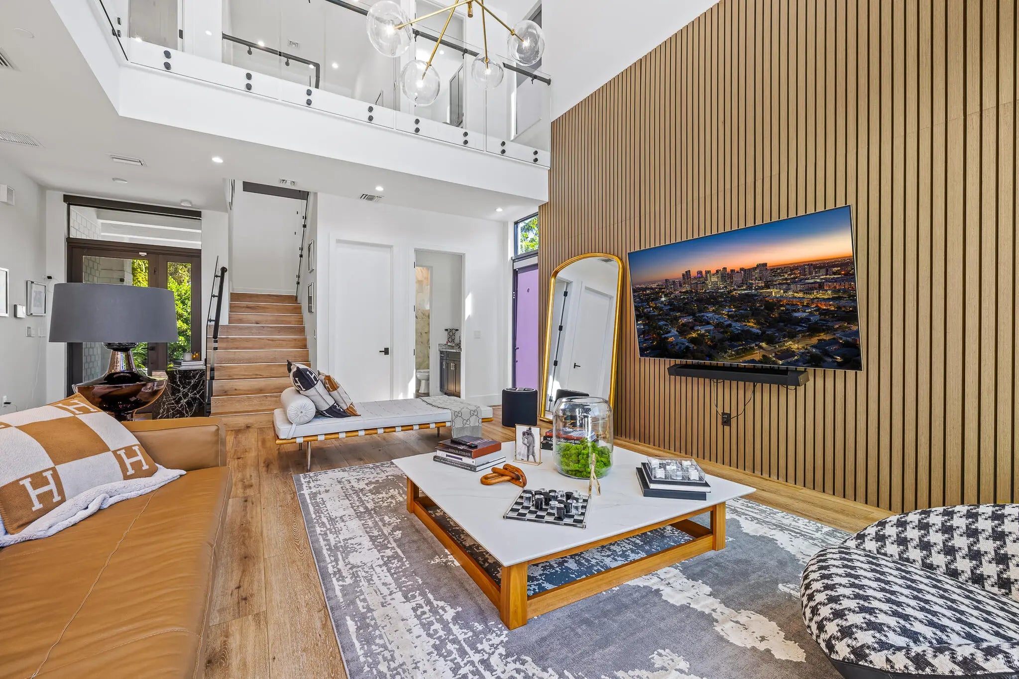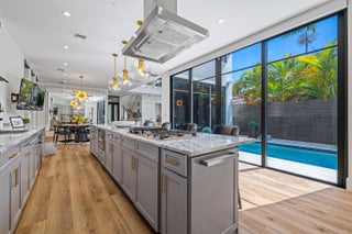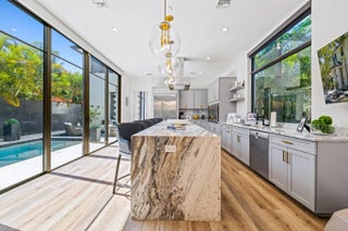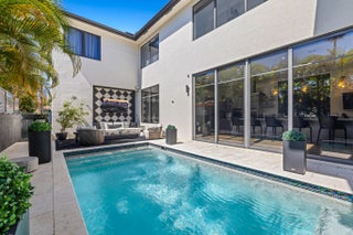 This 5-bedroom, 5-bath CBS two-story corner home offers 3,880 square feet of modern living space on a lot just under ¼ acre with no HOA. Built in 2019, this home combines quality construction with high-end finishes and thoughtful upgrades throughout. The main living area features dramatic 20-foot ceilings and large impact glass windows that bring in natural light while providing security and energy efficiency. Marble and tile floors complement the custom wooden wall panels and elegant custom mirrors, creating a refined yet modern design. Luxury wood flooring runs throughout the home, with large light porcelain tiles underneath for future design flexibility if desired. The open kitchen includes a gas range, double wall ovens, custom cabinetry, and a large island overlooking the family room and pool area. The home is equipped with filtered drinking water and a whole-house water softener system for added comfort. Upstairs, the spacious primary suite includes a sitting area, dual sinks, a separate shower, and a beautifully designed spa-style bathroom. The custom walk-in closet is built like a luxury boutique store, offering exceptional storage and organization. This home is designed for convenience and lifestyle, featuring two laundry rooms with three washers and three dryers, motorized blinds throughout, built-in Sonos sound system, owned alarm and camera system, EV charger, gas tankless water heater, and a durable metal roof. Step outside to enjoy the private saltwater pool and fully fenced backyard, perfect for relaxing or entertaining. The property also offers plenty of parking in addition to the two-car garage. Located within walking distance to Holiday Park, Las Olas, restaurants, shops, and close to St. Anthony Catholic School and St. Thomas Aquinas High School. Just minutes to Downtown, Brightline, and only 10 minutes to Fort Lauderdale-Hollywood International Airport. This home offers modern design, smart upgrades, privacy, and an excellent central location all in one.