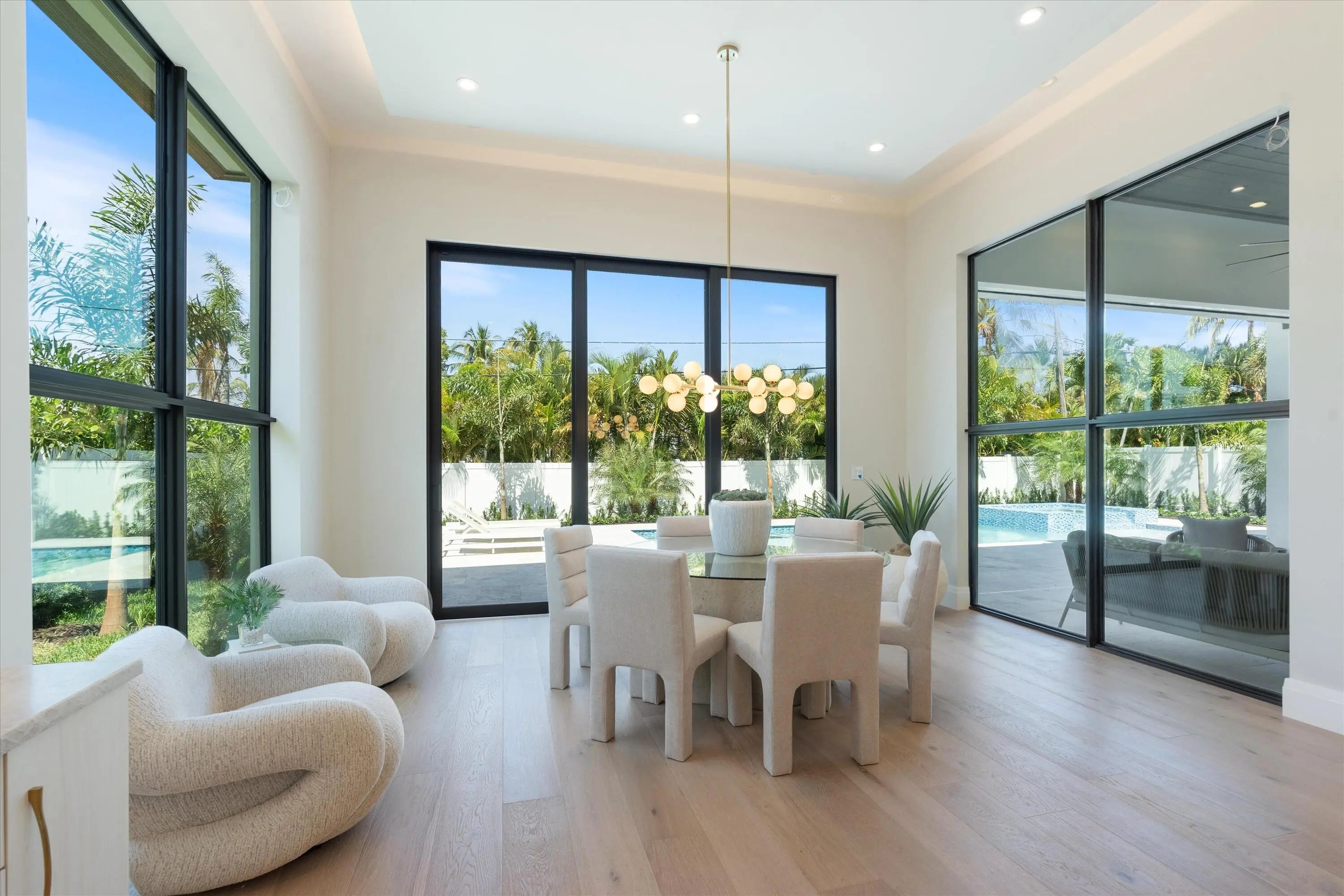 Lake Life Lake Ida Experience the pinnacle of coastal luxury living in this breathtaking modern home, a private retreat where contemporary design meets the serene beauty of the ocean. This four-bedroom residence, complete with a dedicated home office and stunning outdoor amenities, offers the perfect balance of elegance, comfort, and functionality for those who appreciate the finer things in life. From the moment you arrive, the home's striking architectural lines and sophisticated façade make an unforgettable impression. Clean angles, expansive glass walls, and a seamless blend of natural stone and wood finishes create a modern yet inviting exterior. A carefully landscaped entryway lined with native coastal greenery and subtle lighting sets the stage for an impressive atmosphere. Bike or golf cart to the ocean or intracoastal, or Atlantic Ave. Stroll a baby or walk a pet to the locals parks with boating, playgrounds. Shopping and wonderful restaurants and coffee shops moments away.