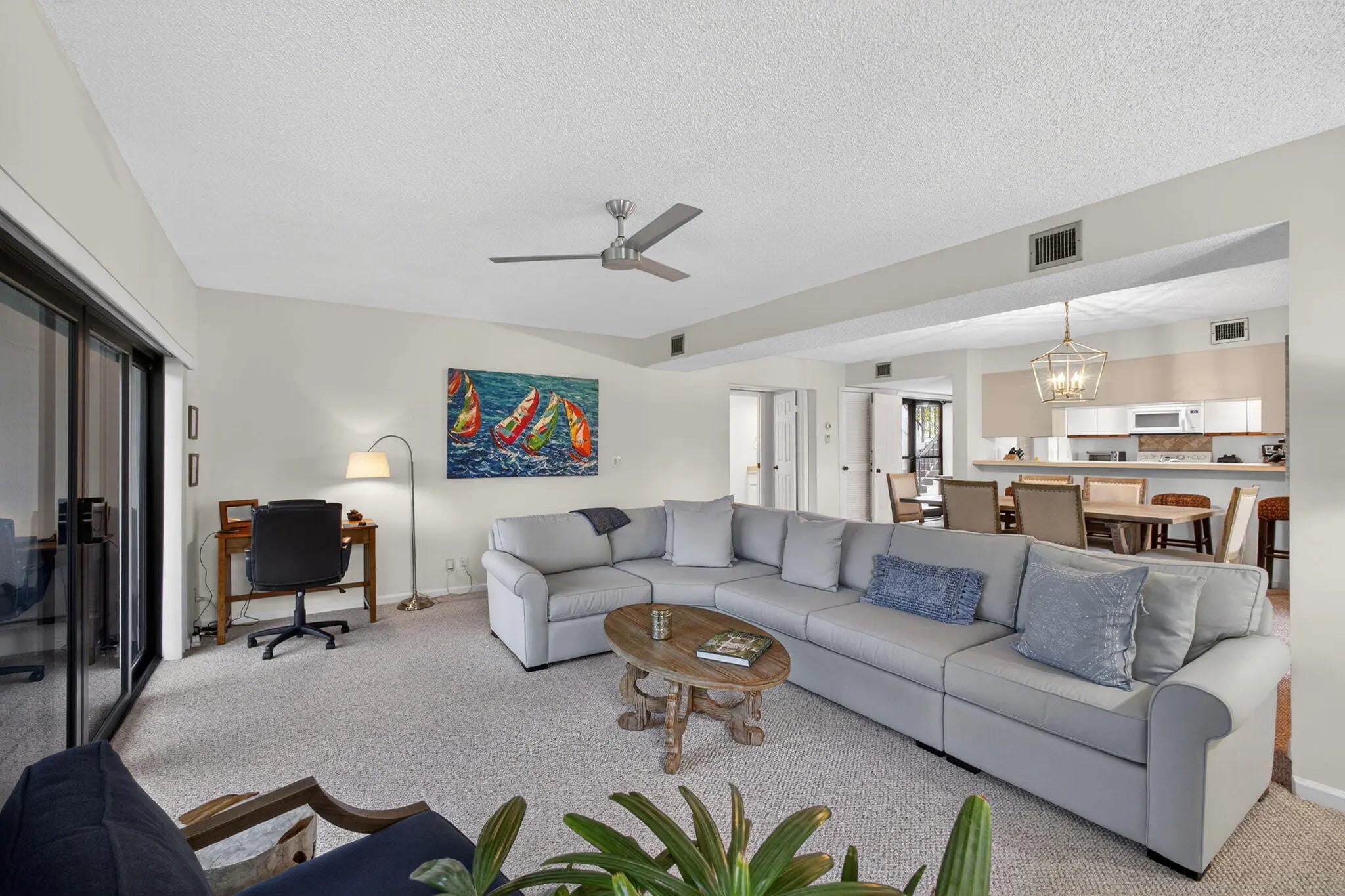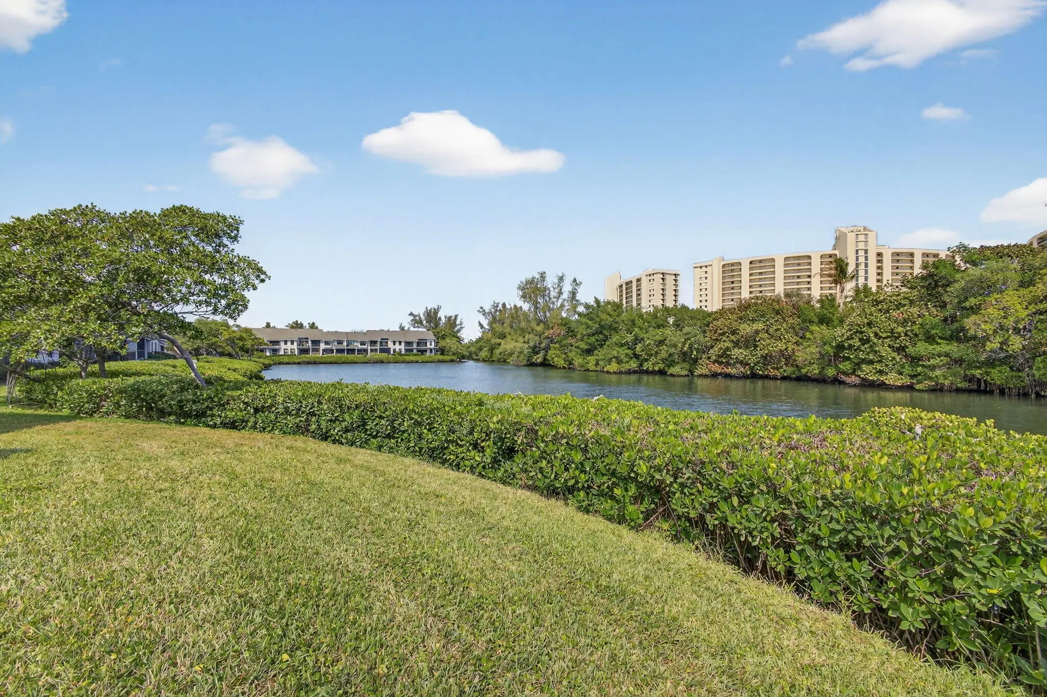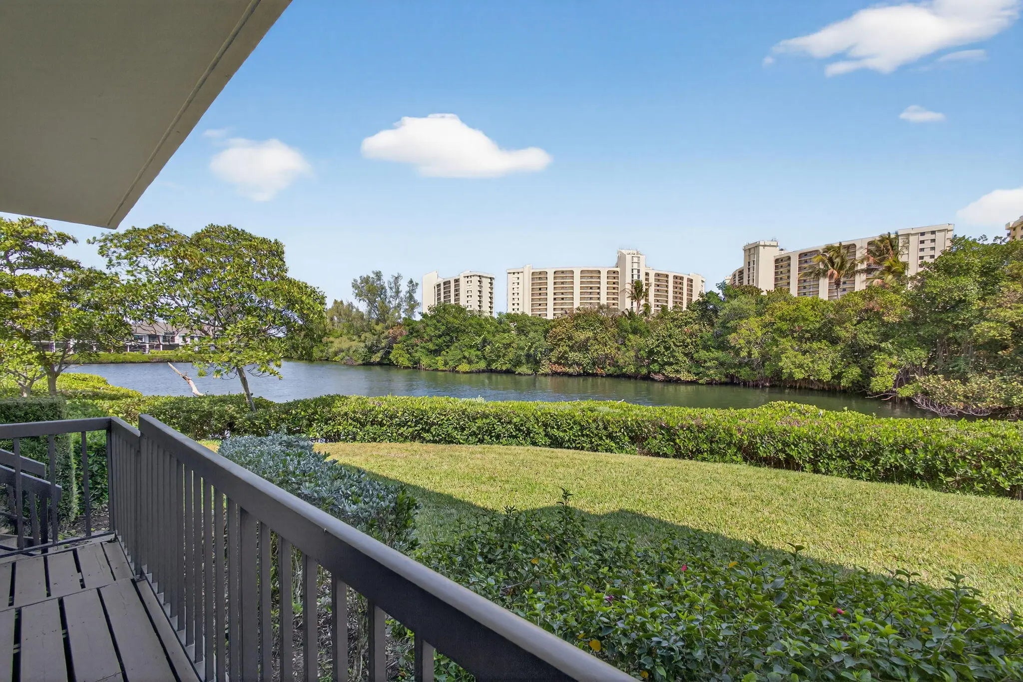 Walk to the turquoise waters of Jupiter Beach from this beautifully maintained 1st floor end unit residence in the golf & beachside community of Jupiter Dunes. Surrounded by natural beauty, this home offers peaceful water views of Jupiter's natural estuary. Relax on the shaded screened porch or sunny 50' wrap around balcony & enjoy the sea breezes & the sounds of the ocean. Launch your kayak or paddleboard & cruise to the Jupiter Inlet. Features include: impact glass, kitchen w/breakfast nook, dining room; formal living room; primary suite w/great views, ensuite & walk-in closet; guest suite w/updated bath; screened porch; waterfront balcony; carport & large storage room. Located in the Jupiter Inlet district, walk to waterfront restaurants & shops. Pet friendly; 2 pools & clubhouse.