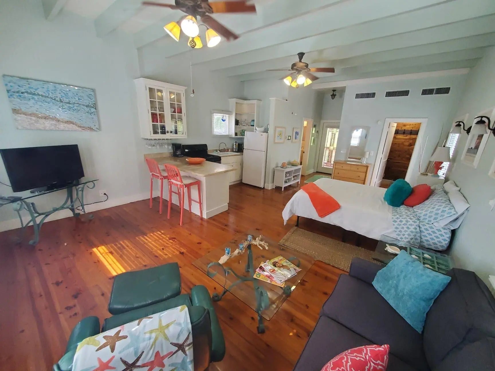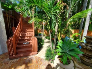 LIVE LIKE YOU'RE ON VACATION YEAR-ROUND at one of downtown Delray's most coveted escapes in the heart of Delray Beach. Just two blocks from vibrant Atlantic Avenue, this lush, private oasis feels worlds away. Resort-style grounds feature a sparkling pool, tiki bar, fire-pit lounge, fountains, tropical gardens, and BBQ area. Inside, enjoy 600 sf of airy open living with soaring ceilings, rich wood floors, a chef's kitchen with stone counters, walk-in cedar closet, and spa-inspired marble bath. Second-floor residence with French doors, private porch & balcony. Furnished annual or seasonal. No pets.